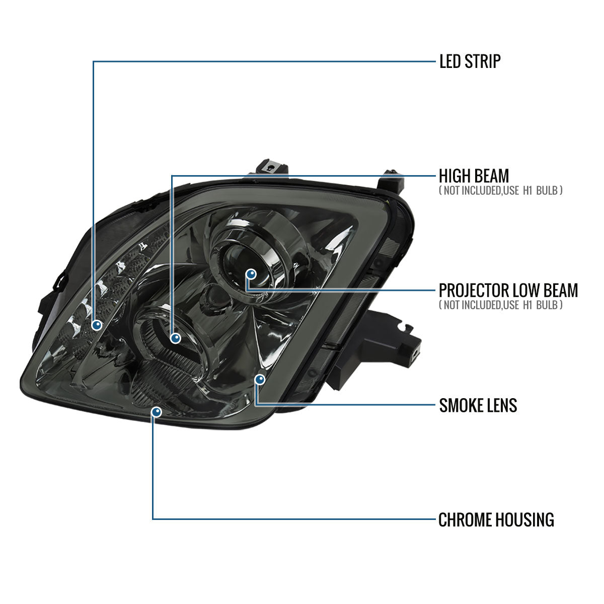 Ronnin - Fits 1997-2001 Honda Prelude Upgraded Replacement Projector Headlights LED Running Lights Assembly Pair | Smoke