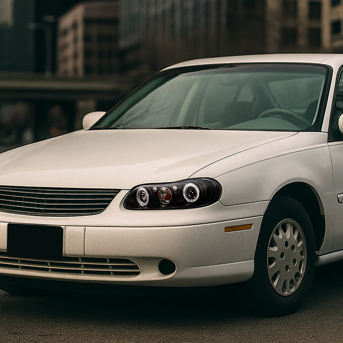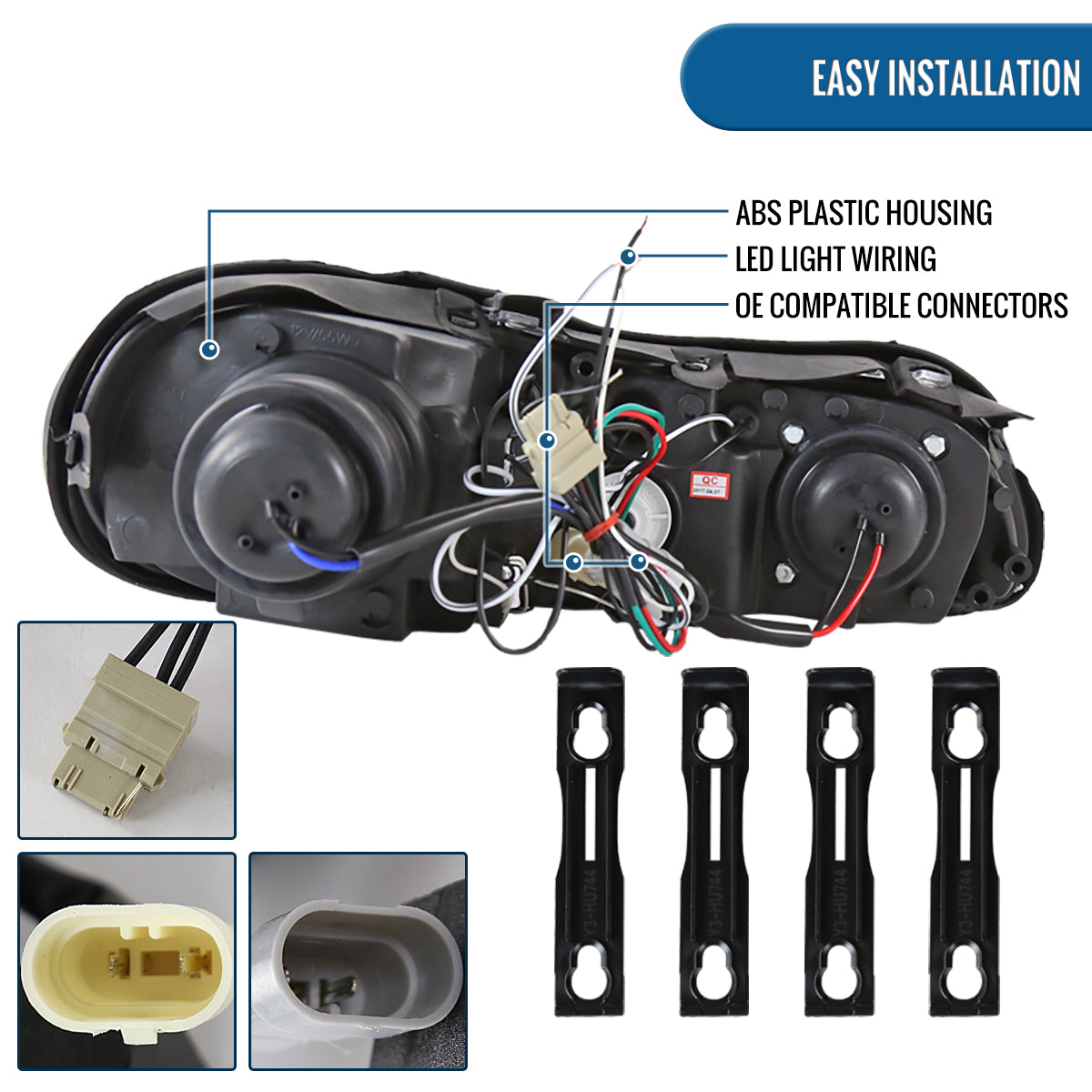 Ronnin - Fits 1997-2005 Oldsmobile Cutlass Chevy Classic Malibu LED Dual Rims Running Lights Projector Headlights Assembly Pair | Black