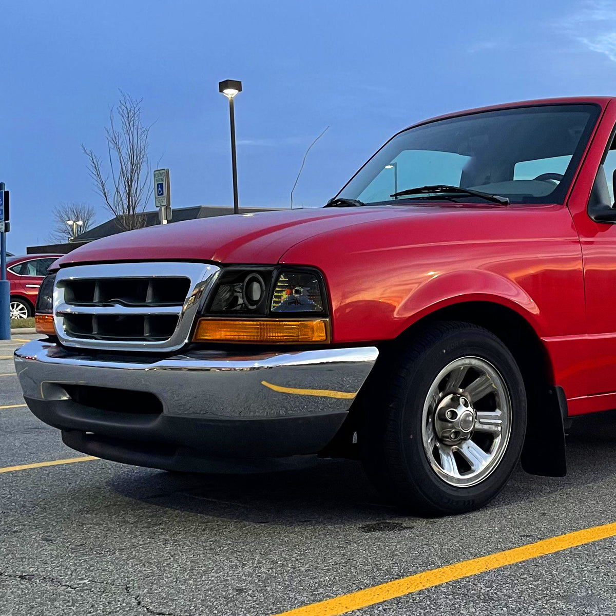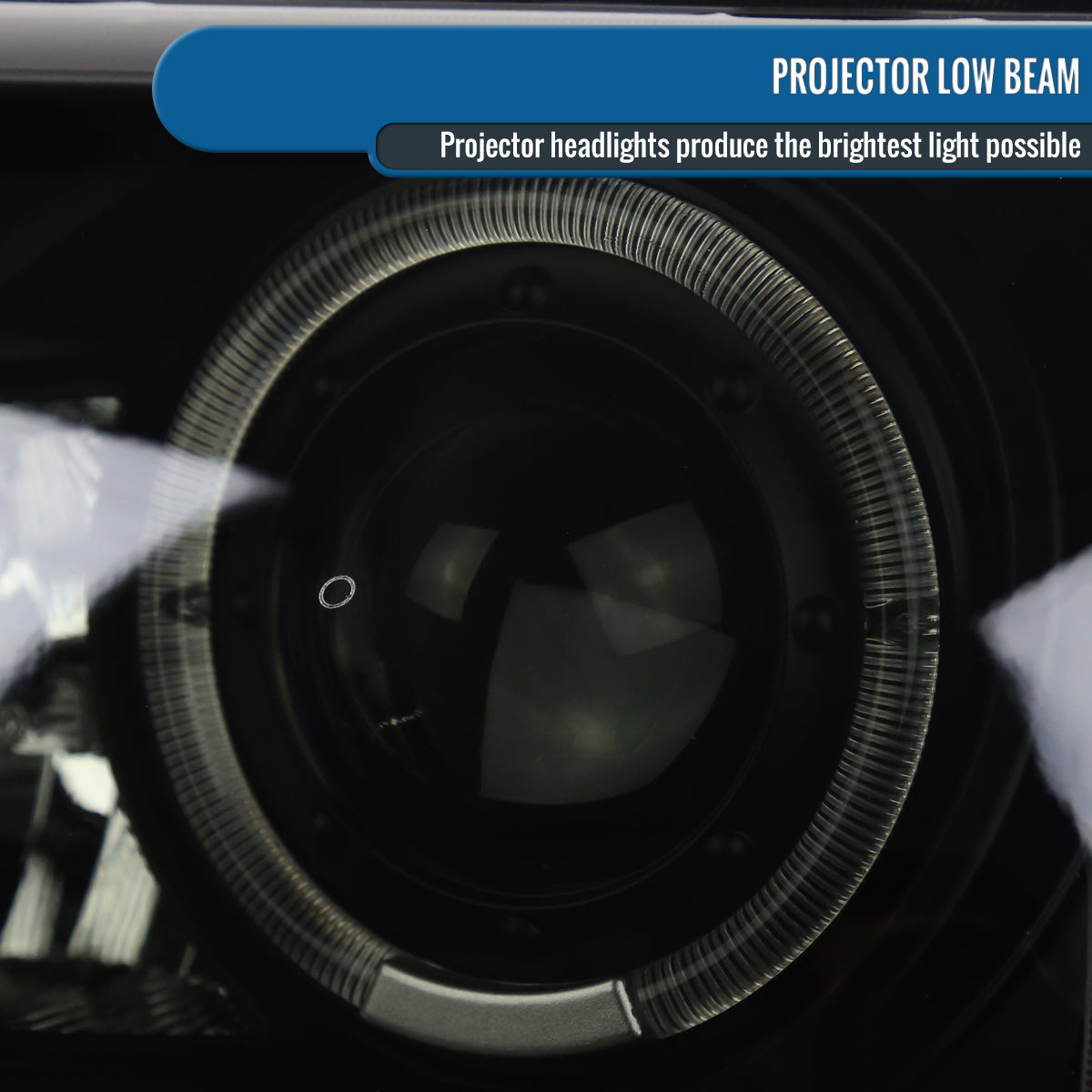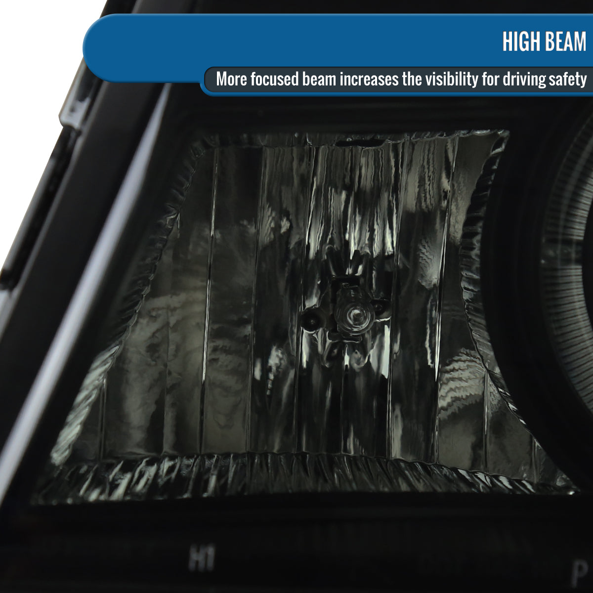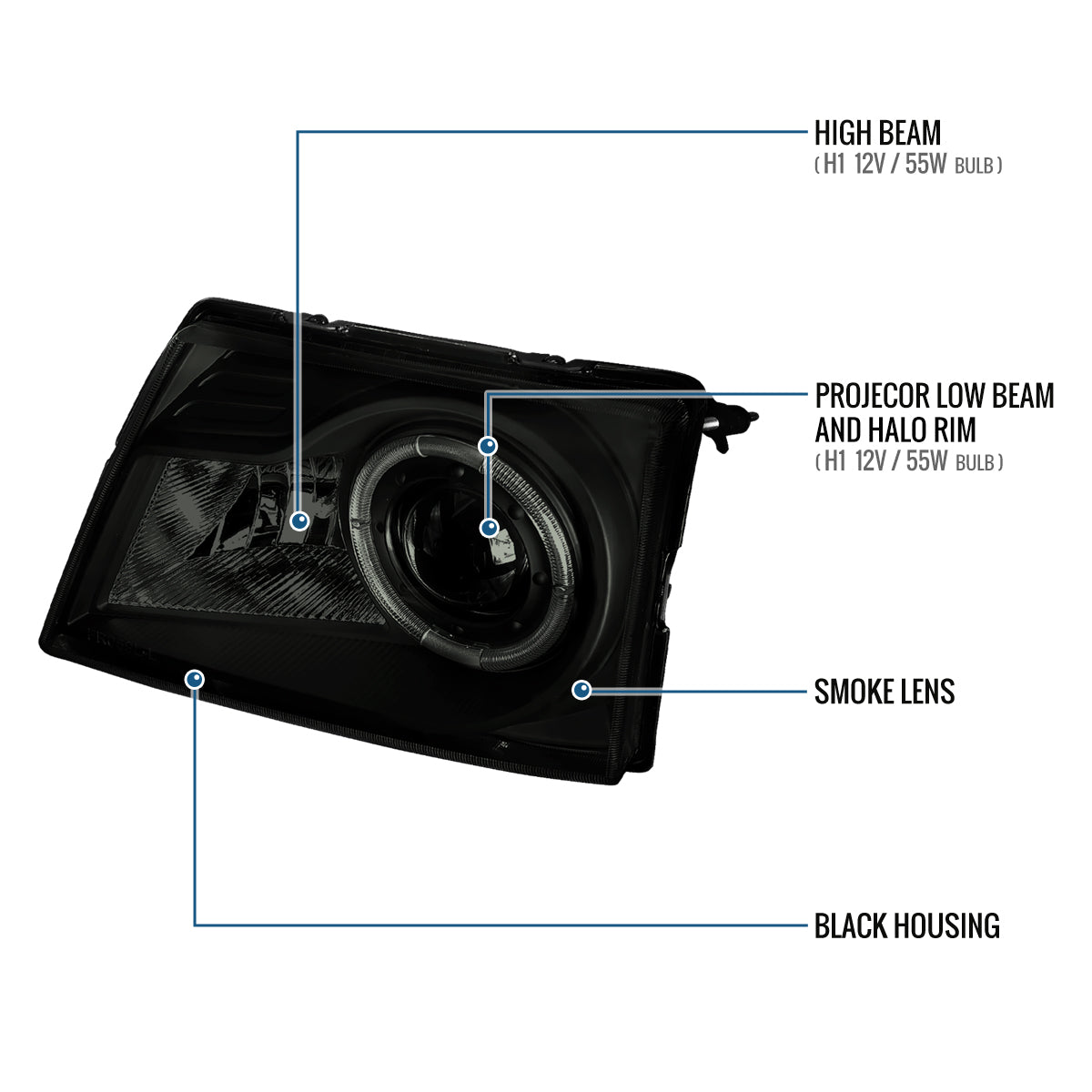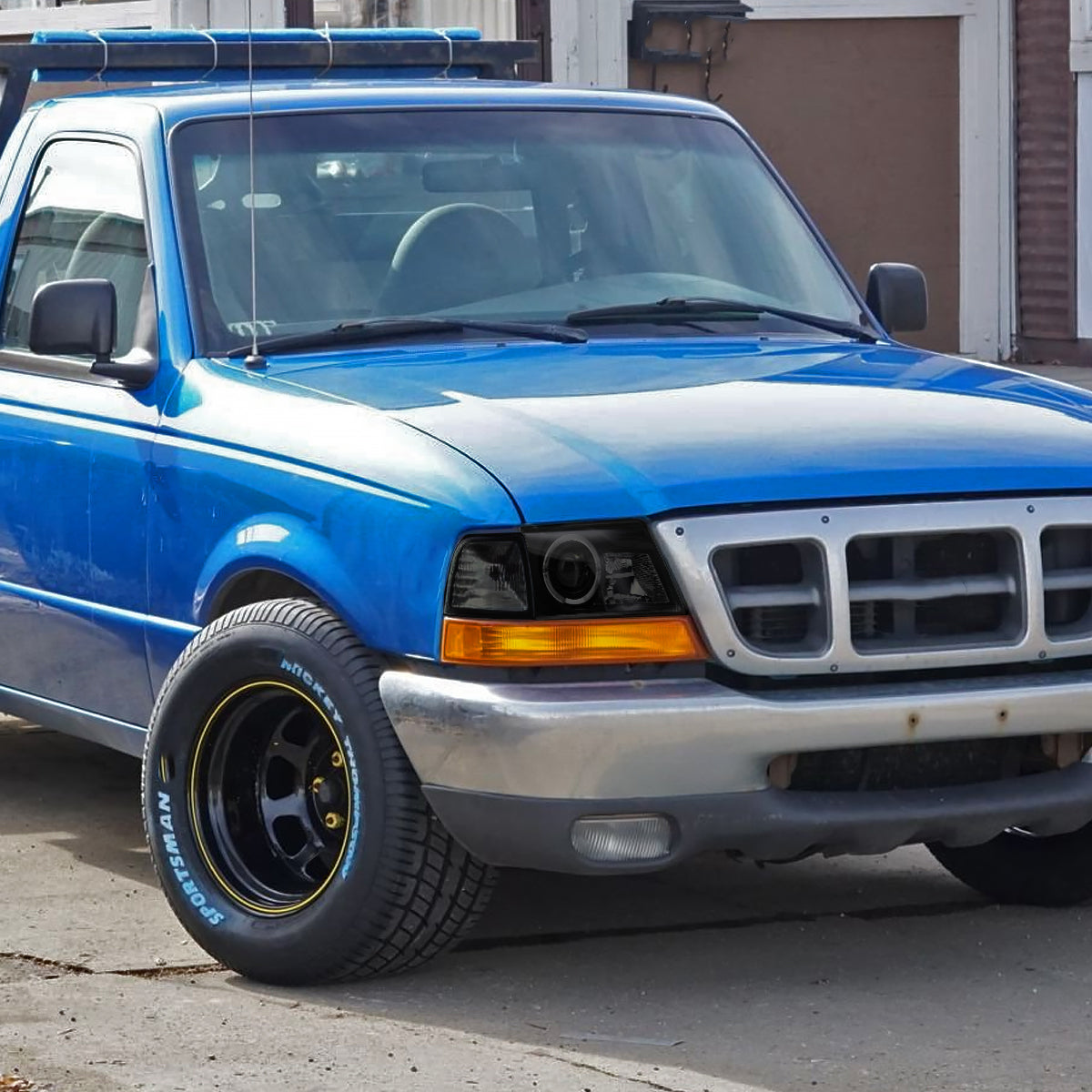 Ronnin - Fits 1998-2000 Ford Ranger LED Halo Rims Projector Headlights Head Lamps Replacement Pair | Black Smoke