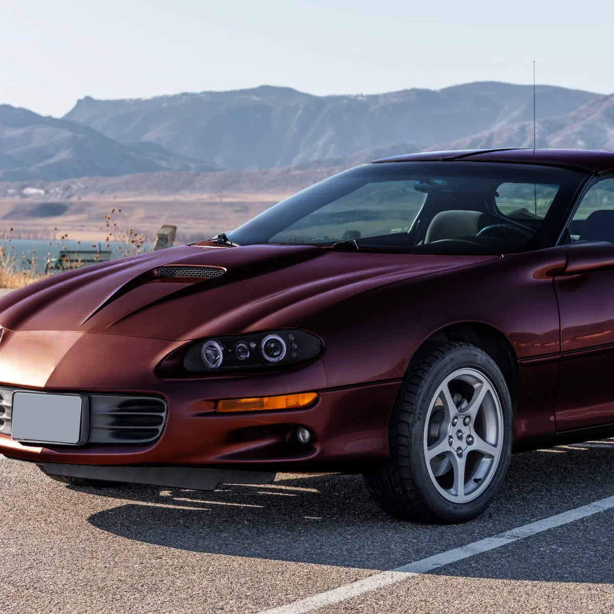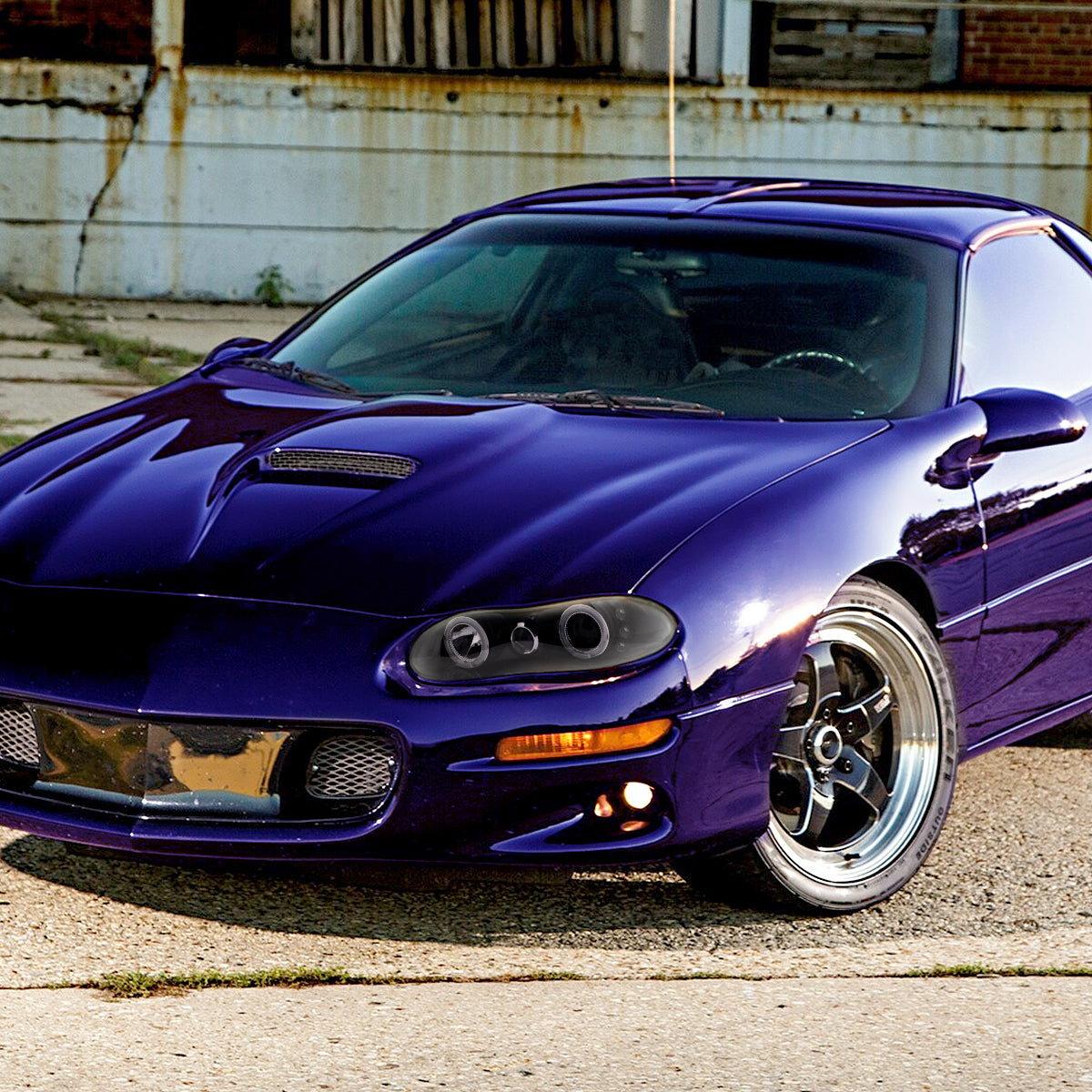 Ronnin - Fits 1998-2002 Chevy Camaro Upgrade Replacement LED Dual Halo Rims Projector Headlights Assembly Pair | Black Smoke
