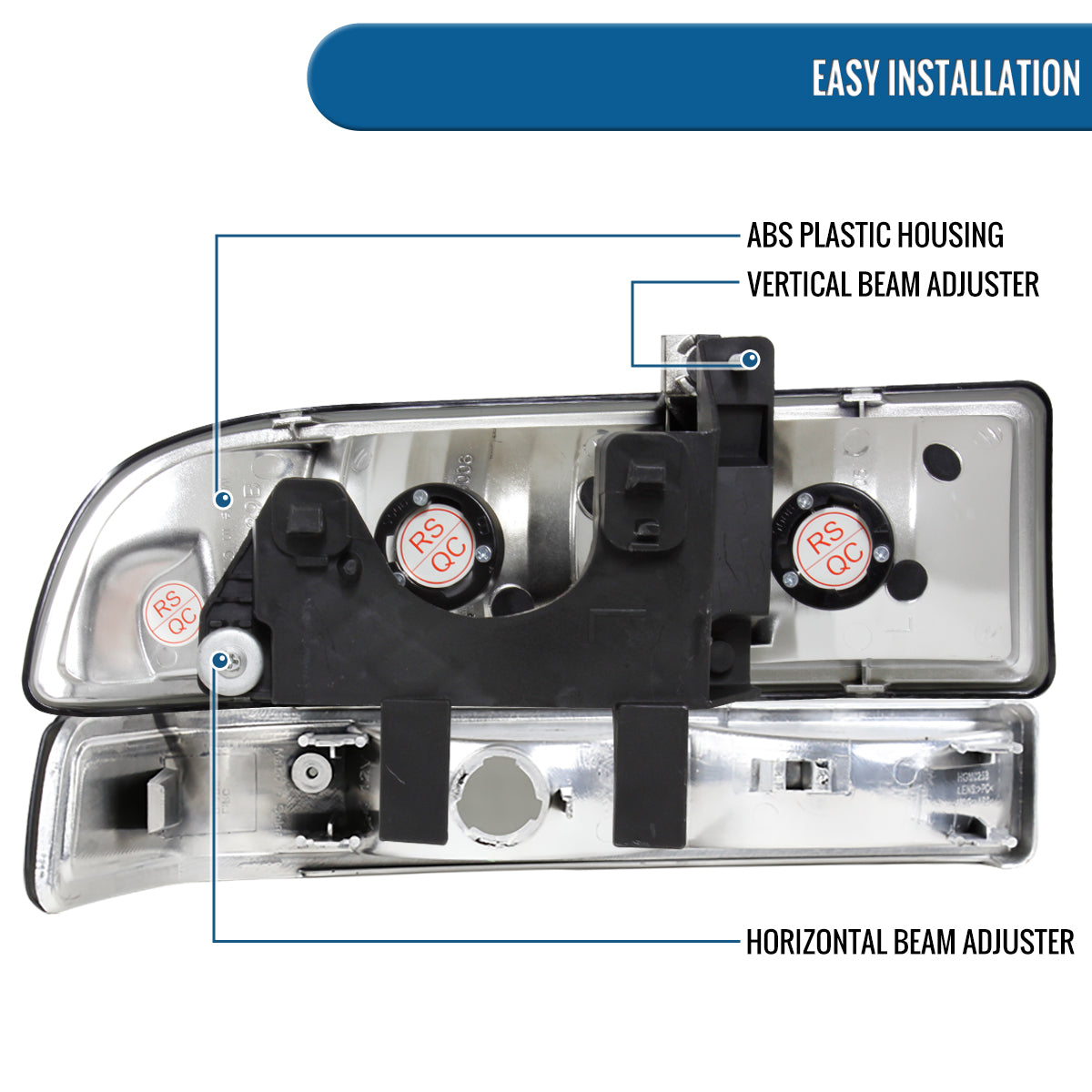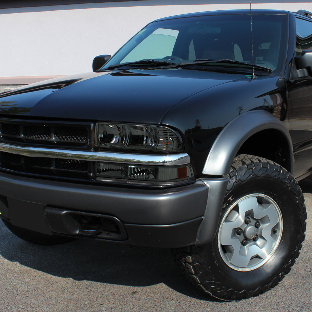 Ronnin - Fits 1998-2004 Chevy Blazer S10 Pickup Factory Replacement Headlights + Bumper Lamps Assembly Pair | Smoke