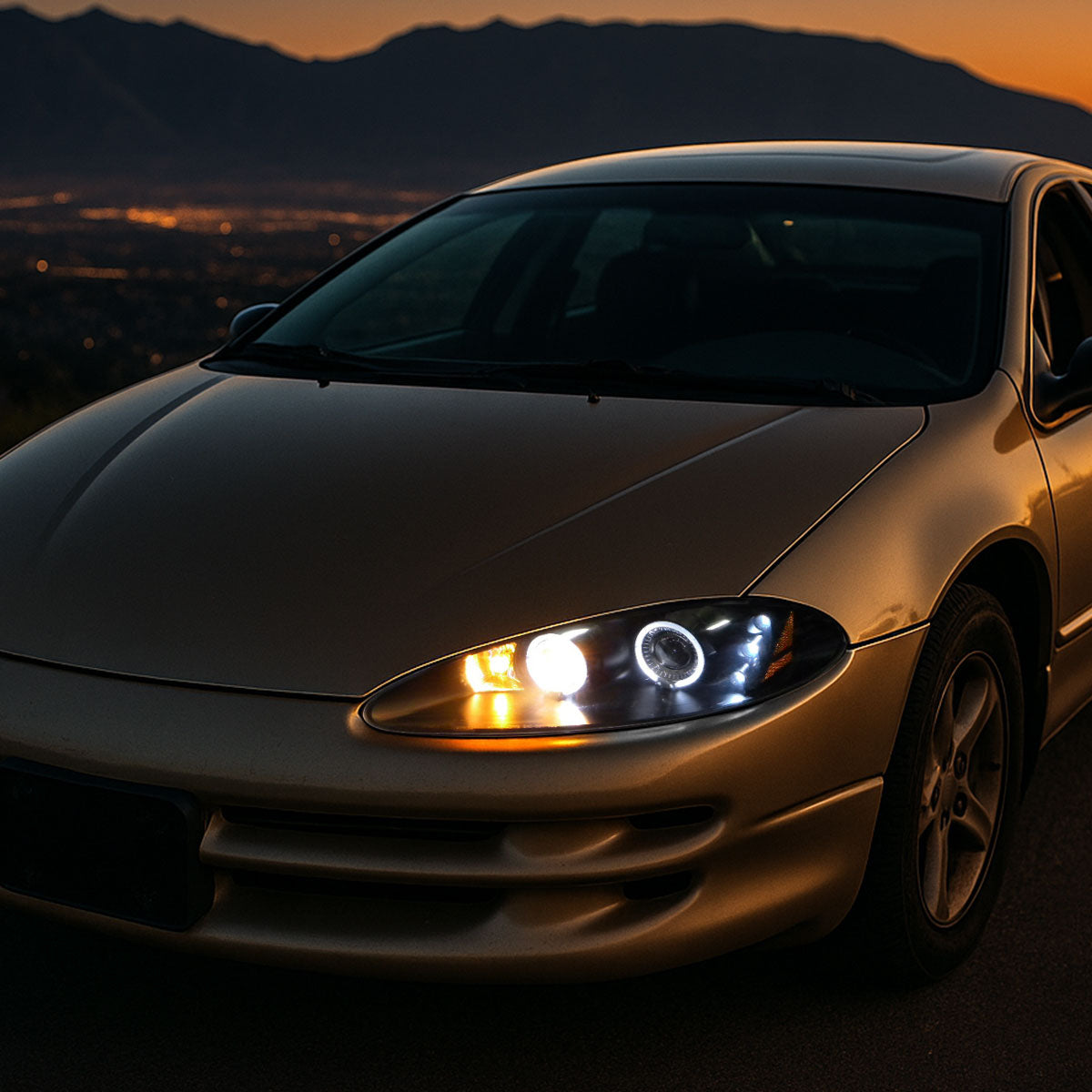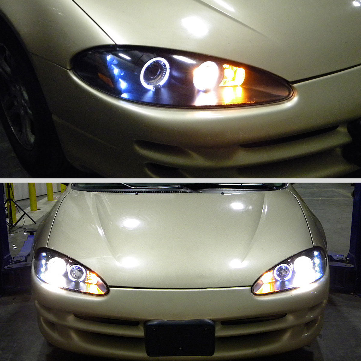 Ronnin - Fits 1998-2004 Dodge Intrepid Upgrade Replacement LED Dual Rims Projector Headlights Assembly Pair | Black