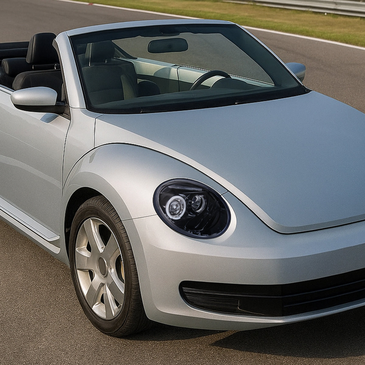 Ronnin - Fits 1998-2005 Volkswagen Beetle Upgrade Replacement Halogen Projector Headlights Assembly Pair | Black Smoke