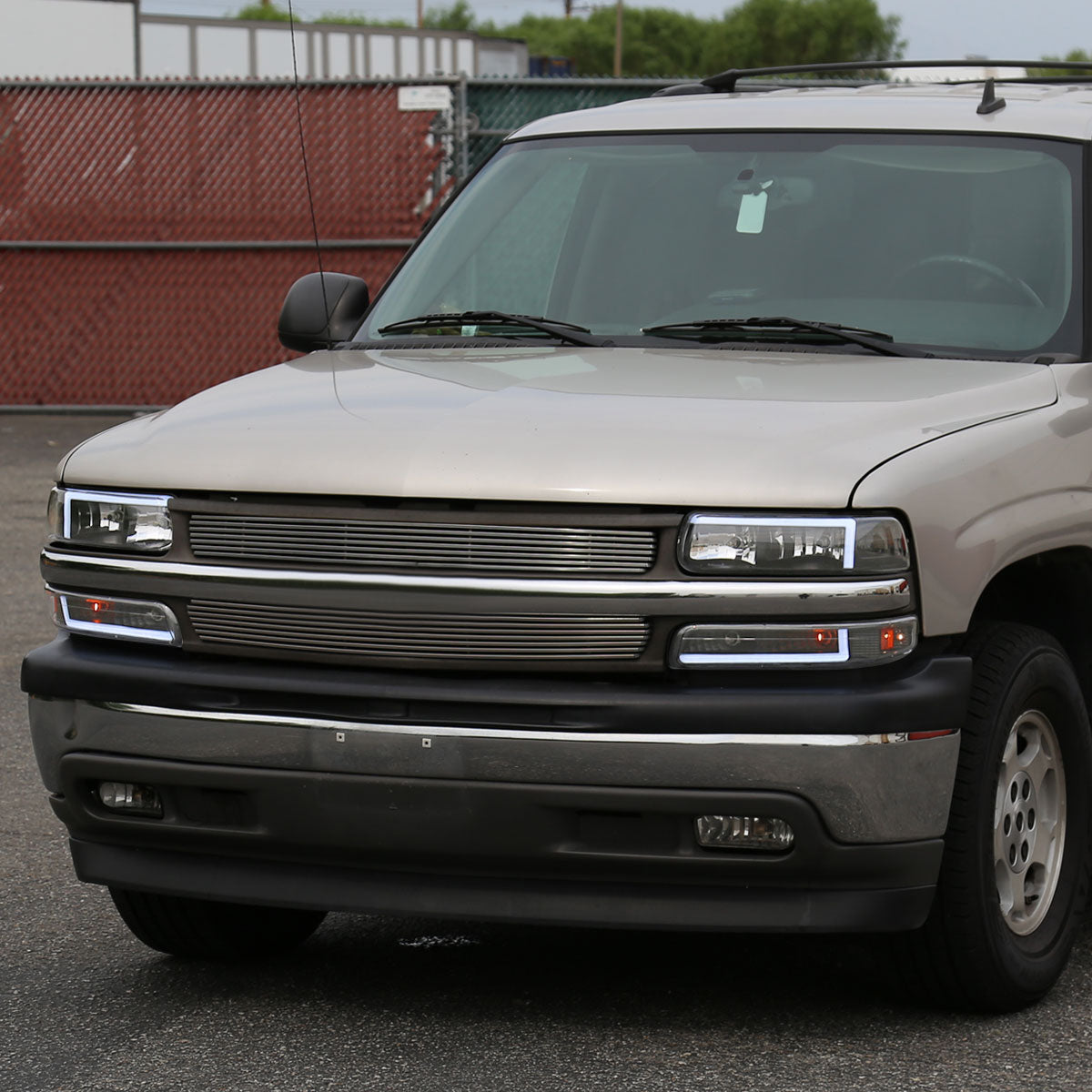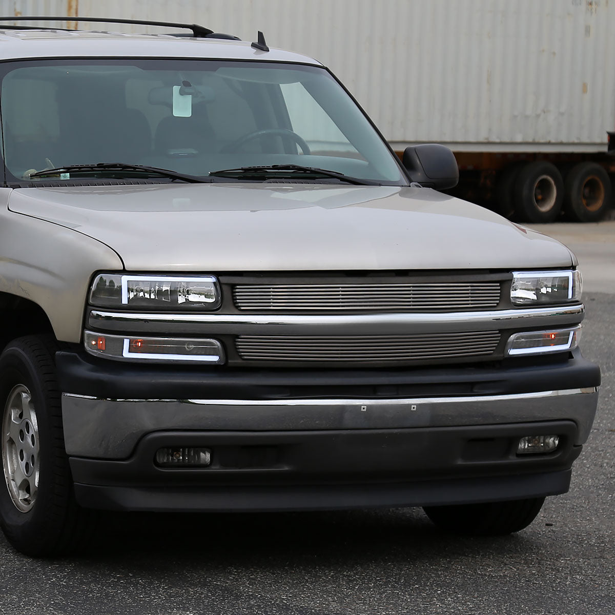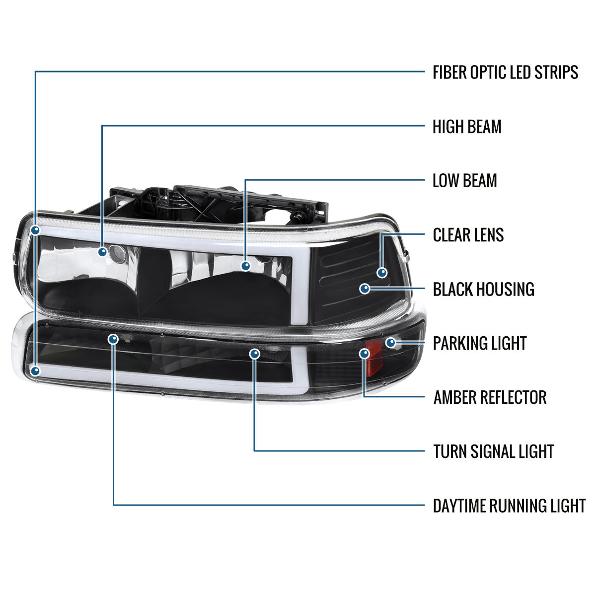 Ronnin - Fits 1999-2002 Silverado 2000-2006 Suburban Tahoe LED Tube Headlights + Bumper Parking Signal Lamps Assembly Pair | Black