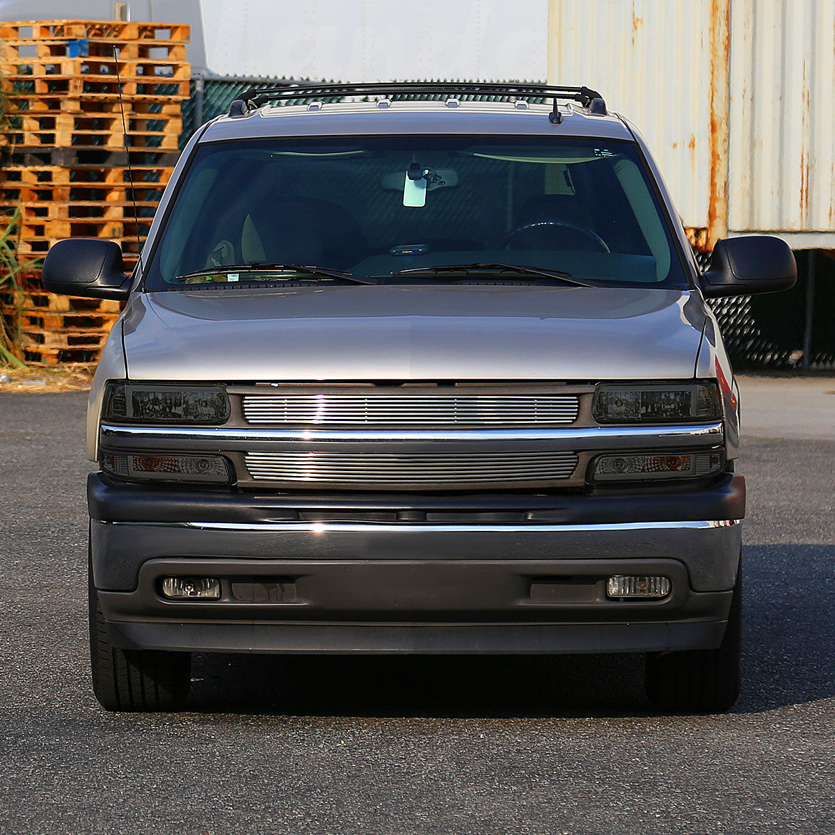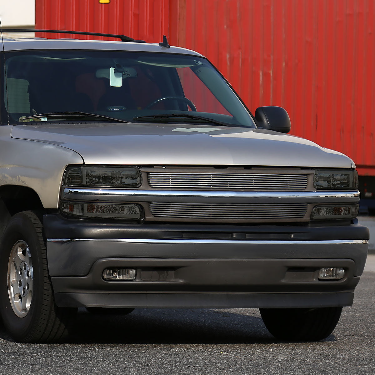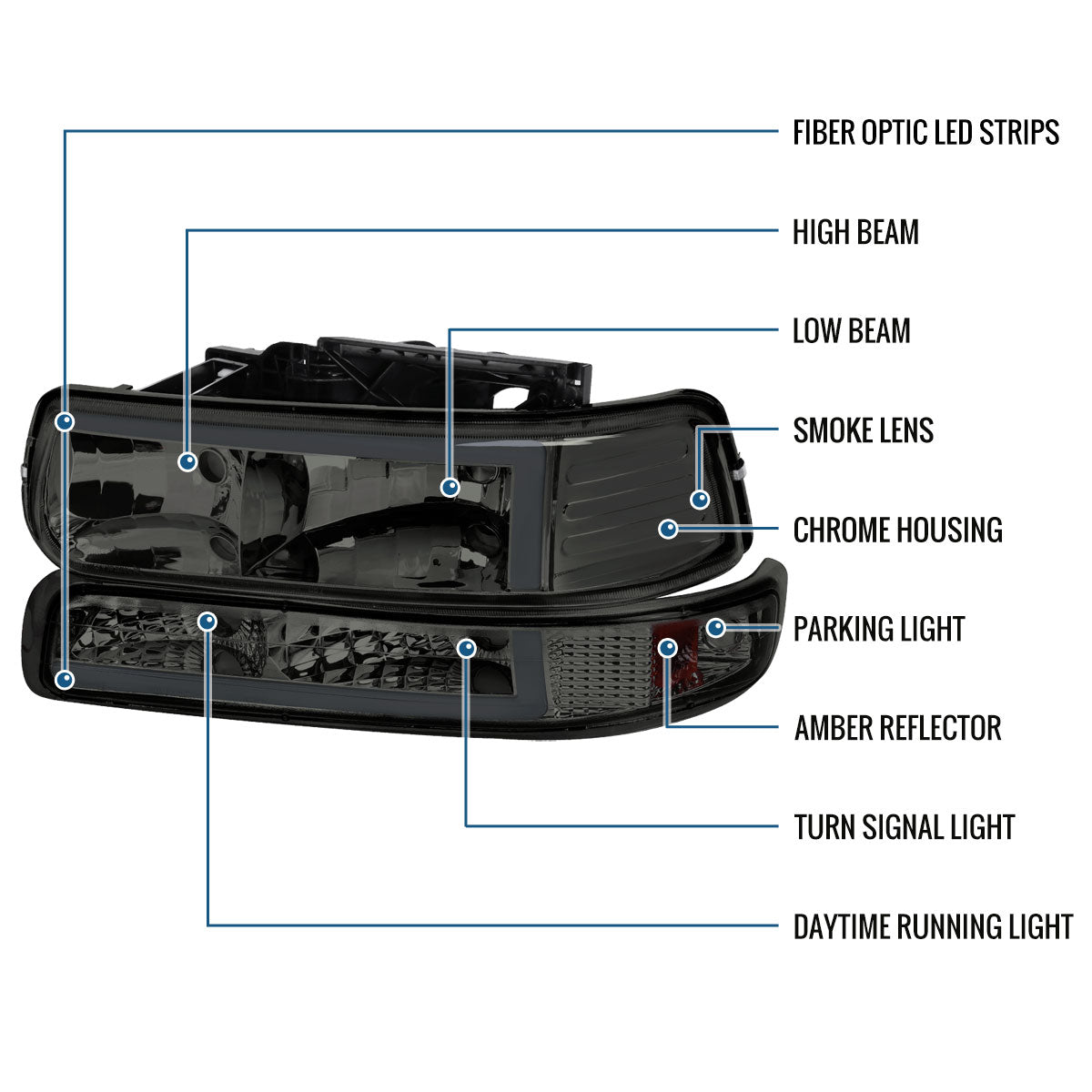 Ronnin - Fits 1999-2002 Silverado 2000-2006 Suburban Tahoe LED Tube Headlights + Bumper Parking Signal Lamps Assembly Pair | Smoke
