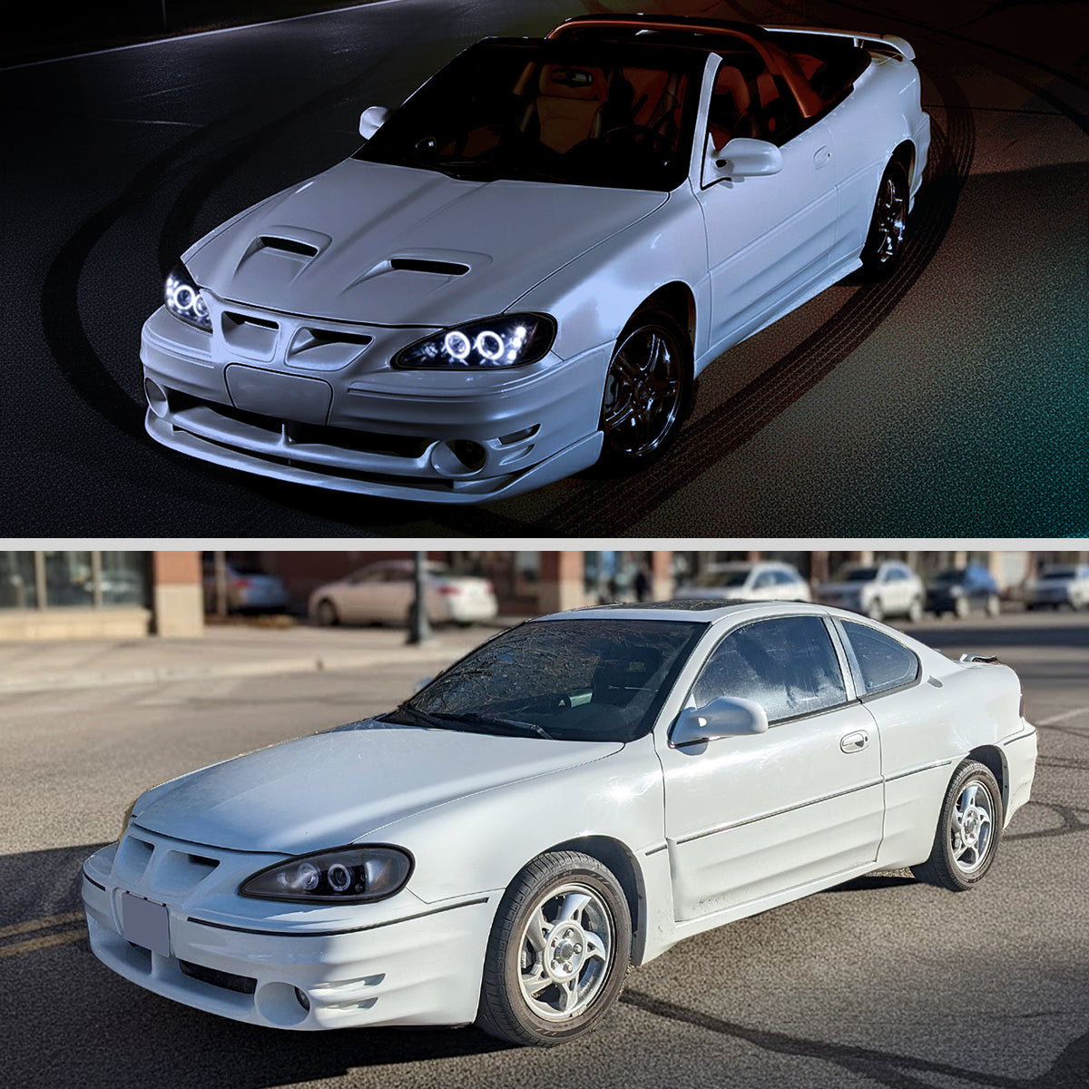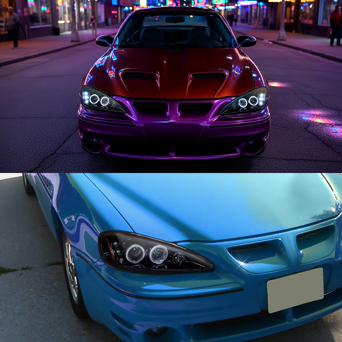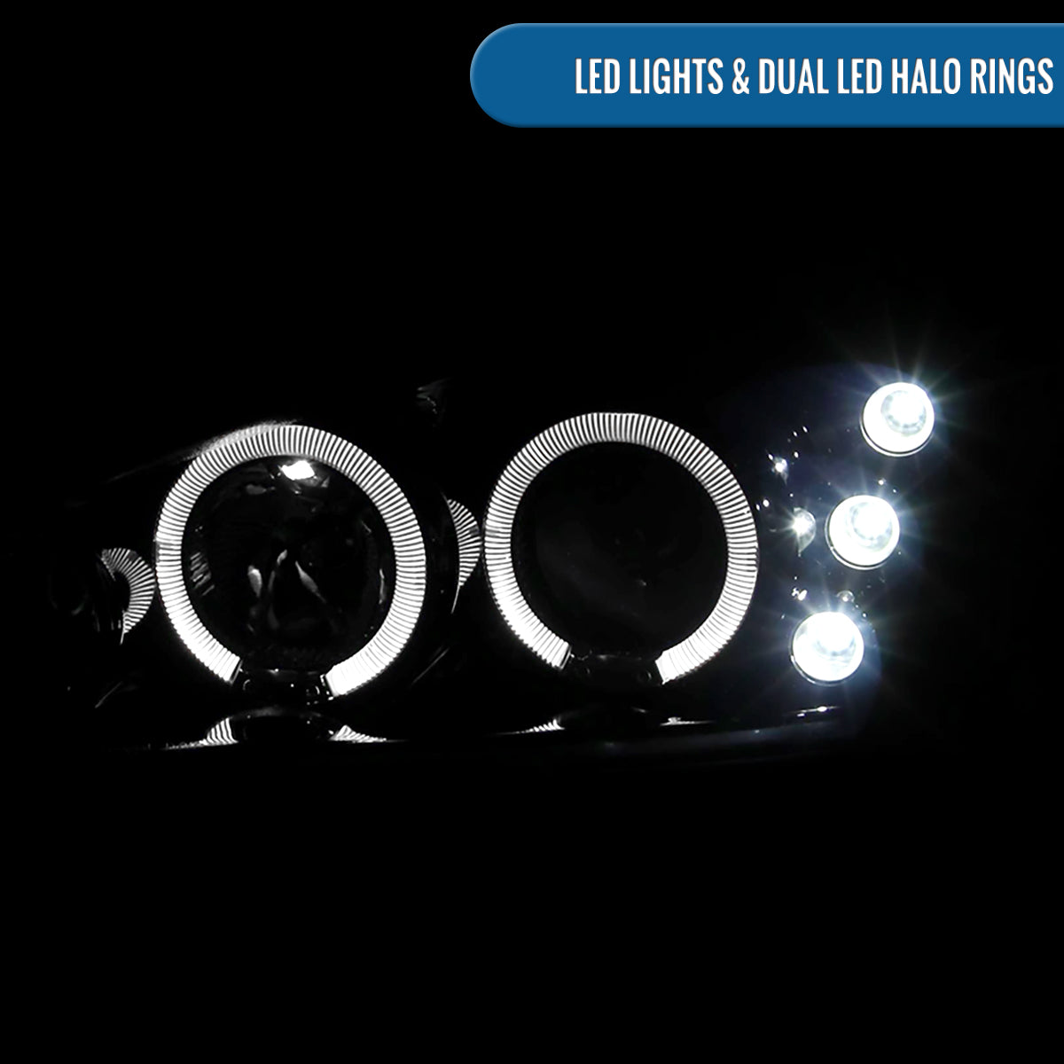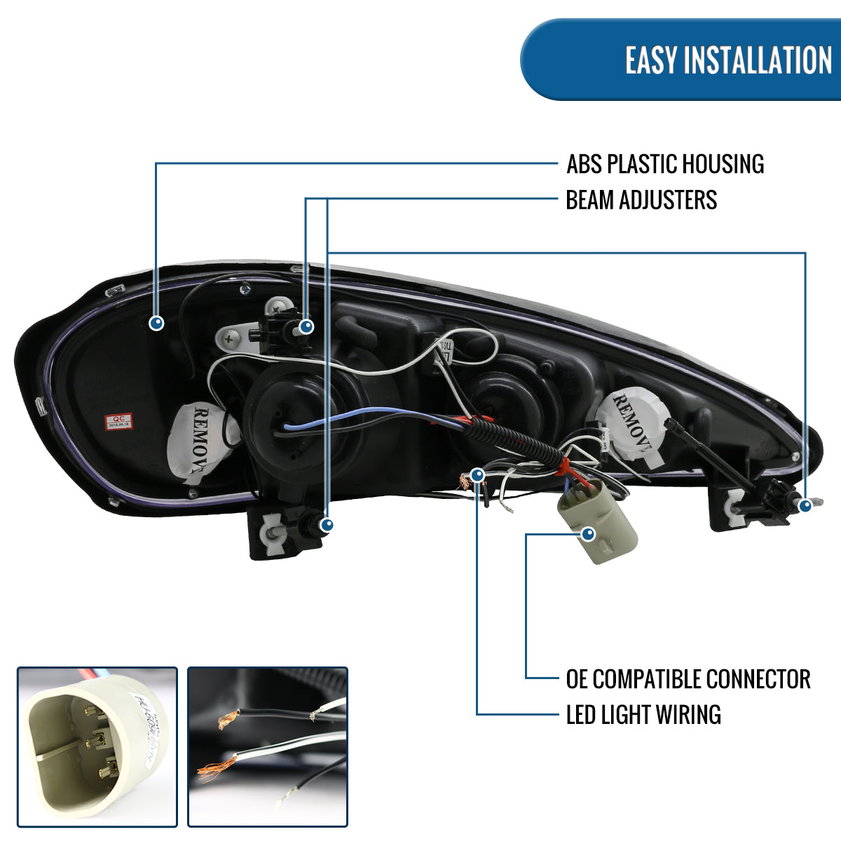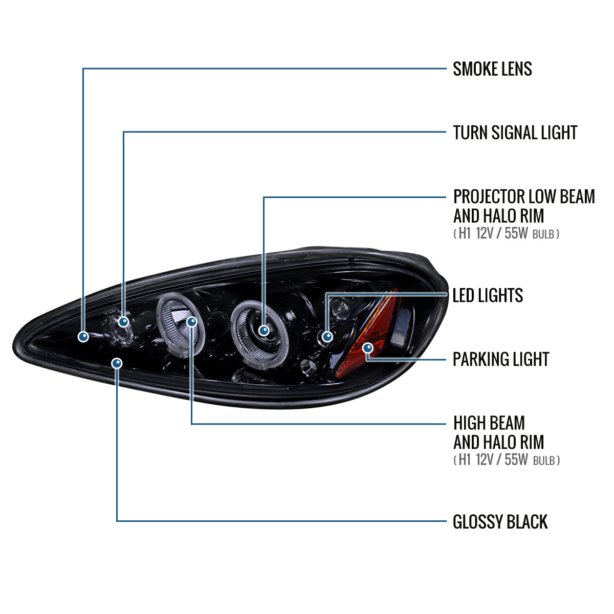 Ronnin - Fits 1999-2005 Pontiac Grand AM Upgrade Replacement LED Dual Rims Projector Headlights Assembly Pair | Black Smoke