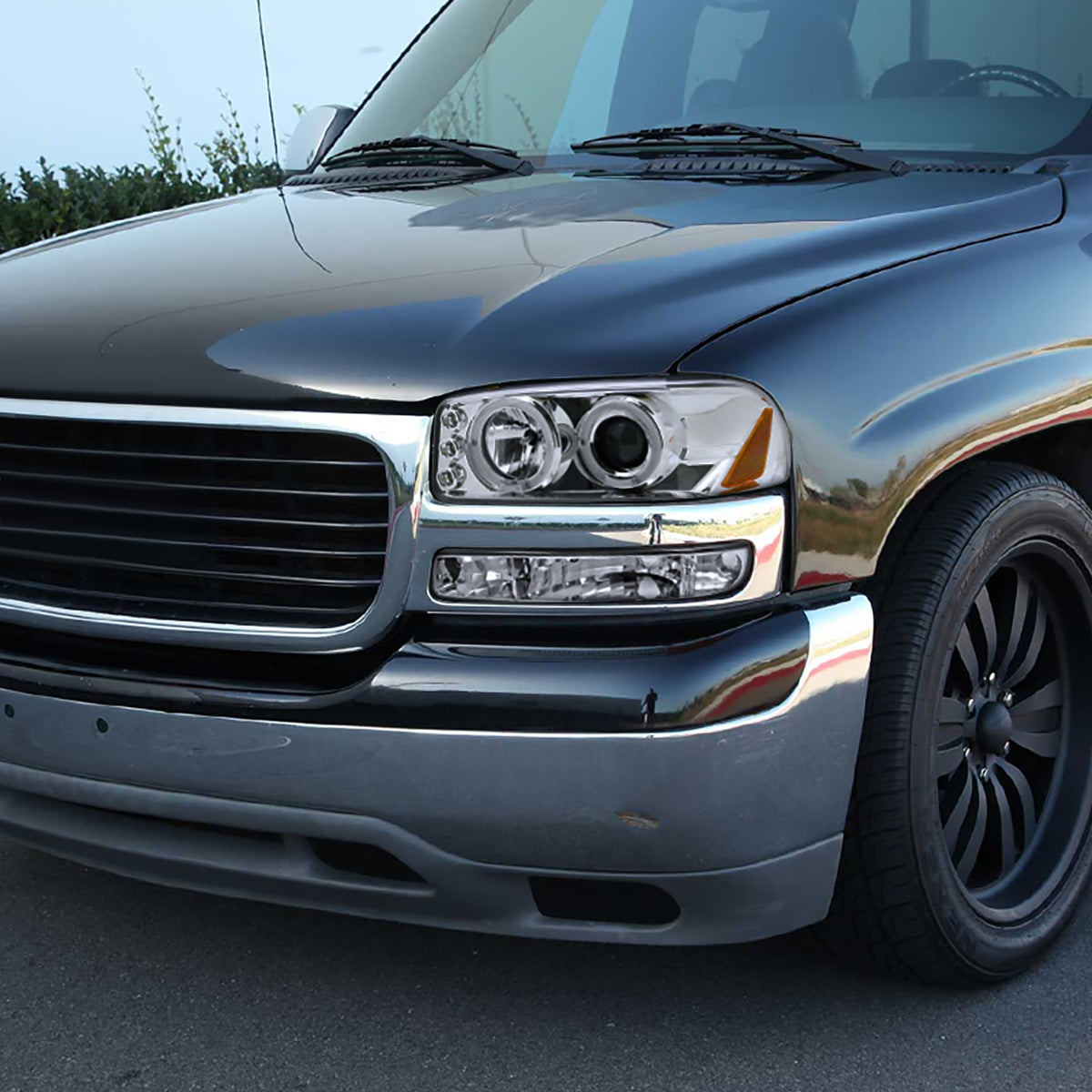 Ronnin - Fits 1999-2007 GMC Sierra Classic Yukon XL Bumper Lights Turn Signal Lamps Replacement Assembly Pair | Chrome