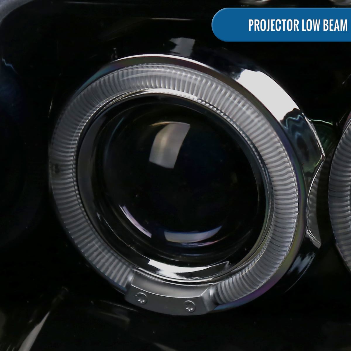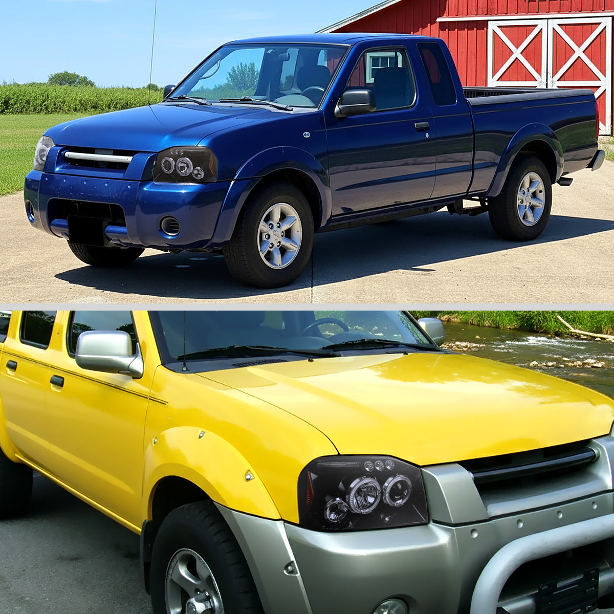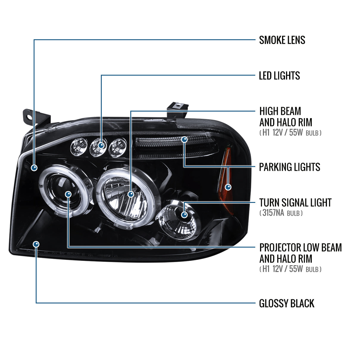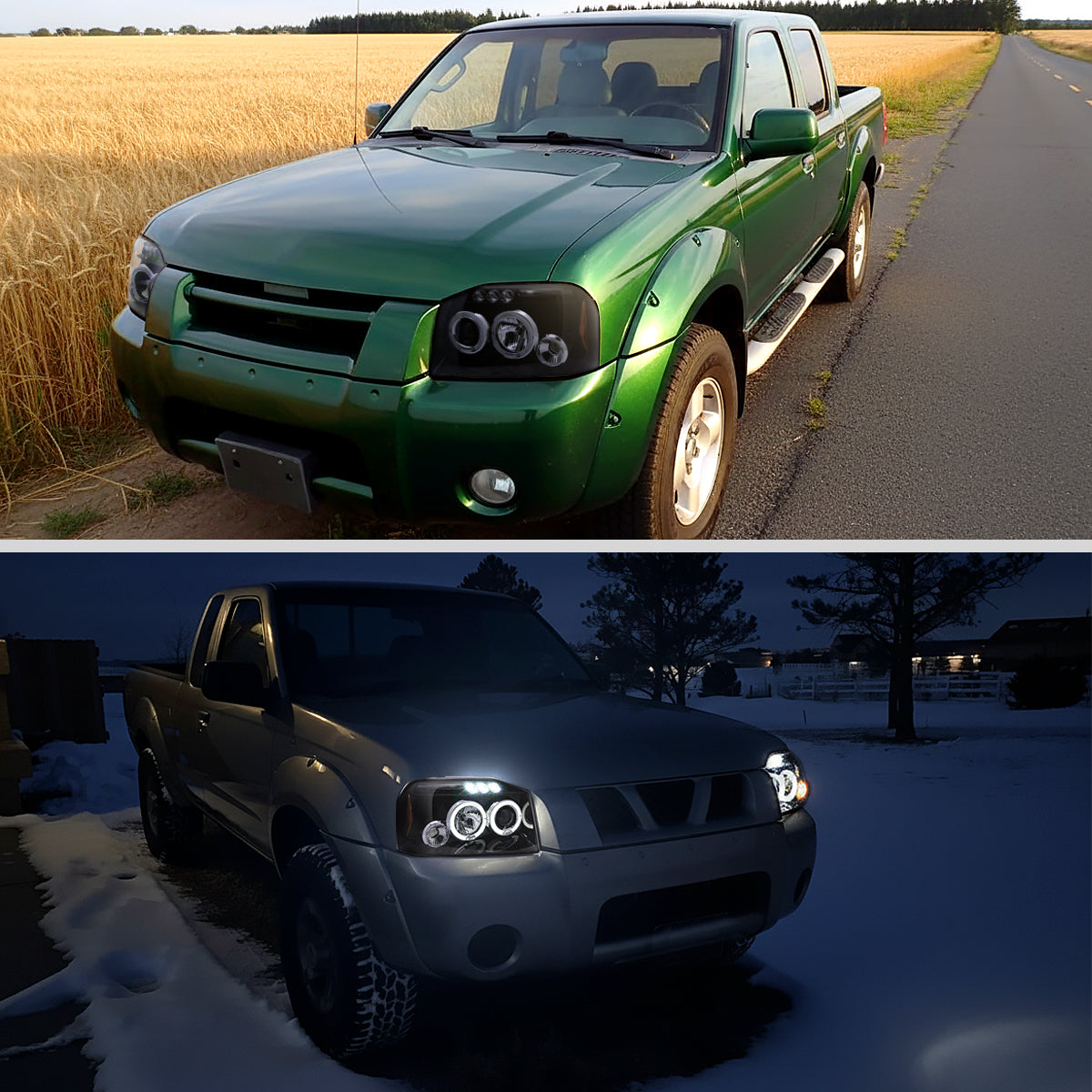 Ronnin - Fits 2001-2004 Nissan Frontier Upgrade Replacement LED Halo Rims Projector Headlights Assembly Pair | Gloss Black