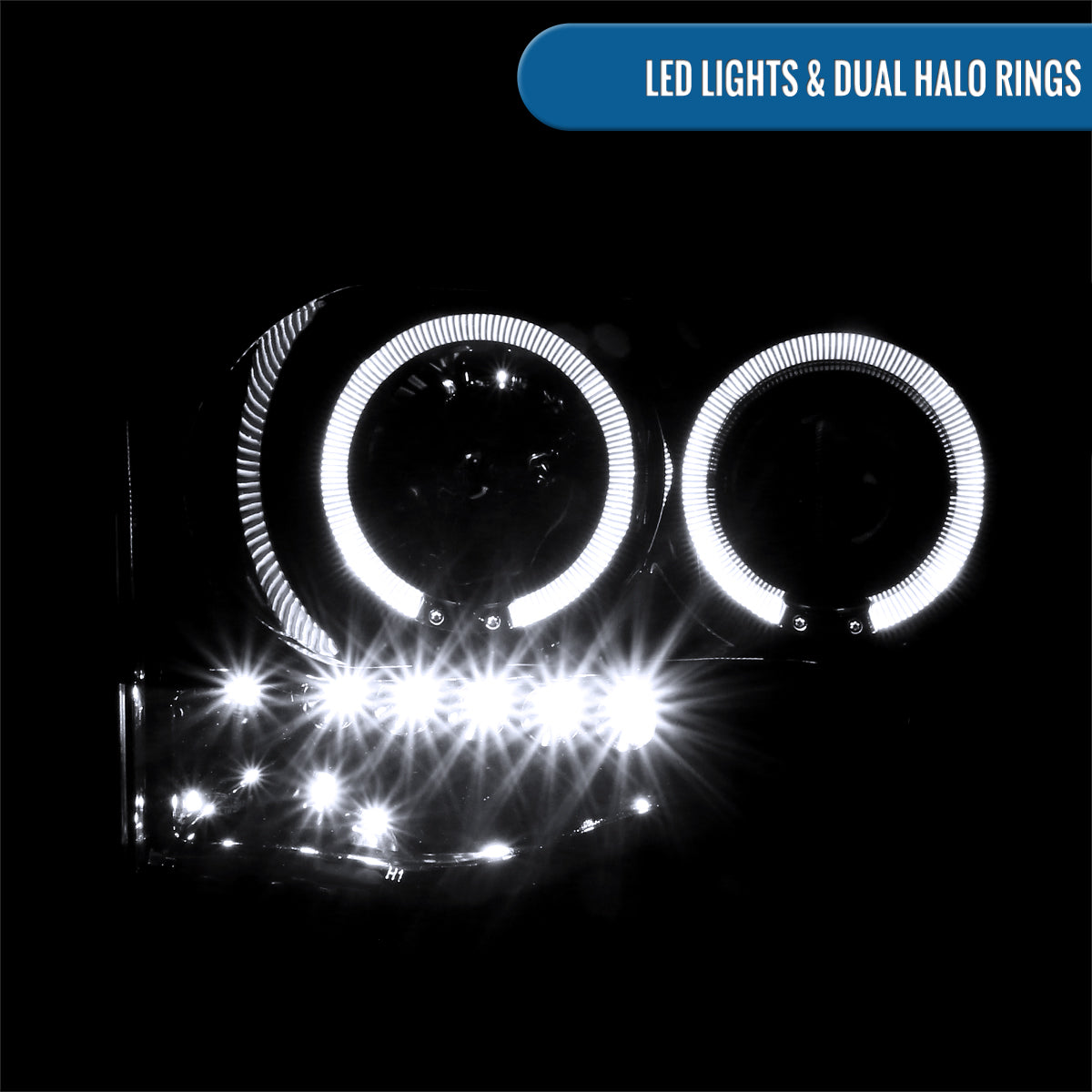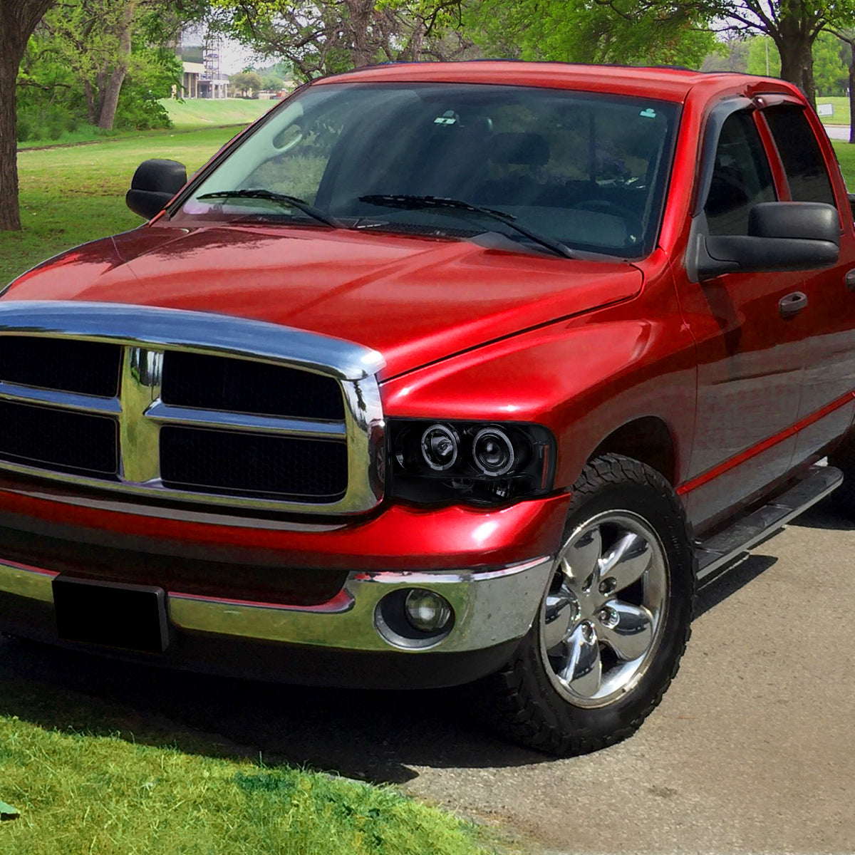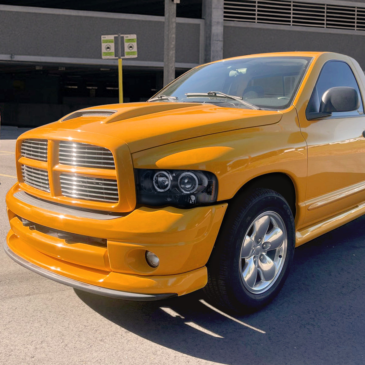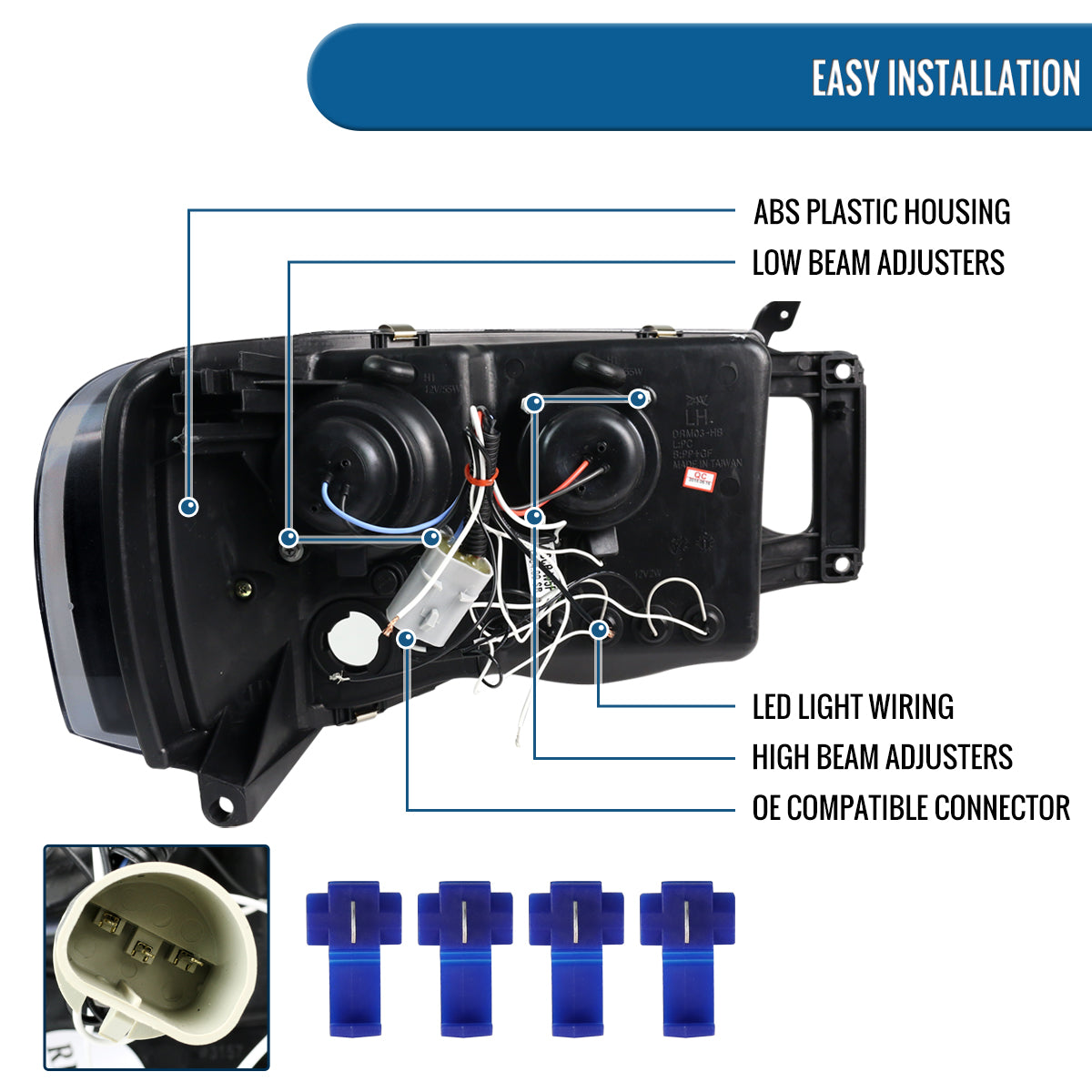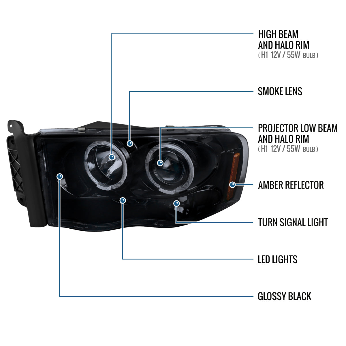 Ronnin - Fits 2002-2005 Dodge Ram 1500 2500 3500 Upgrade LED Dual Rims Projector Headlights Assembly Pair | Black Smoke