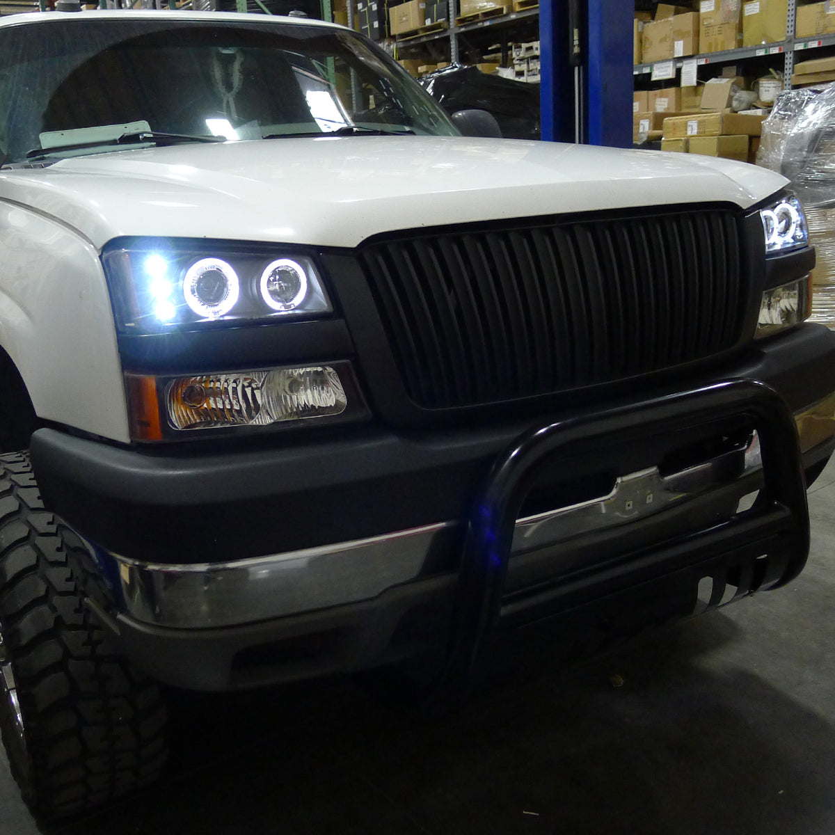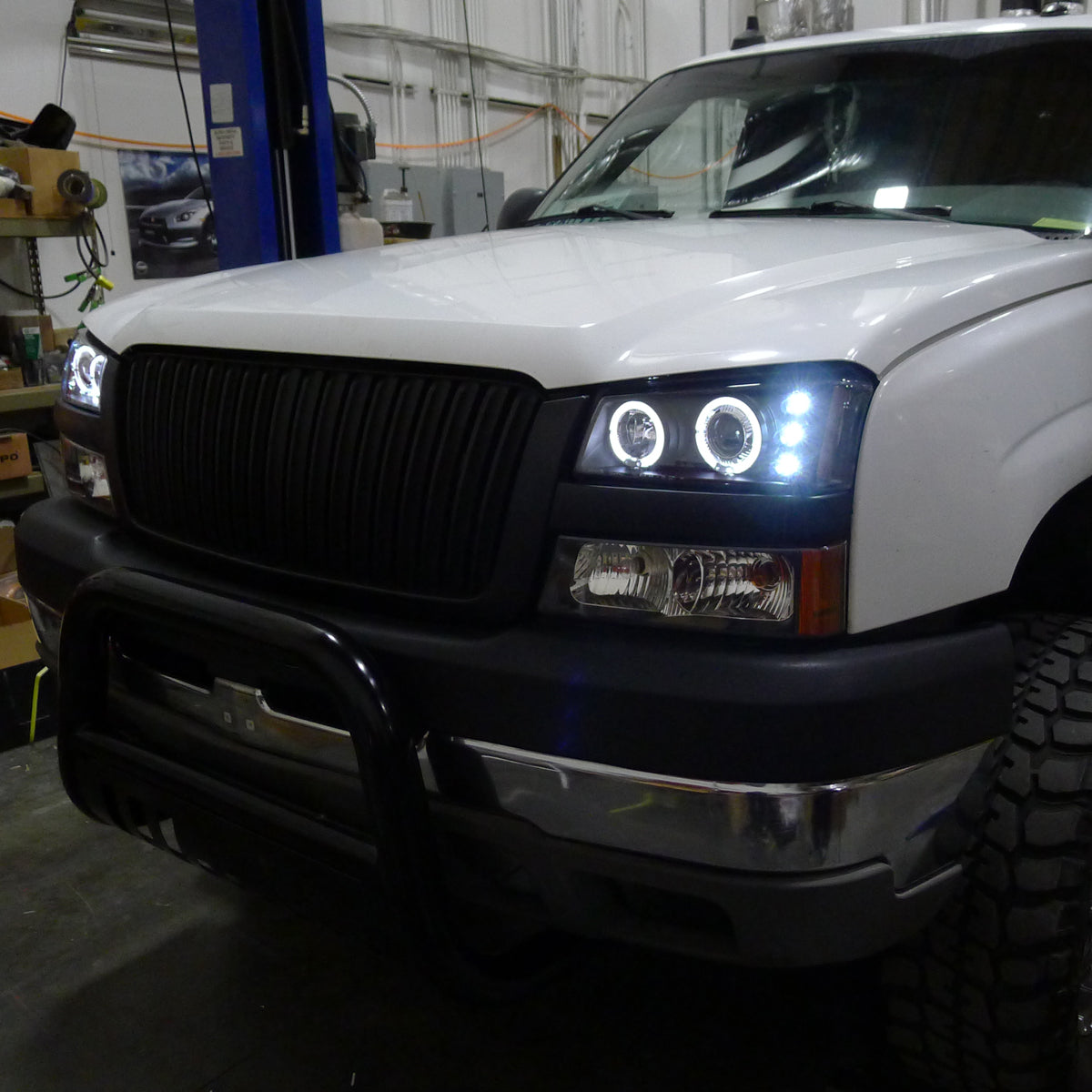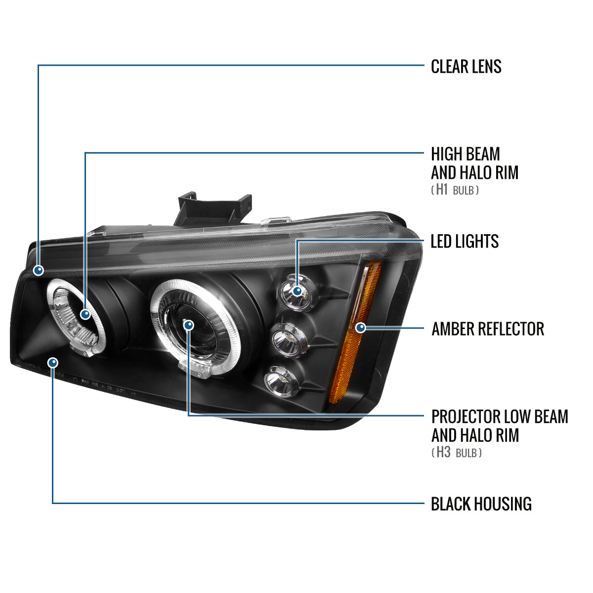 Ronnin - Fits 2002-2007 Chevy Avalanche Silverado Upgrade Replacement Dual LED Halo Rims Projector Headlights Assembly Pair | Black