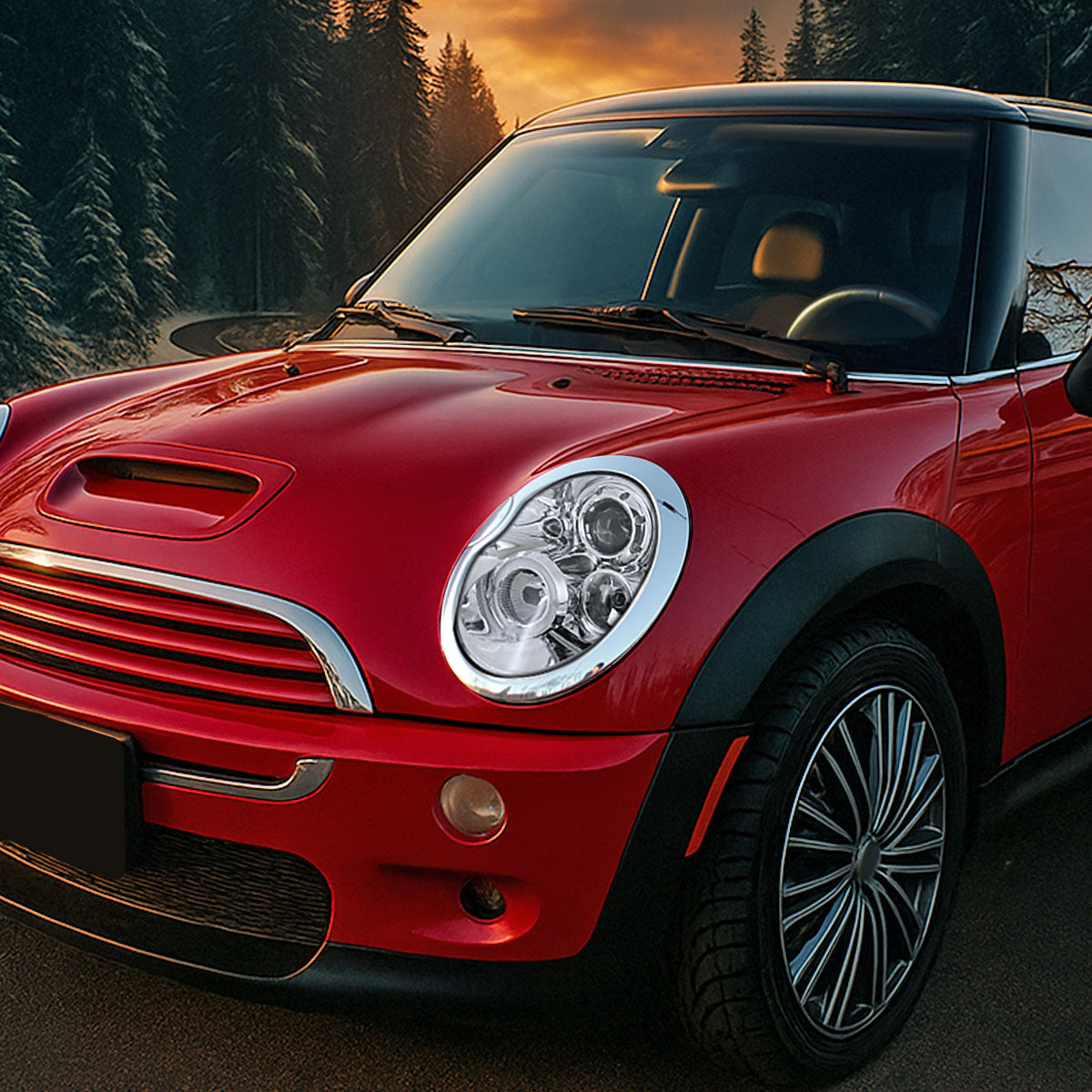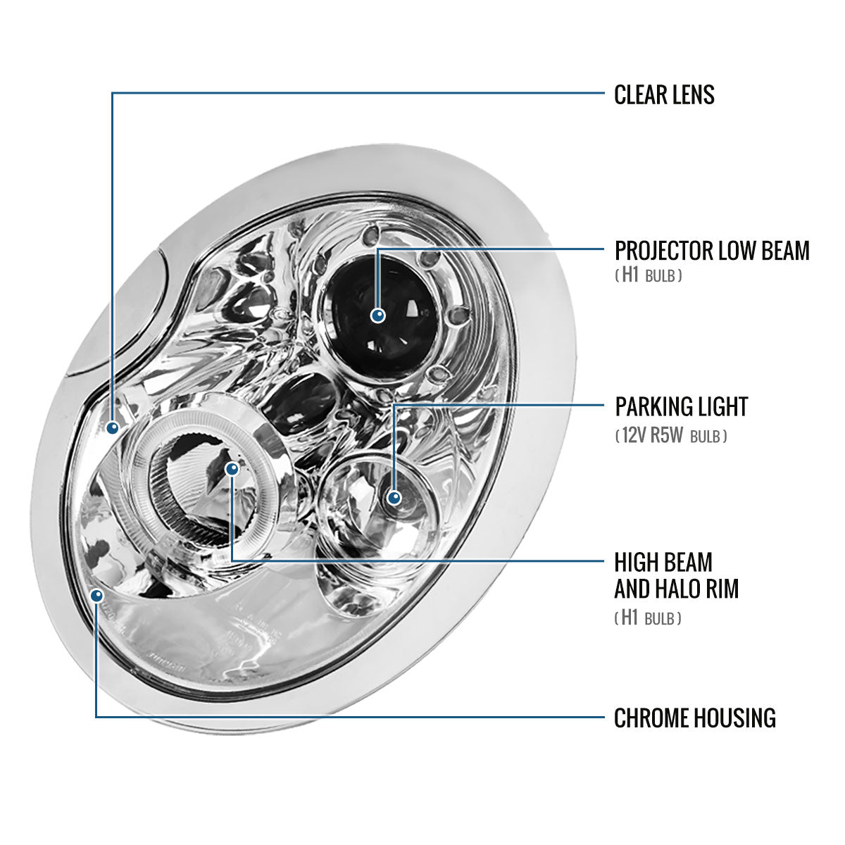Ronnin - Fits 2002-2008 R50 R52 R53 Mini Cooper Upgrade Assembly LED Rims Halogen Projector Headlights Pair | Chrome