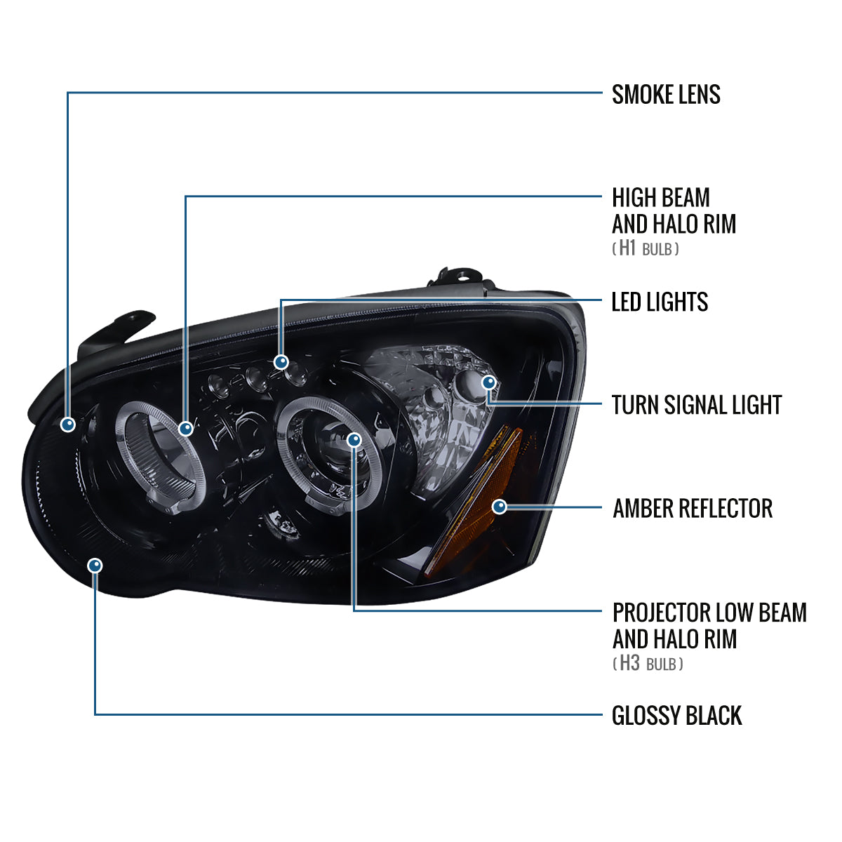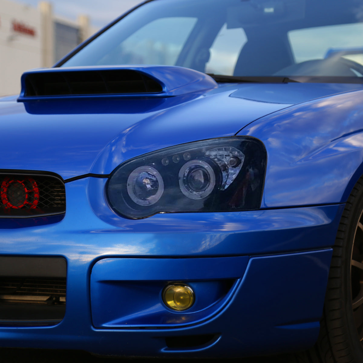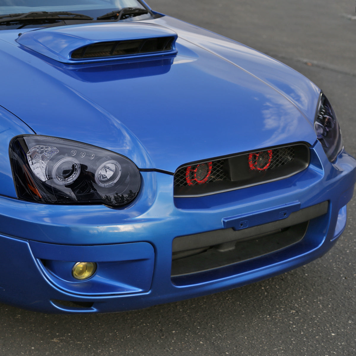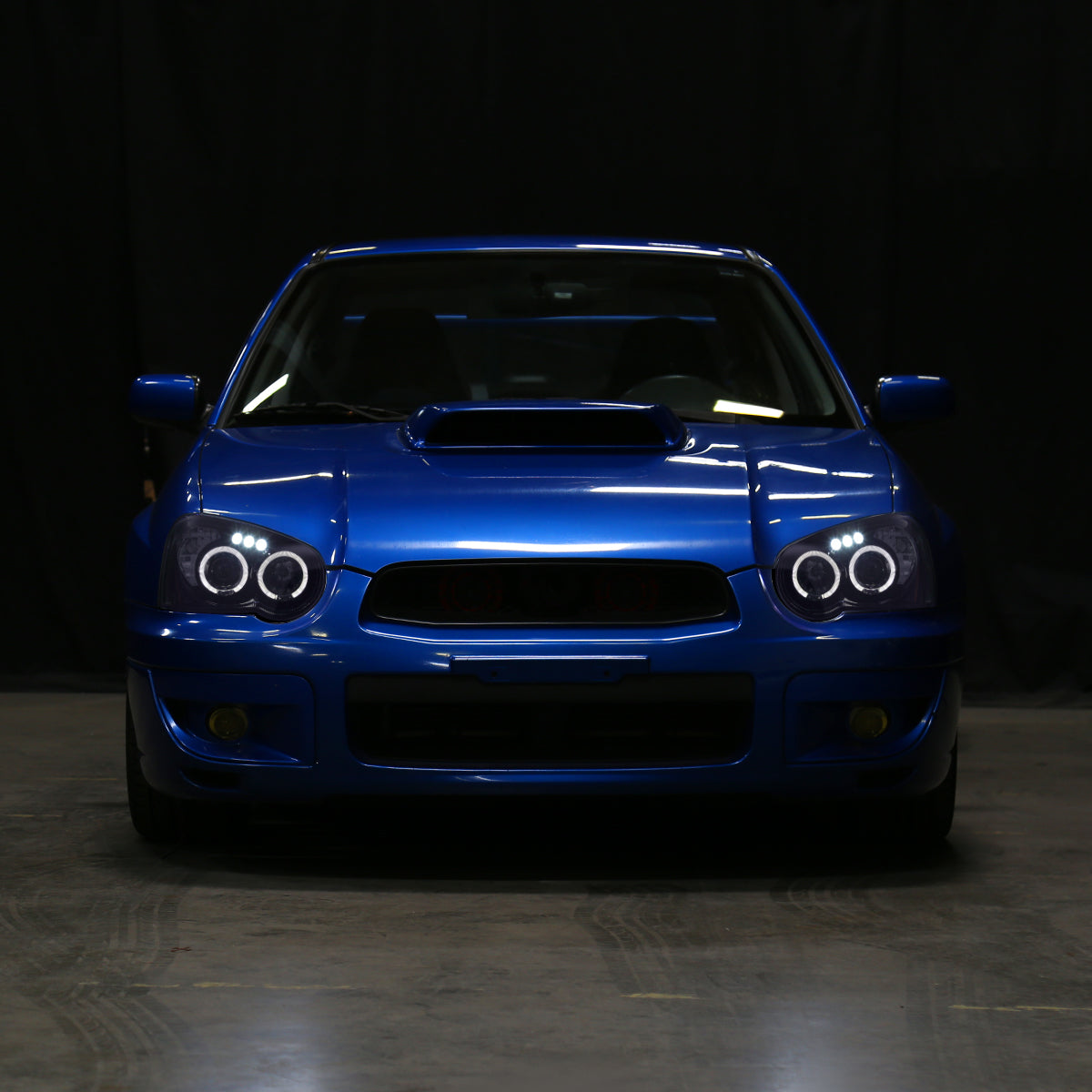Ronnin - Fits 2004-2005 Subaru Impreza Upgrade LED Dual Halo Rims Projector Halogen Headlights Assembly Pair | Black Smoke