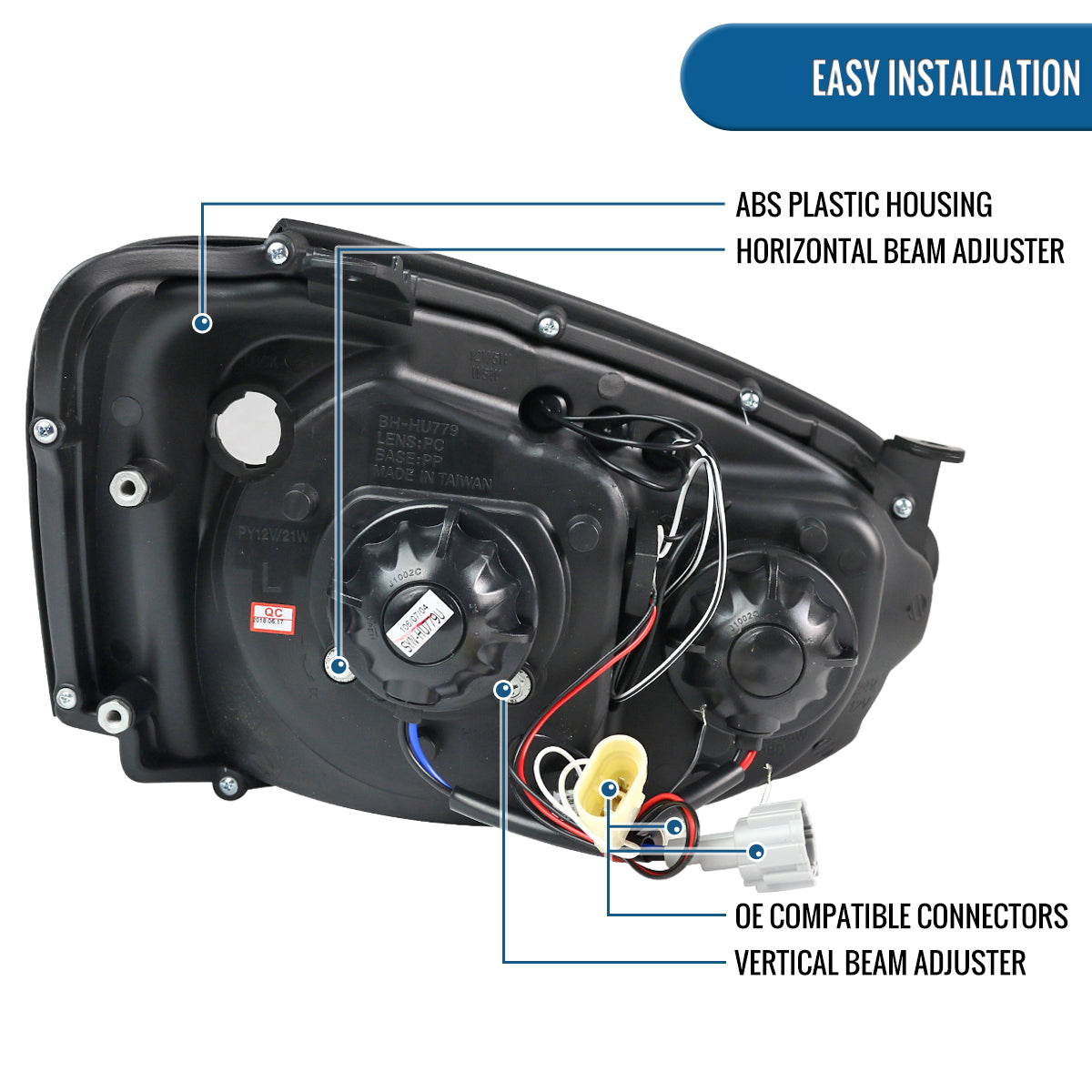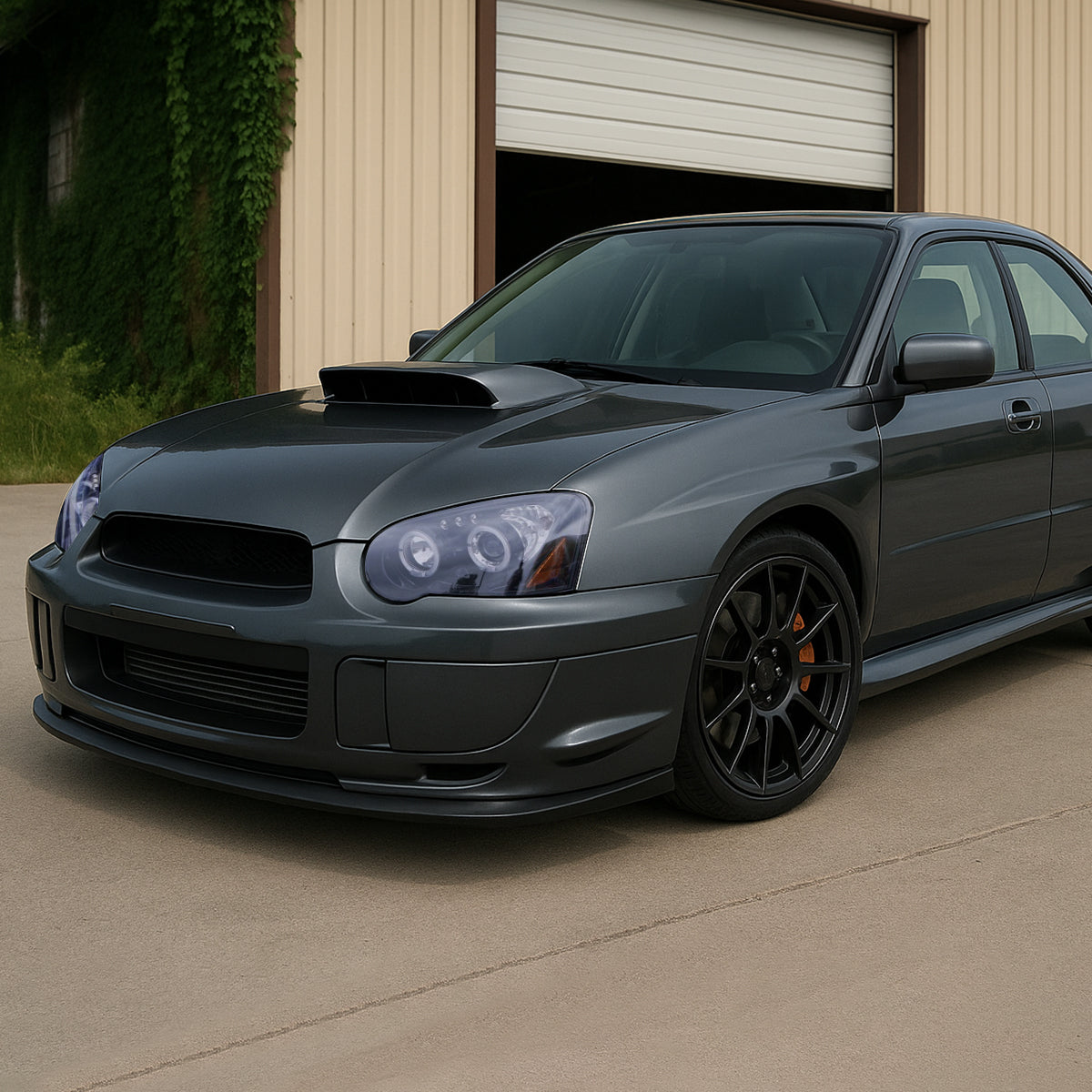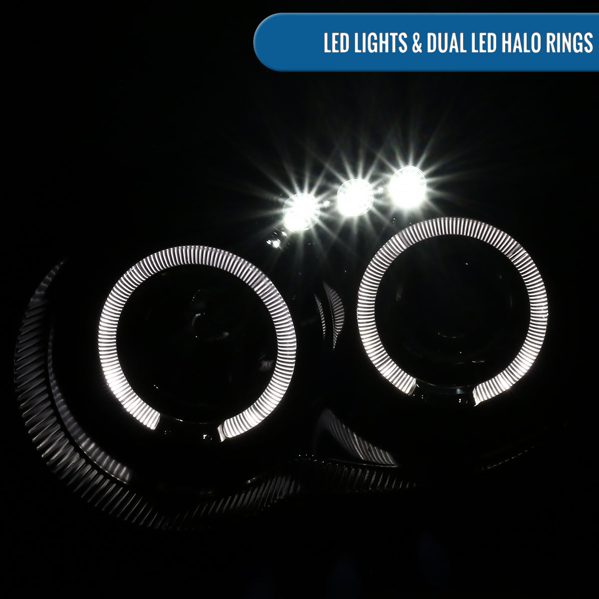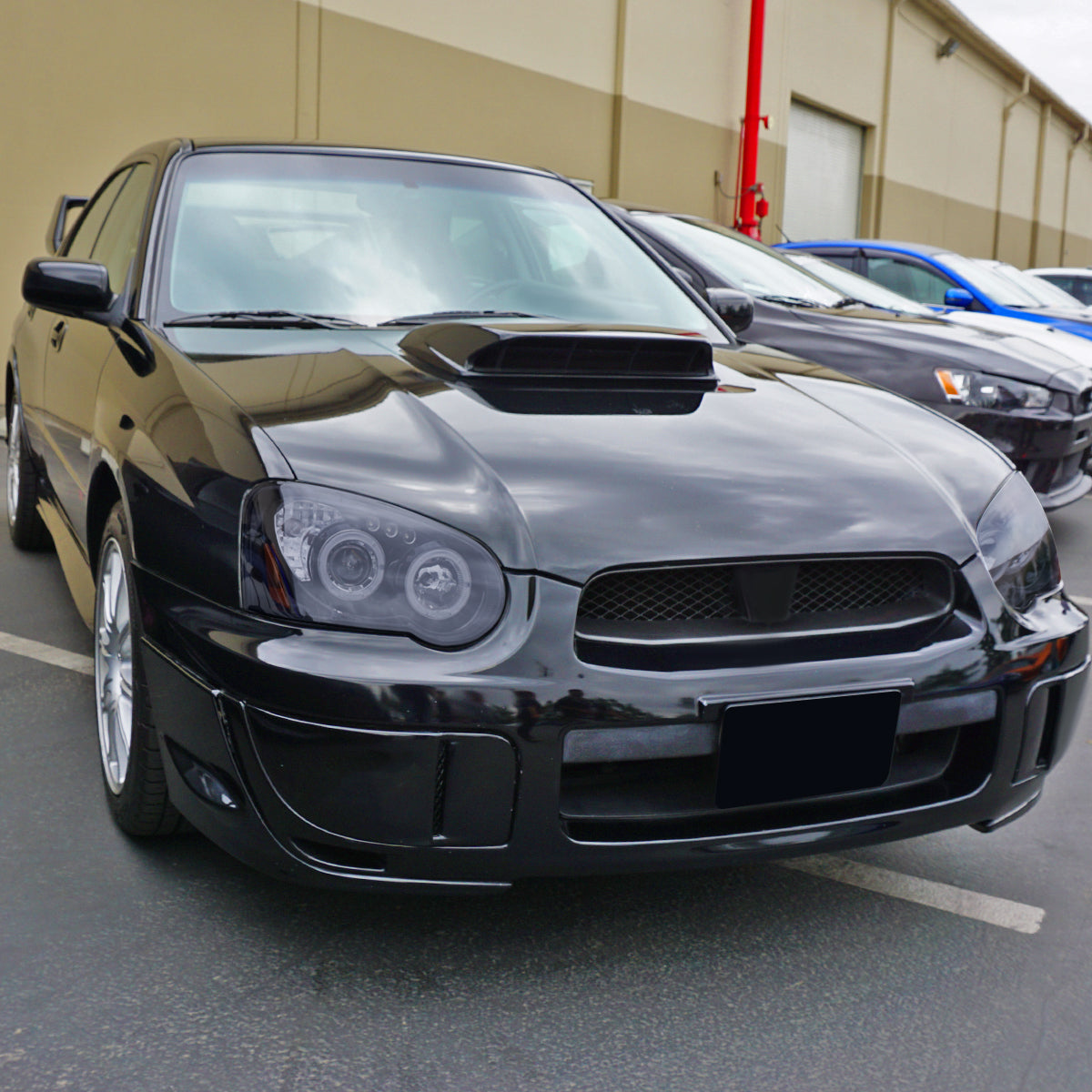 Ronnin - Fits 2004-2005 Subaru Impreza Upgrade LED Dual Halo Rims Projector Halogen Headlights Assembly Pair | Black Smoke