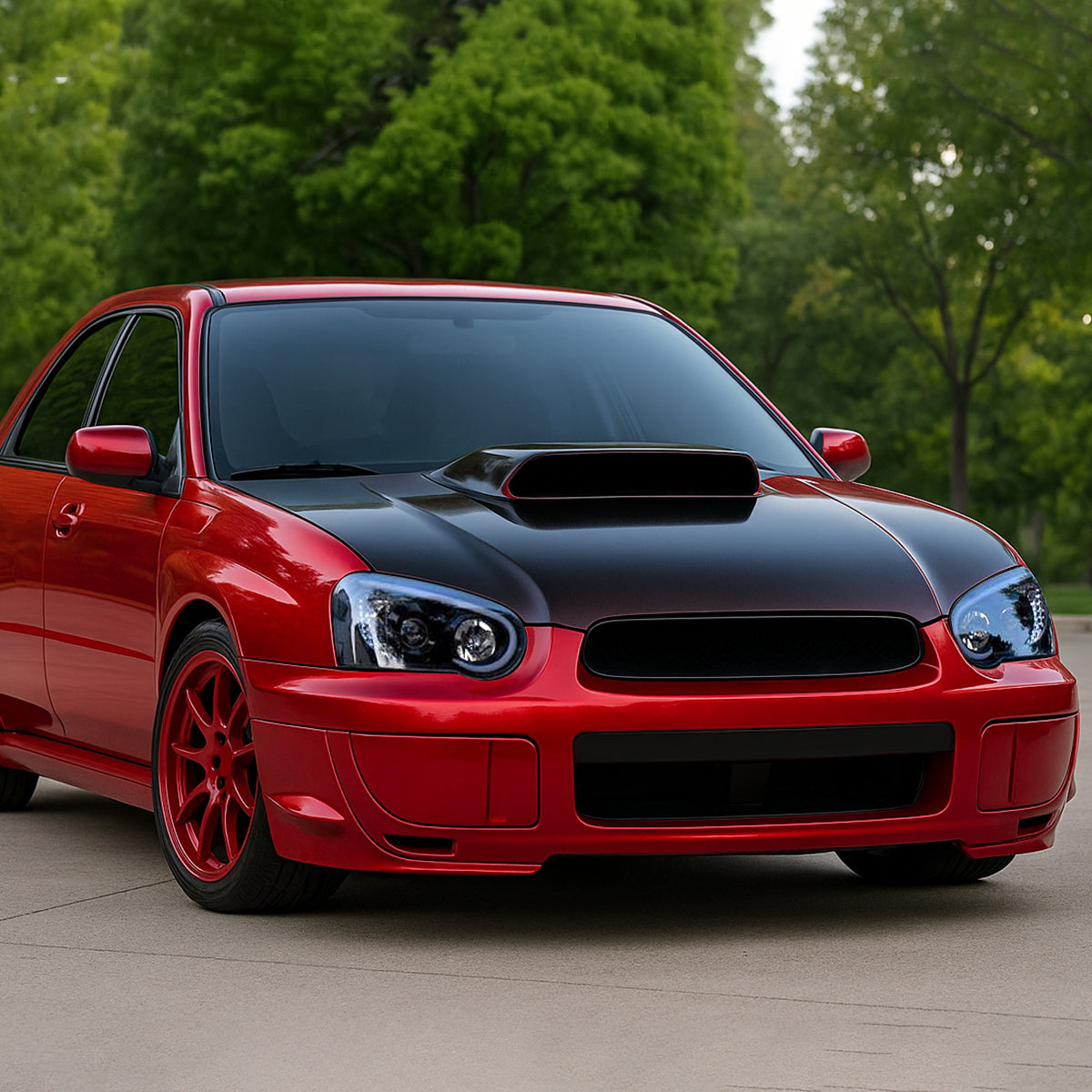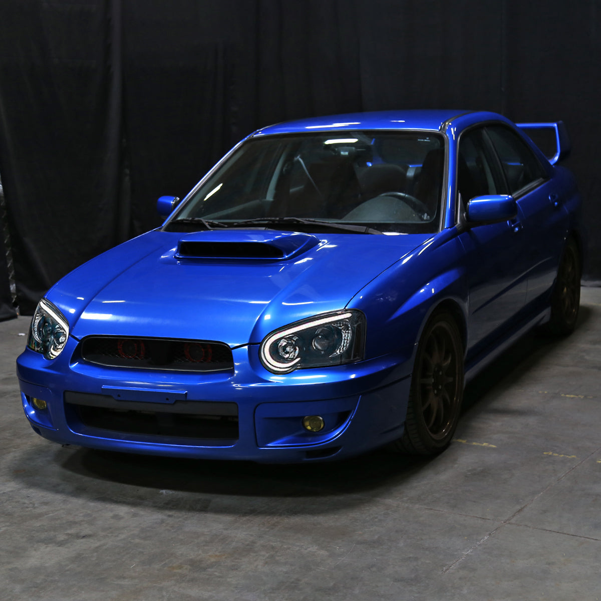 Ronnin - Fits 2004-2005 Subaru Impreza Upgrade Replacement LED Running Lights Tube Projector Halogen Headlights Assembly Pair | Black Smoke