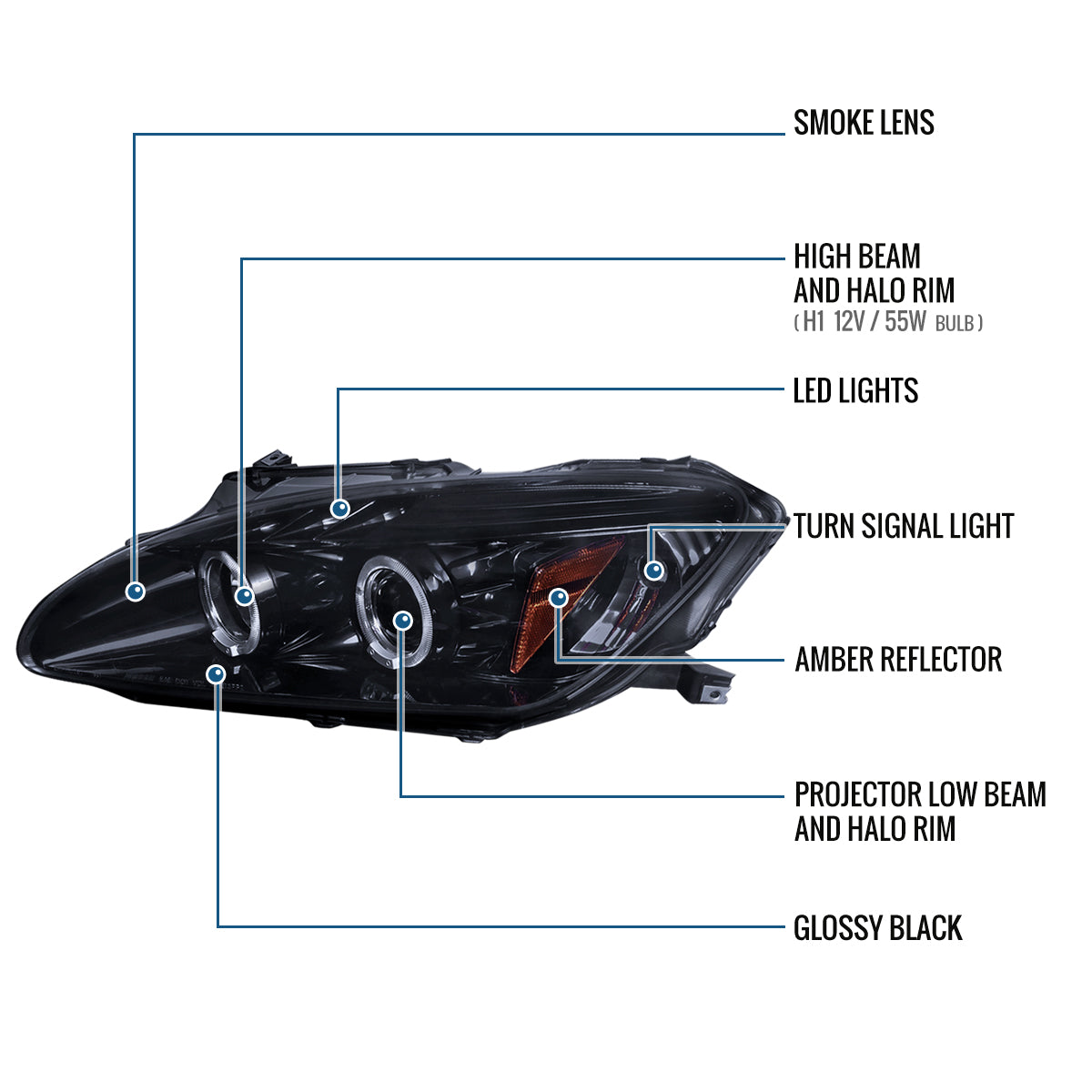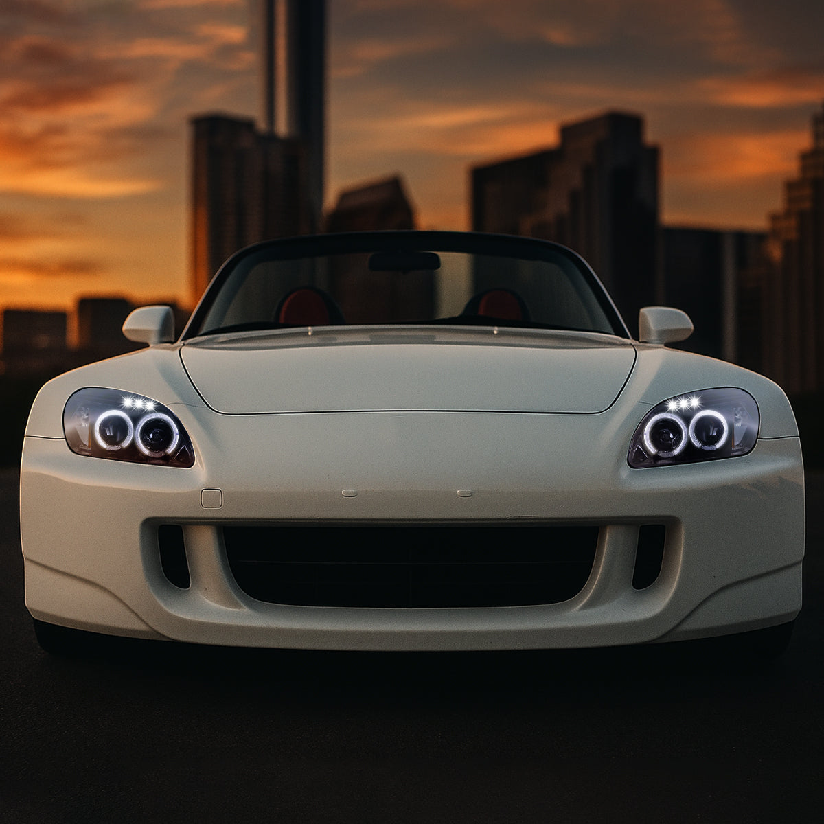 Ronnin - Fits 2004-2009 Honda S2000 S2K AP2 Upgraded Replacement LED Dual Rims Projector Headlights Assembly Pair | Black Smoke
