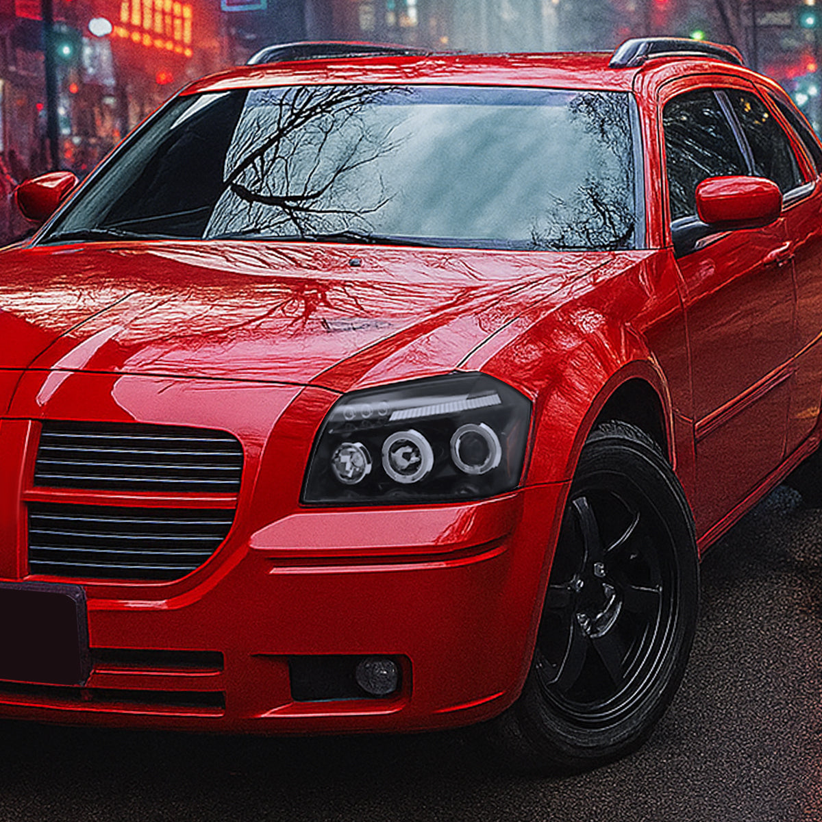 Ronnin - Fits 2005-2007 Dodge Magnum Upgrade Replacement LED Dual Rims Projector Headlights Assembly Pair | Black Smoke