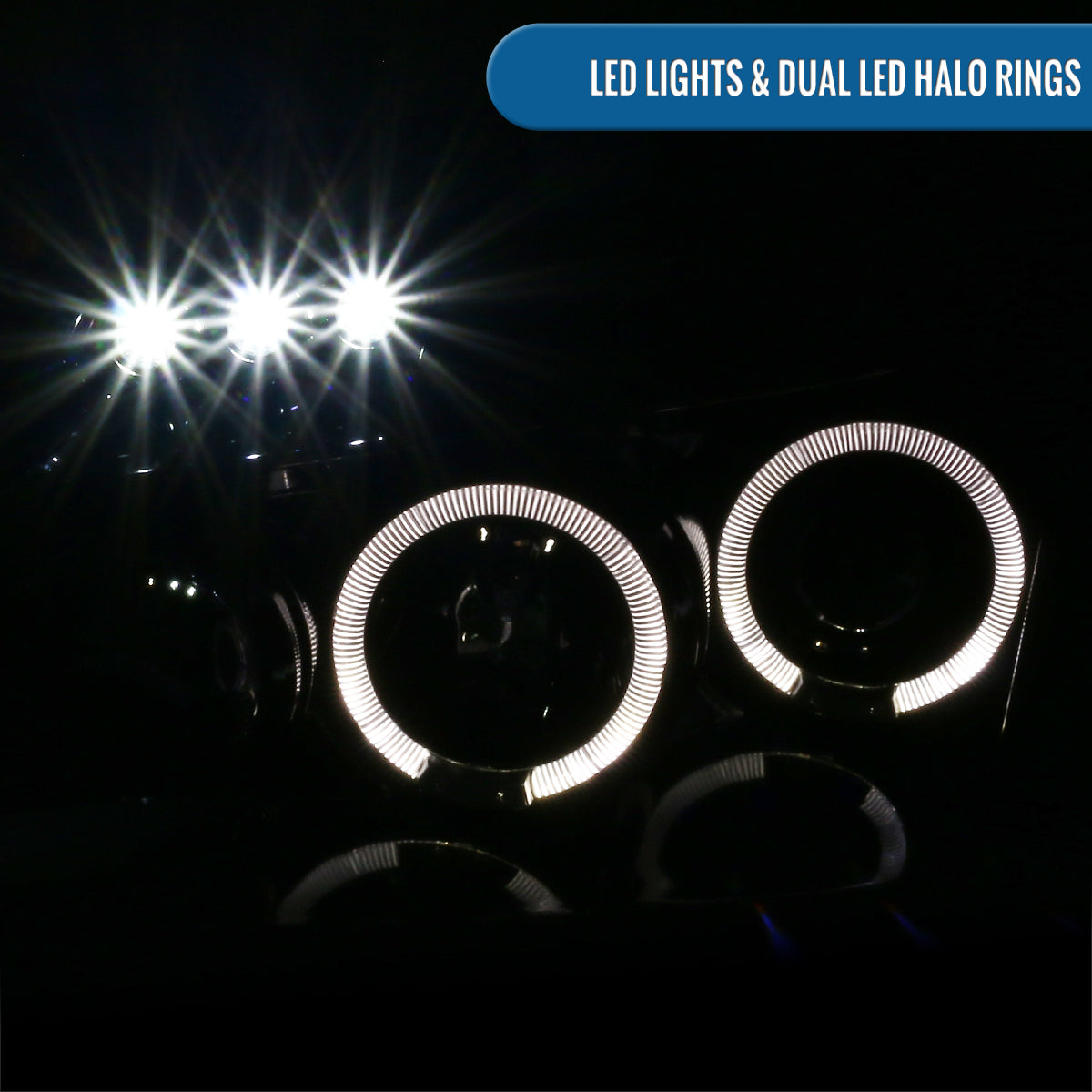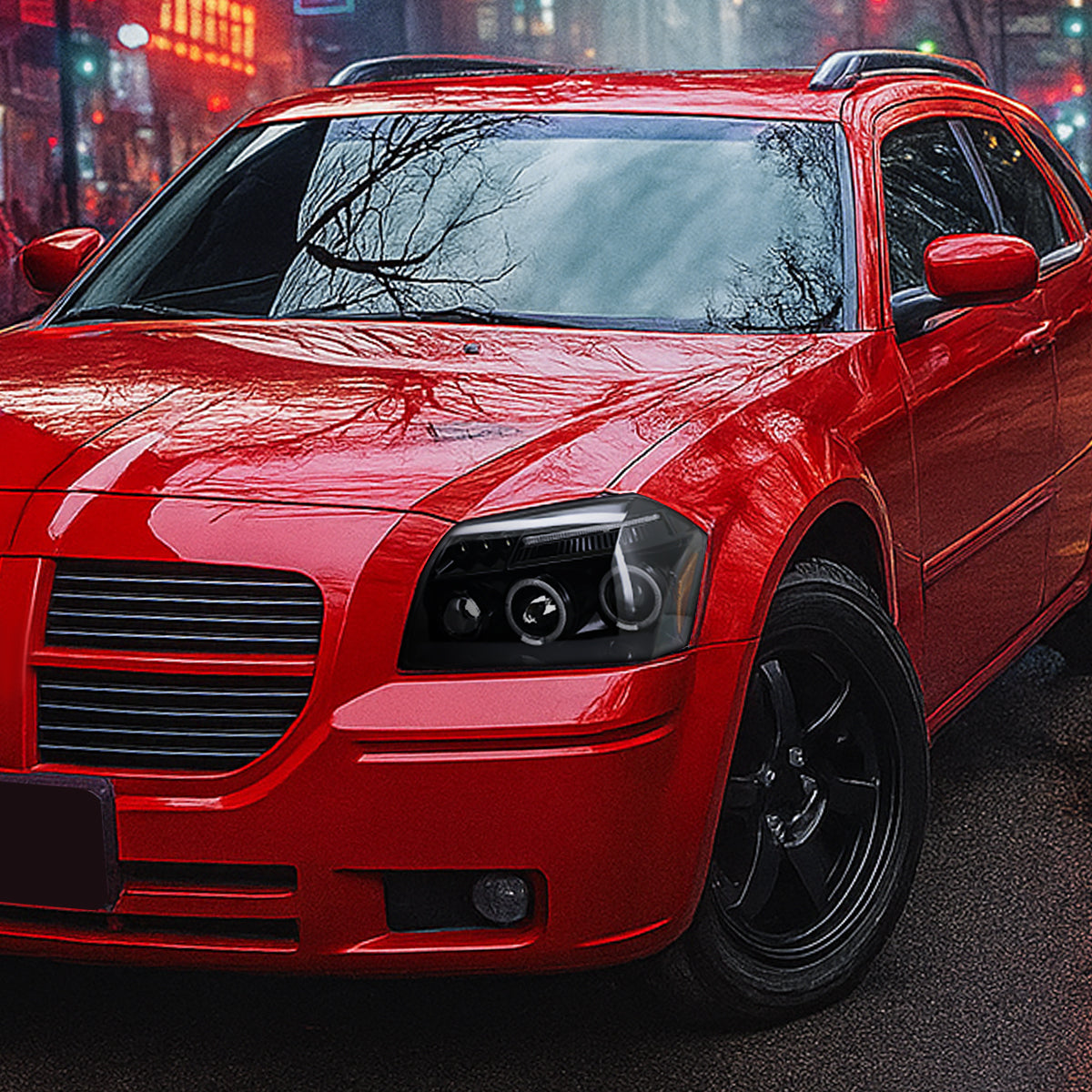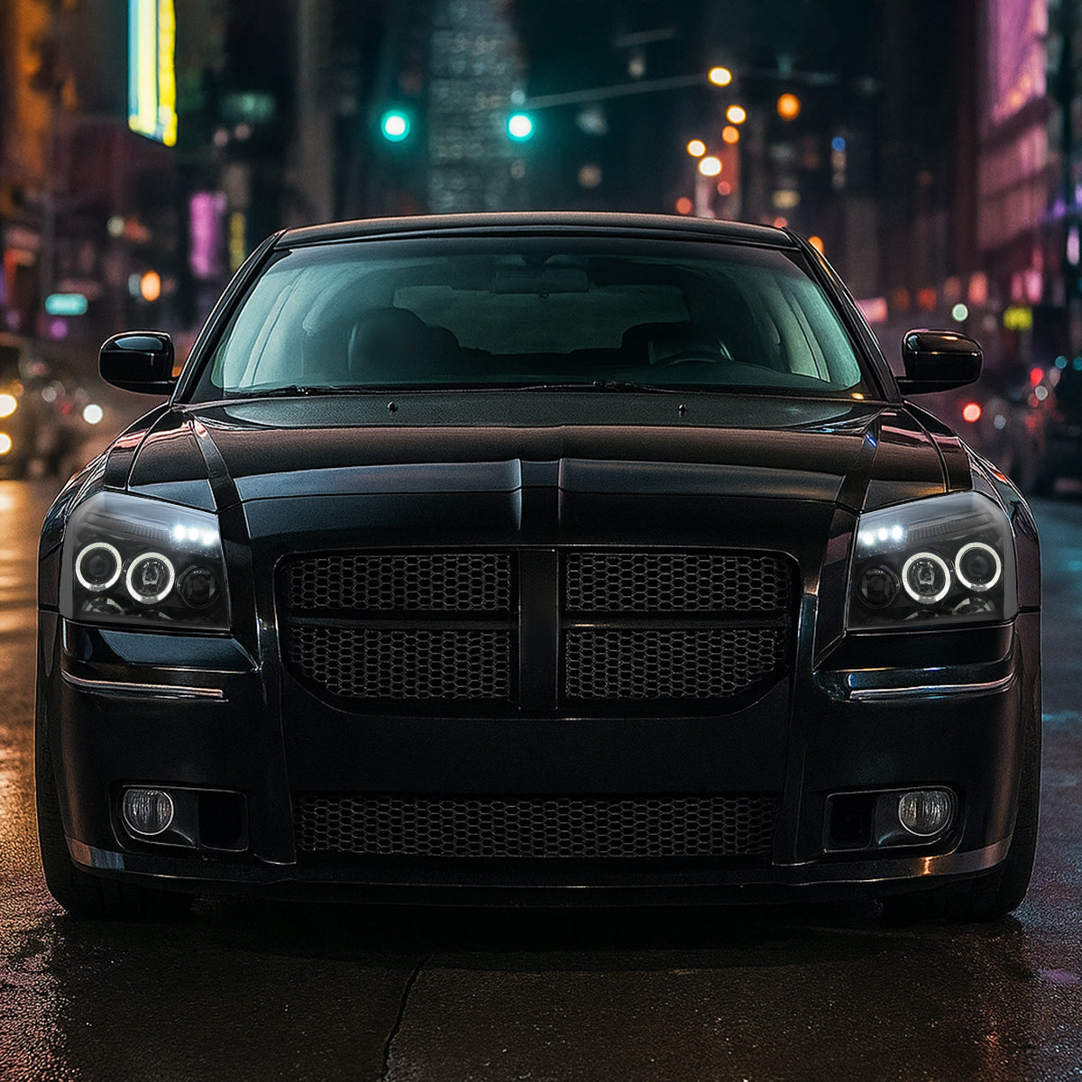 Ronnin - Fits 2005-2007 Dodge Magnum Upgrade Replacement LED Dual Rims Projector Headlights Assembly Pair | Gloss Black