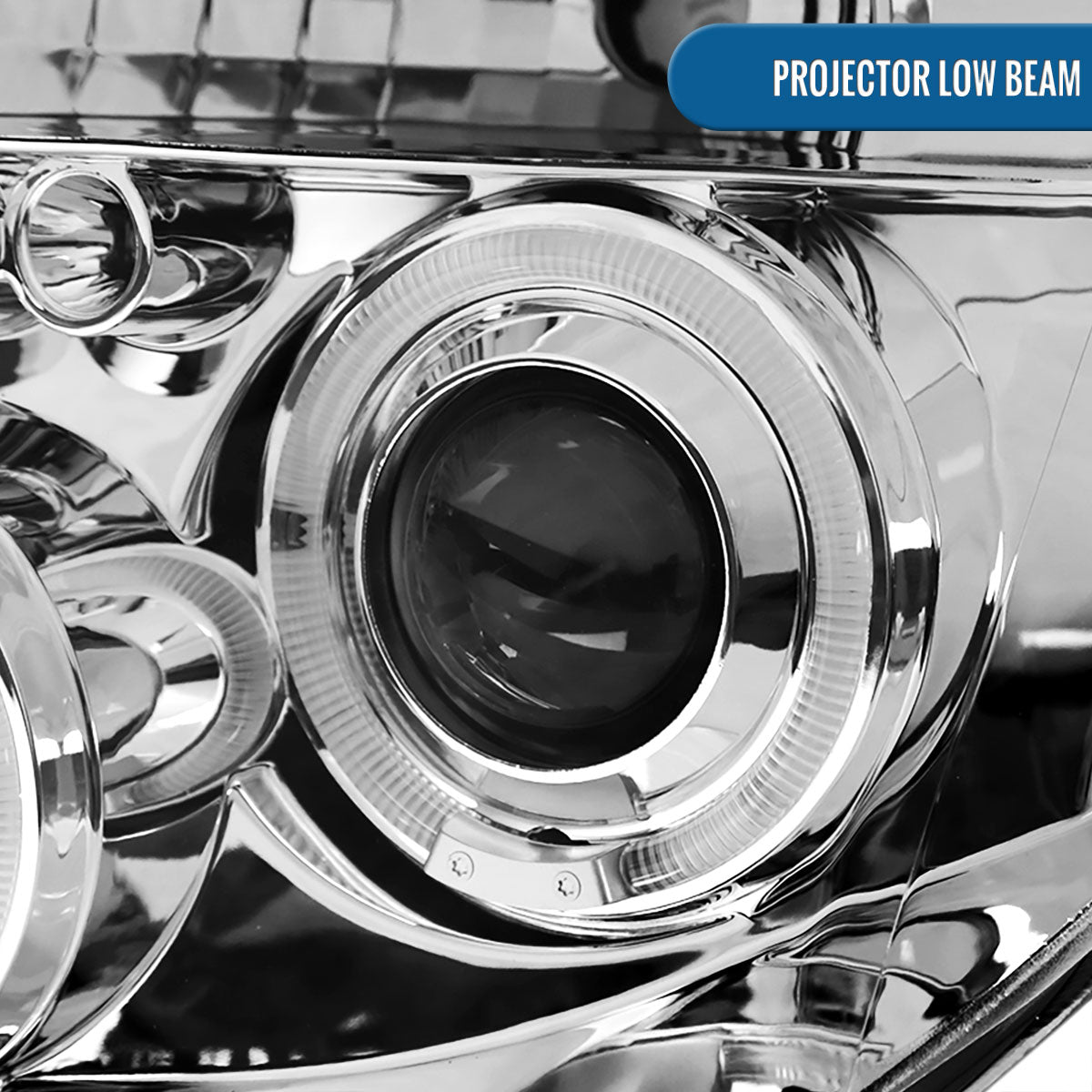 Ronnin - Fits 2005-2008 Nissan Pathfinder Frontier Upgraded LED Dual Rims Projector Headlights Assembly Pair | Chrome
