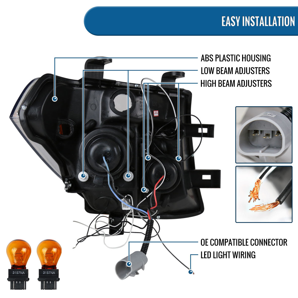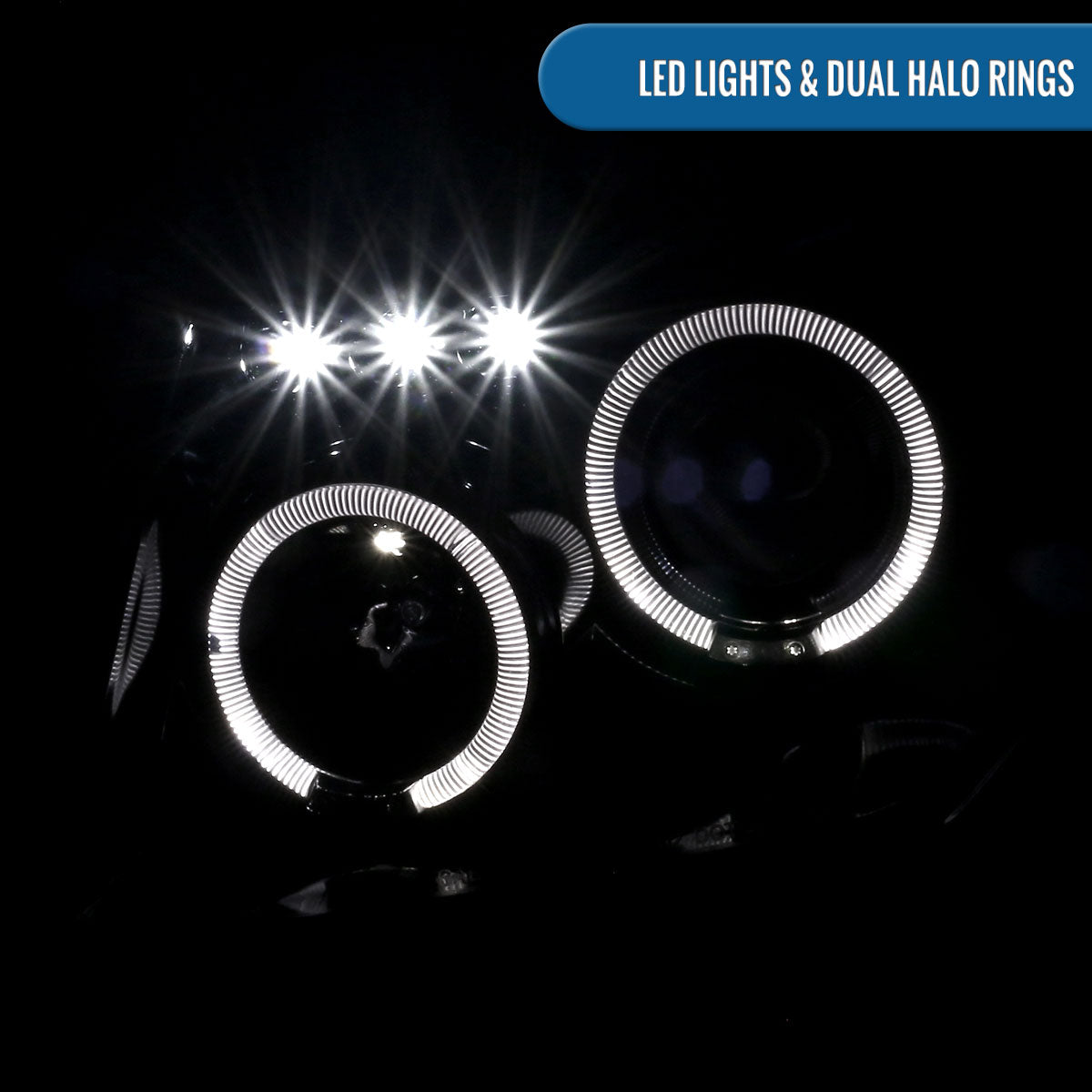 Ronnin - Fits 2005-2008 Nissan Pathfinder Frontier Upgraded LED Dual Rims Projector Headlights Assembly Pair | Gloss Black