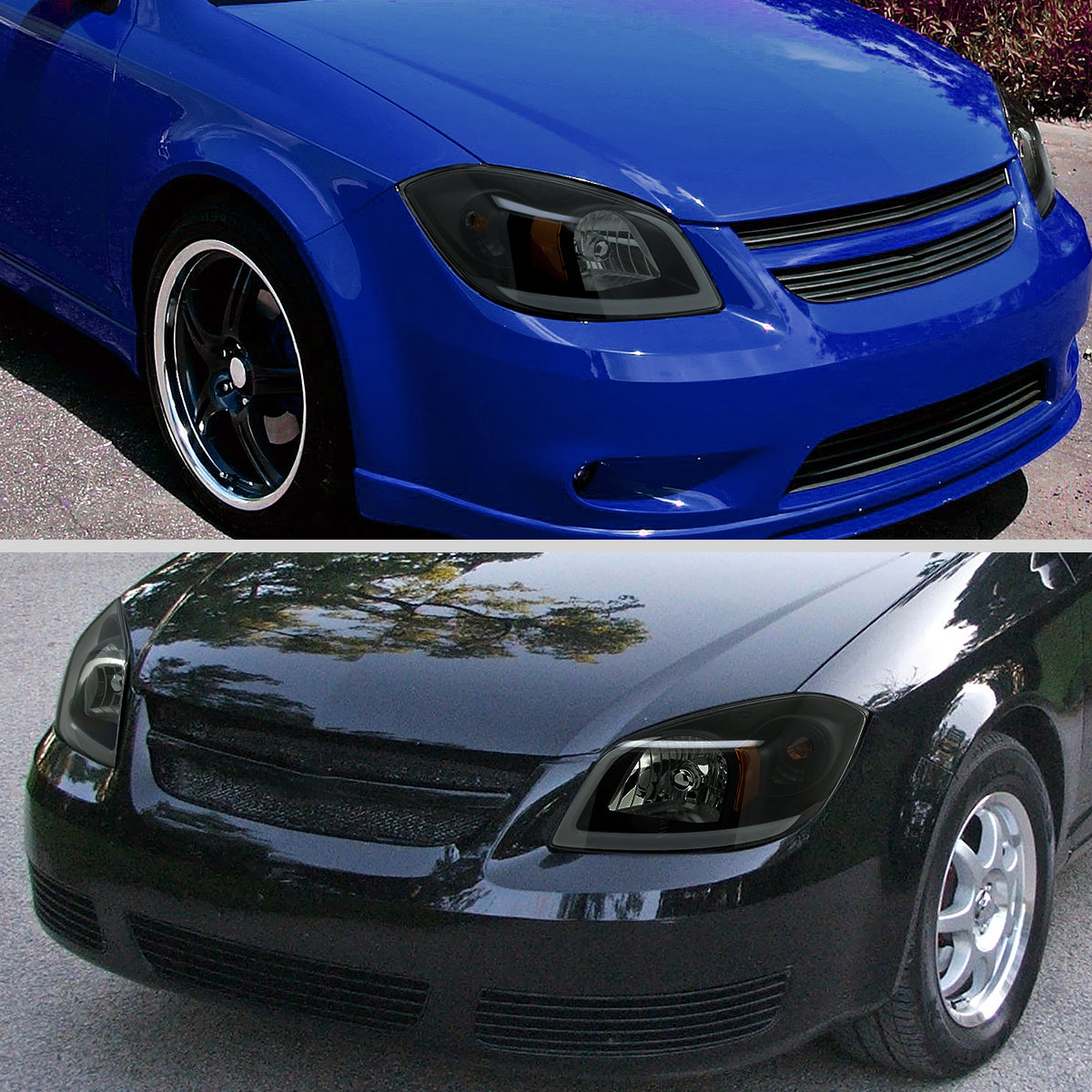 Ronnin - Fits 2005-2010 Chevy Cobalt Pontiac G5 Pursuit Upgraded Factory Replacement LED Tube Running Lights Headlights Assembly Pair | Black Smoke