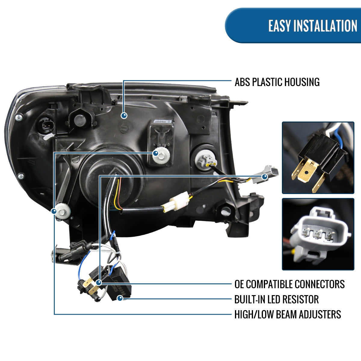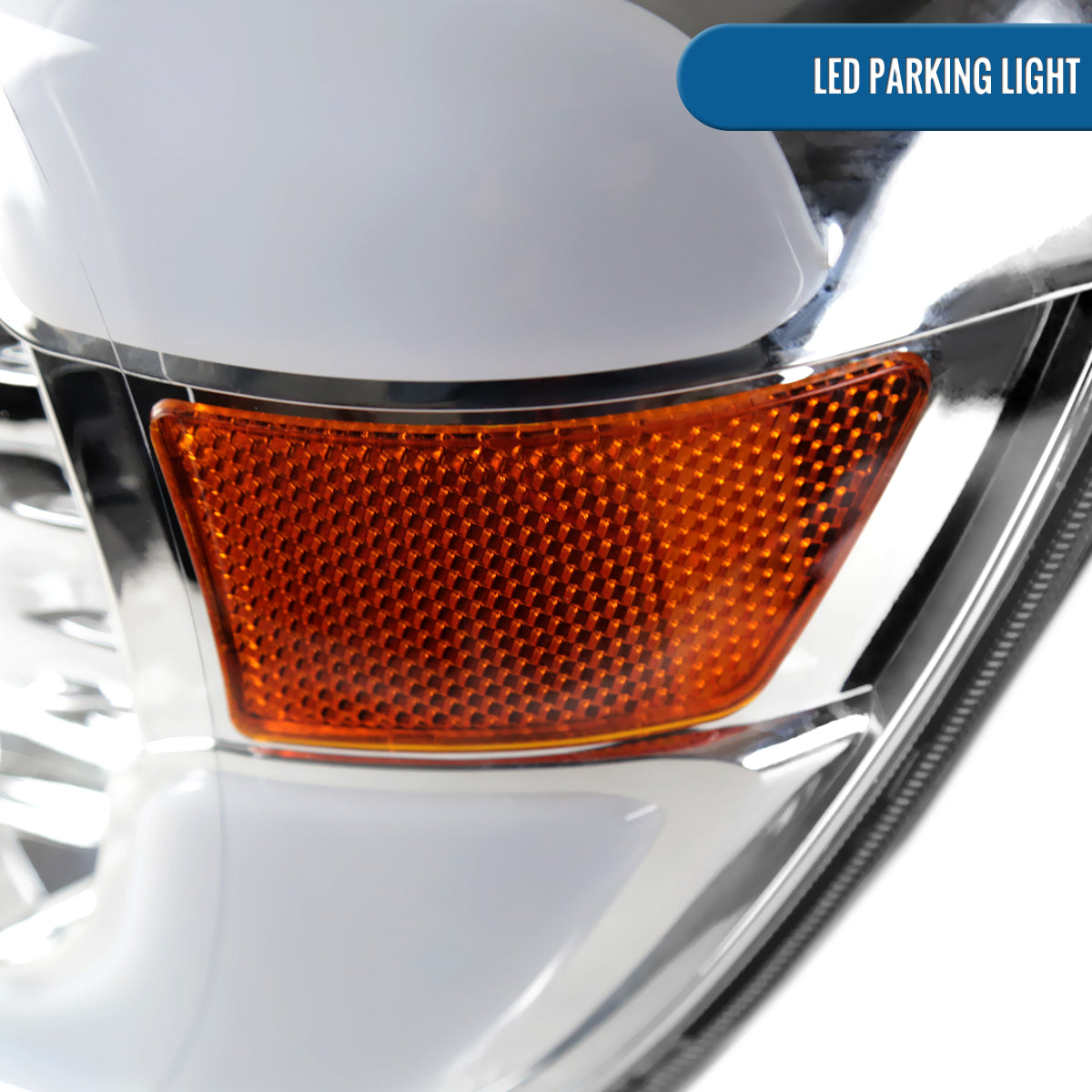 Ronnin - Fits 2005-2011 Toyota Tacoma LED Tube Projector Headlights Assembly Head Lamps Replacement Pair | Chrome