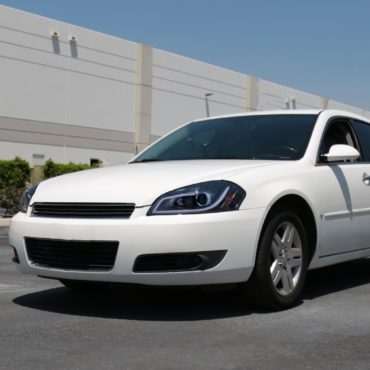 Ronnin - Fits 2006-2016 Chevy Impala 2006-2007 Chevy Monte Carlo Upgrade LED Running Light Tube Projector Headlights Assembly Pair | Black Smoke