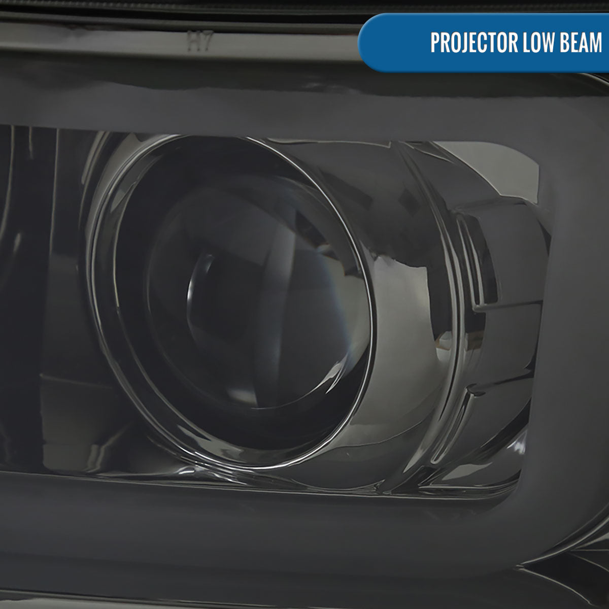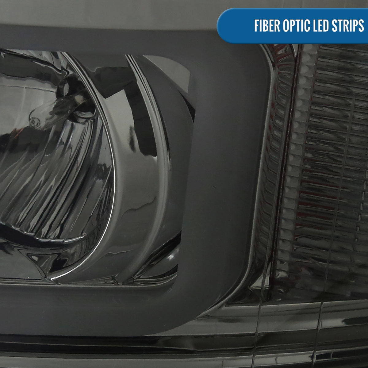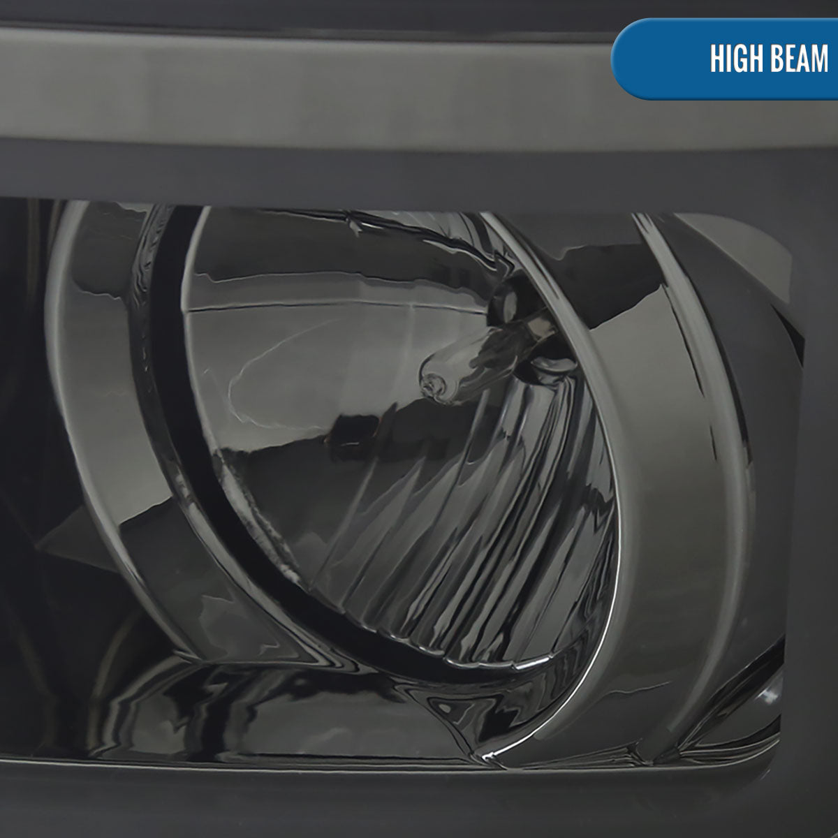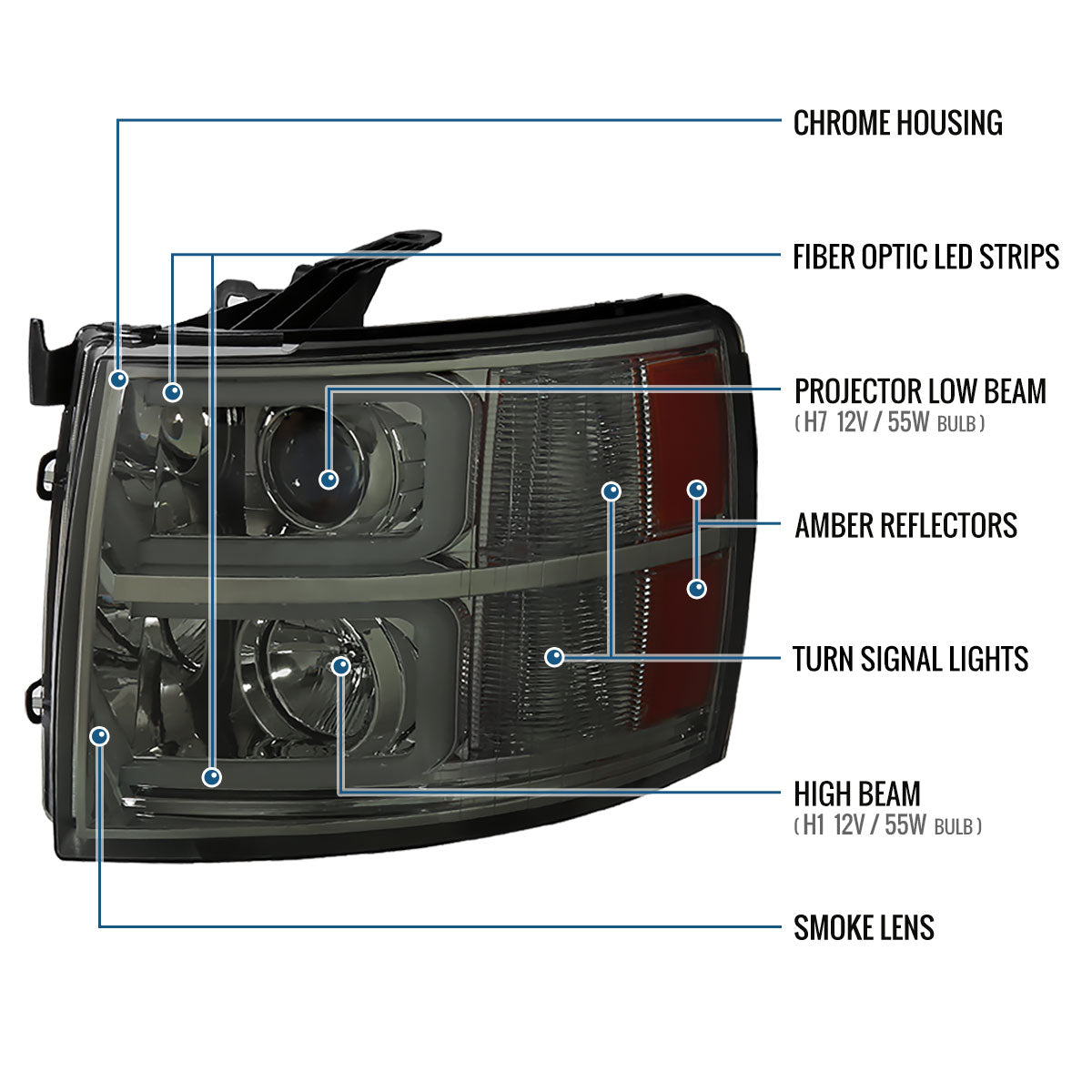Ronnin - Fits 2007-2013 Chevy Silverado 1500 2007-2014 2500HD 3500HD Pickup Truck Upgraded Replacement LED Tube Projector Headlights Assembly Pair | Smoke