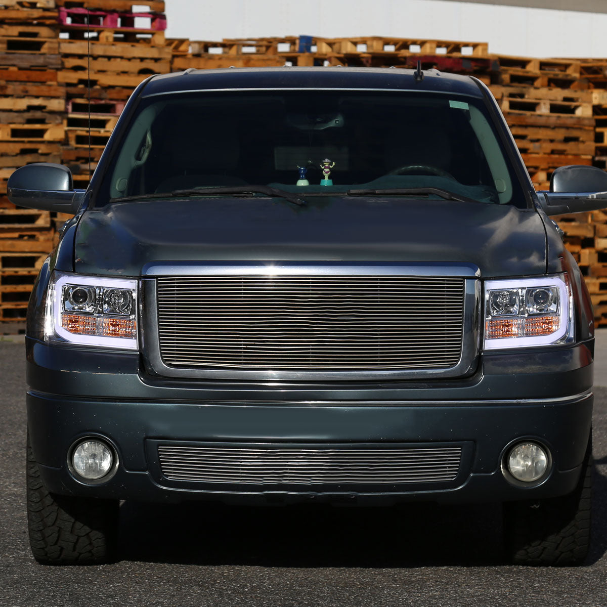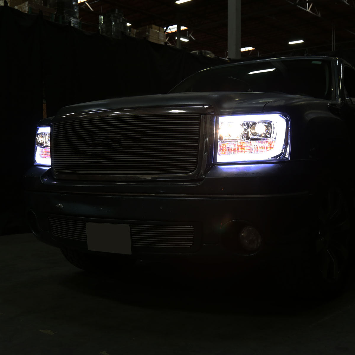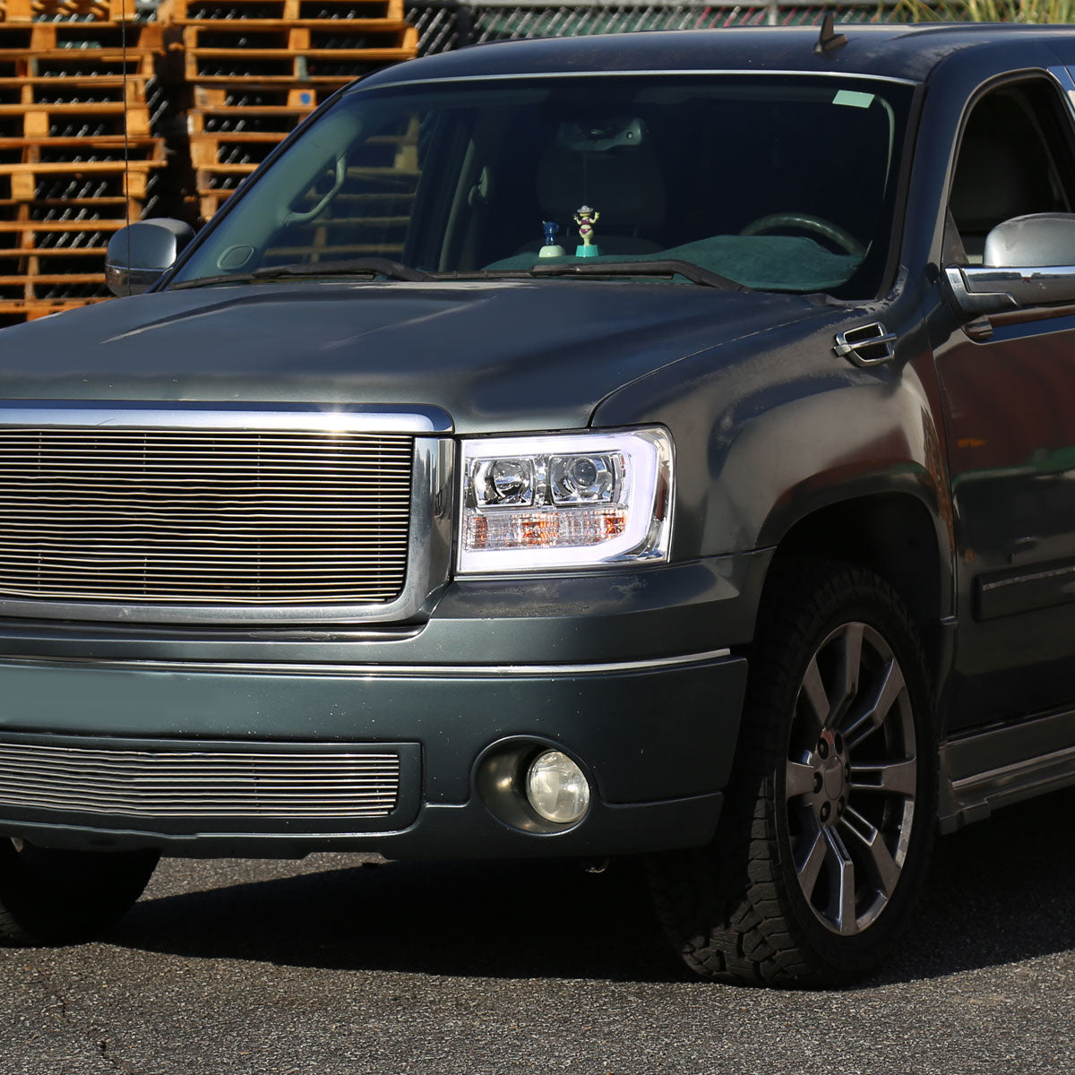 Ronnin - Fits 2007-2014 GMC Sierra 1500 Hybrid Denali 1500HD 2500HD 3500HD Upgraded LED Tube Projector Headlights Assembly Pair | Chrome