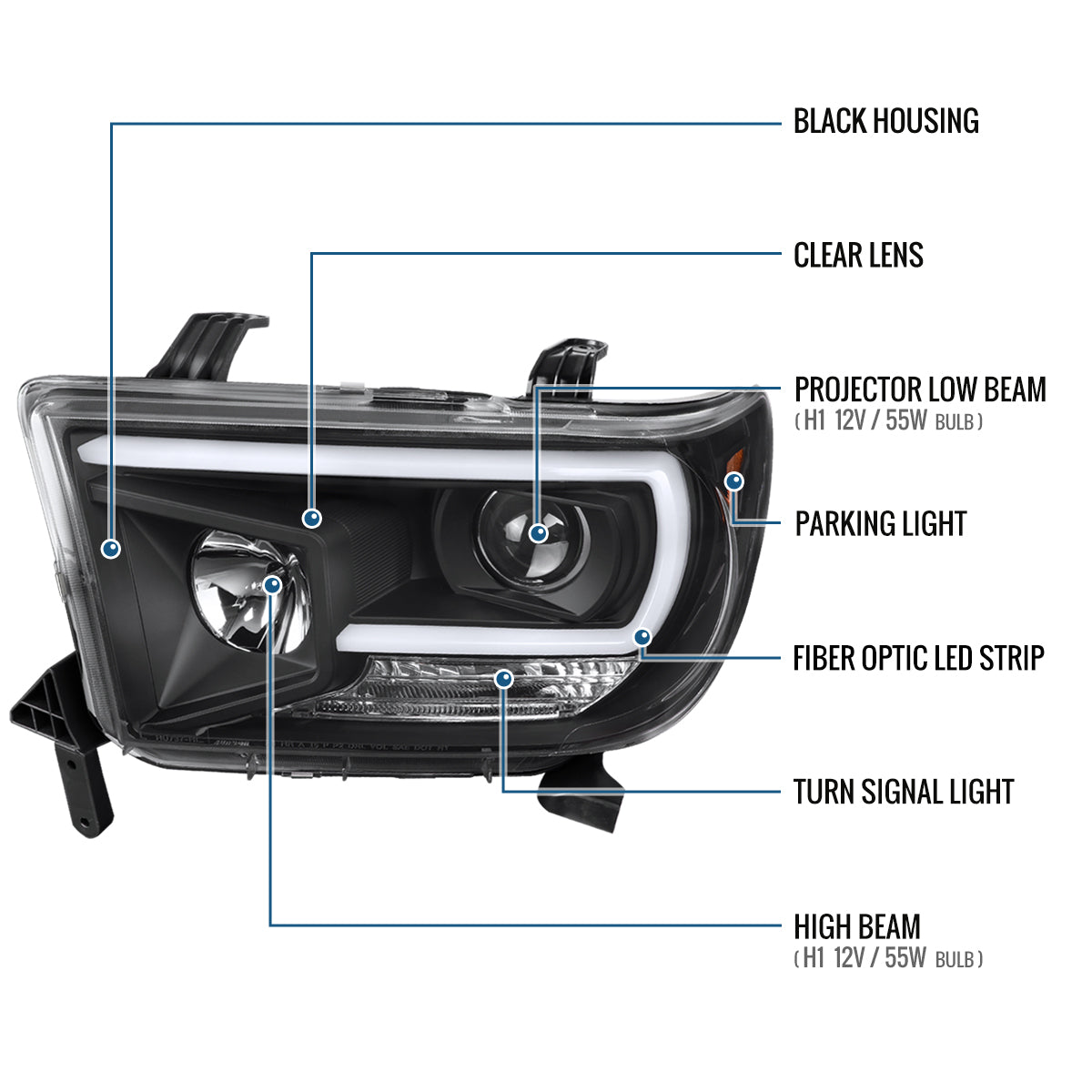 Ronnin - Fits 2007-2017 Toyota Tundra Sequoia Upgraded Replacement LED Running Light Tube Projector Headlights Assembly Pair | Black