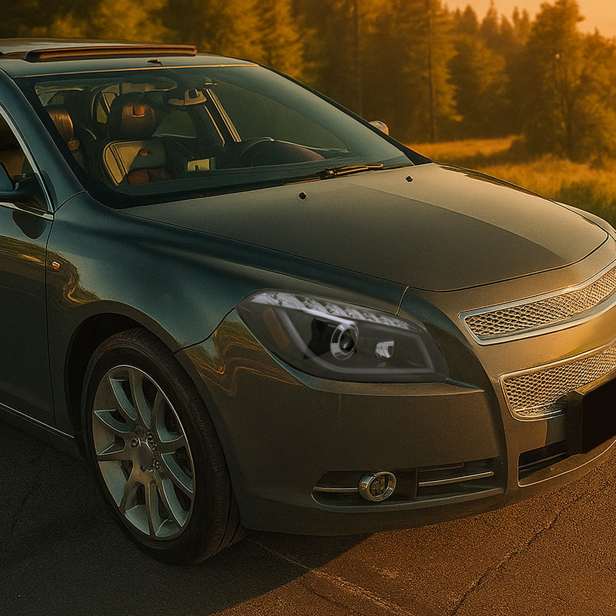 Ronnin - Fits 2008-2012 Chevy Malibu LED Running Light Tube Upgrade Replacement Projector Headlights Assembly Pair | Black Smoke