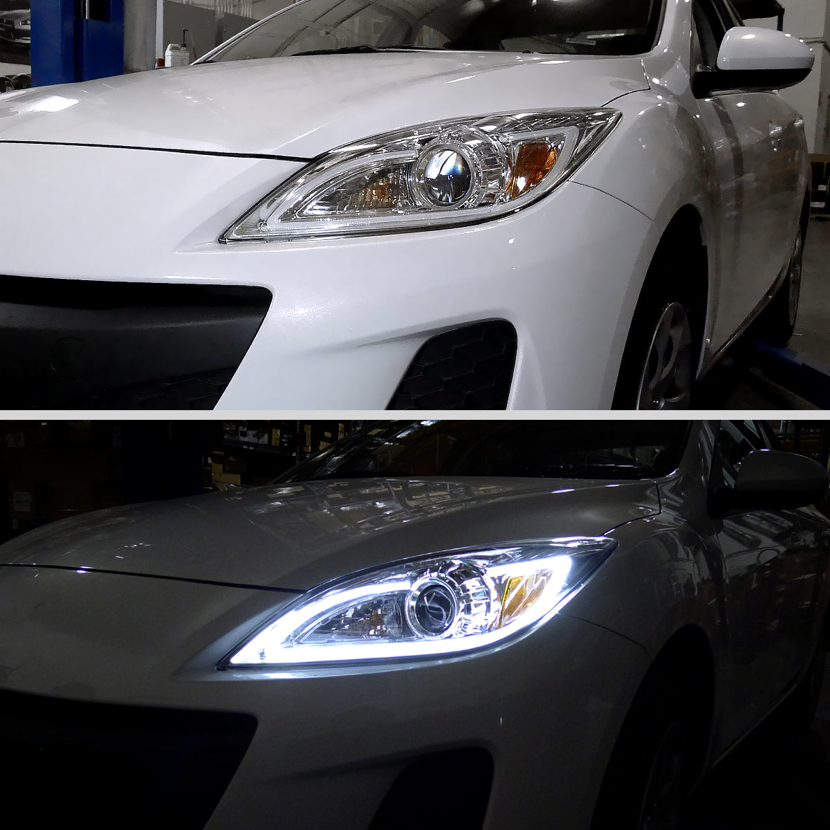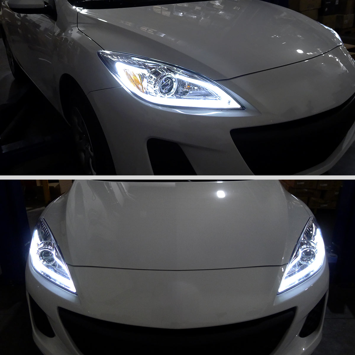 Ronnin - Fits 2010-2013 Mazda 3 Upgrade LED Running Lights Projector Halogen Headlights Assembly Pair | Chrome