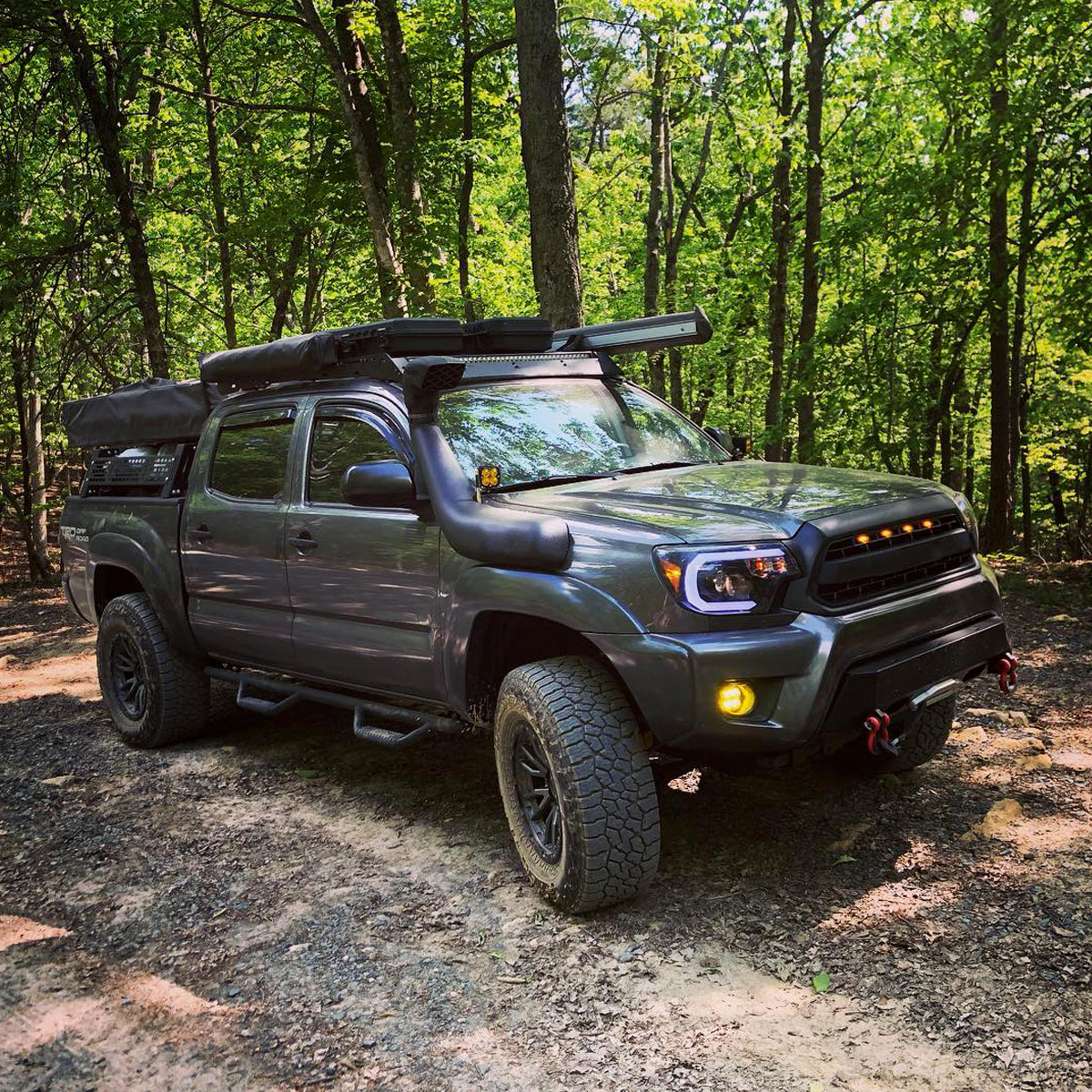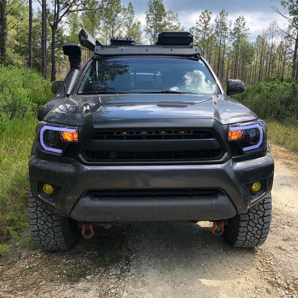 Ronnin - Fits 2012-2015 Toyota Tacoma Upgraded LED Tube Running Lights Projector Headlights Assembly Pair | Black Smoke