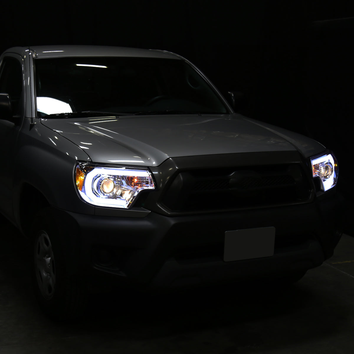 Ronnin - Fits 2012-2015 Toyota Tacoma Upgraded LED Tube Running Lights Projector Headlights Assembly Pair | Chrome