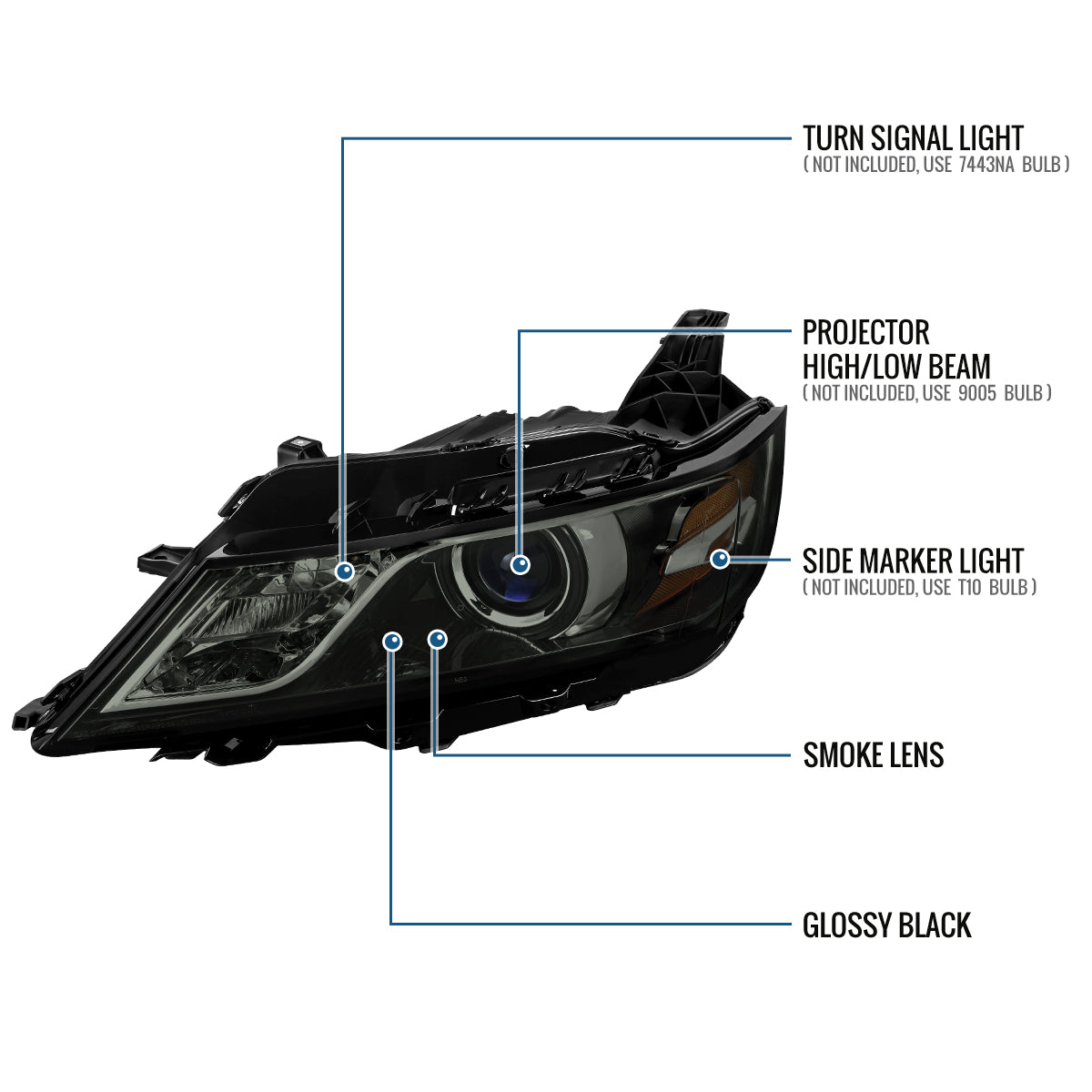 Ronnin - Fits 2014-2020 Chevy Impala Factory Replacement Halogen Projector Headlights Assembly Pair | Black Smoke