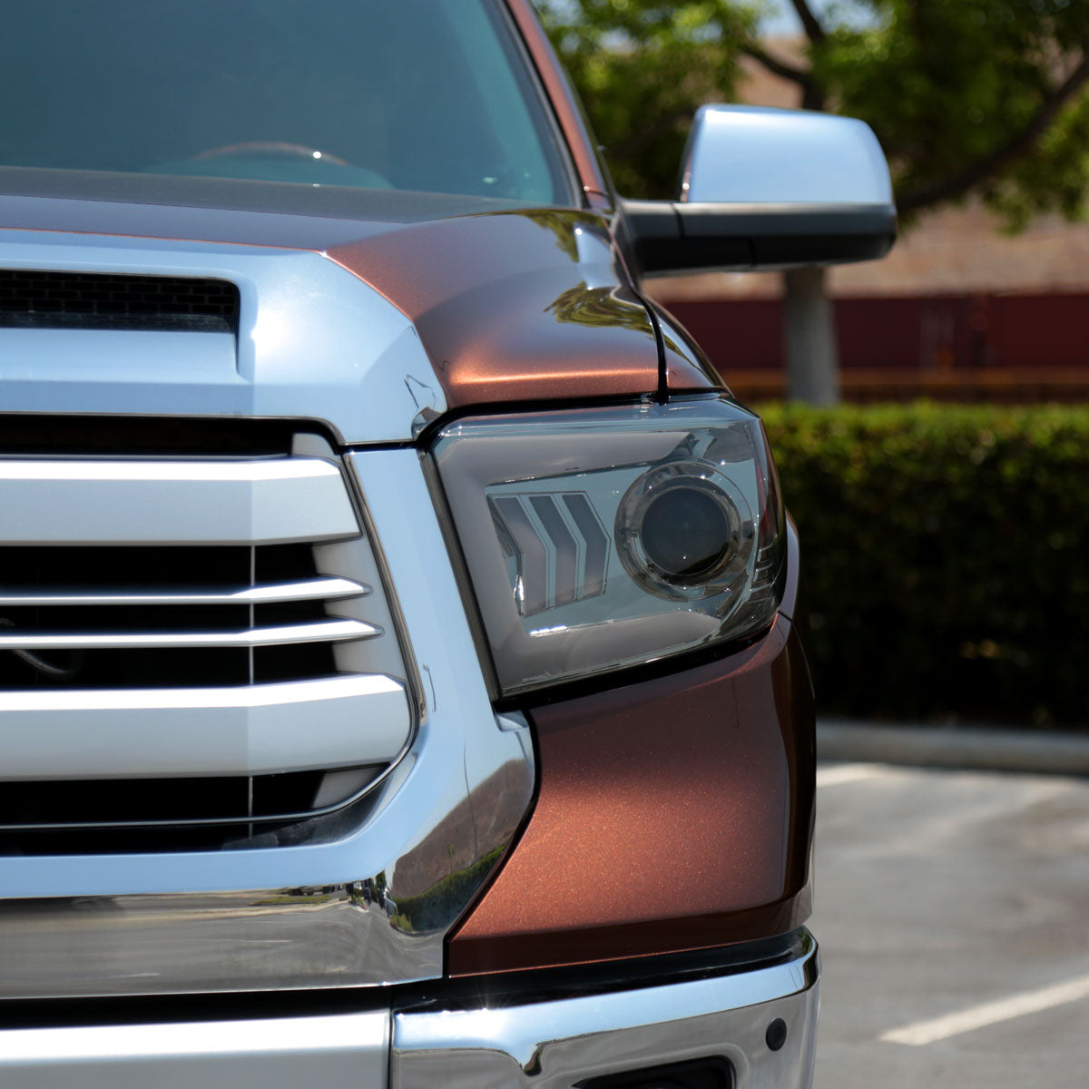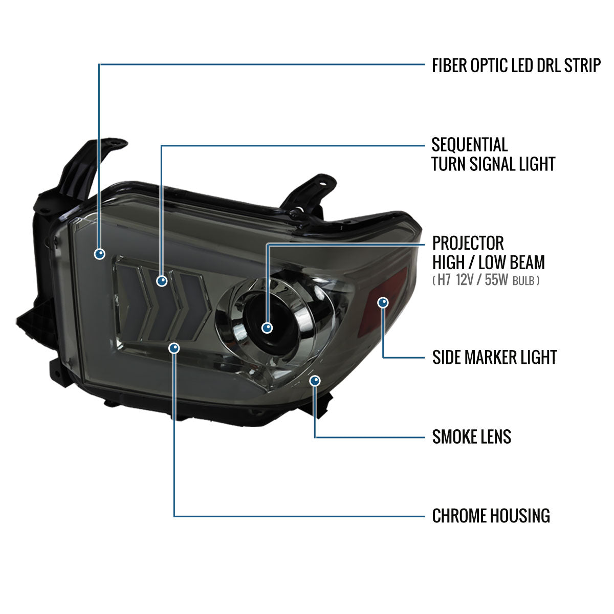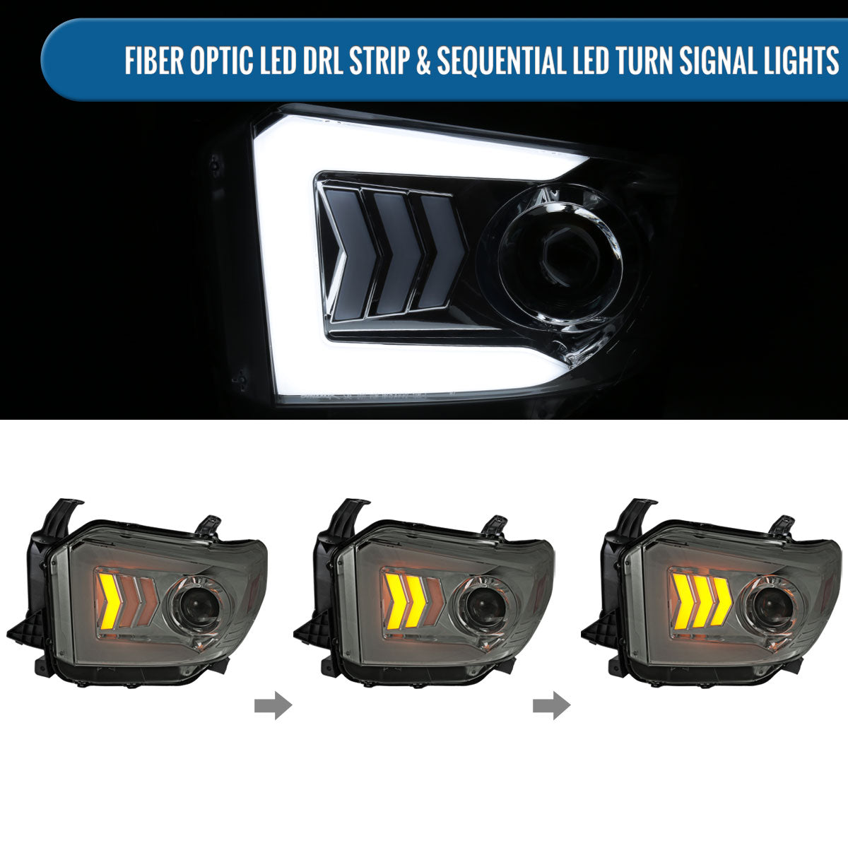 Ronnin - Fits 2014-2021 Toyota Tundra Upgraded Factory Replacement LED Tube Running Lights Sequential Turn Signals Halogen Projector Headlights Assembly Pair | Smoke