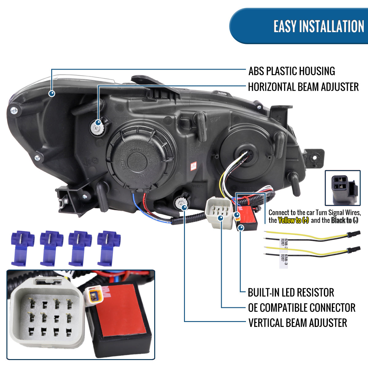 Ronnin - Fits 2015-2021 Subaru WRX STI Upgrade Assembly LED Sequential Turn Signals Projector Halogen Headlights Pair | Gloss Black