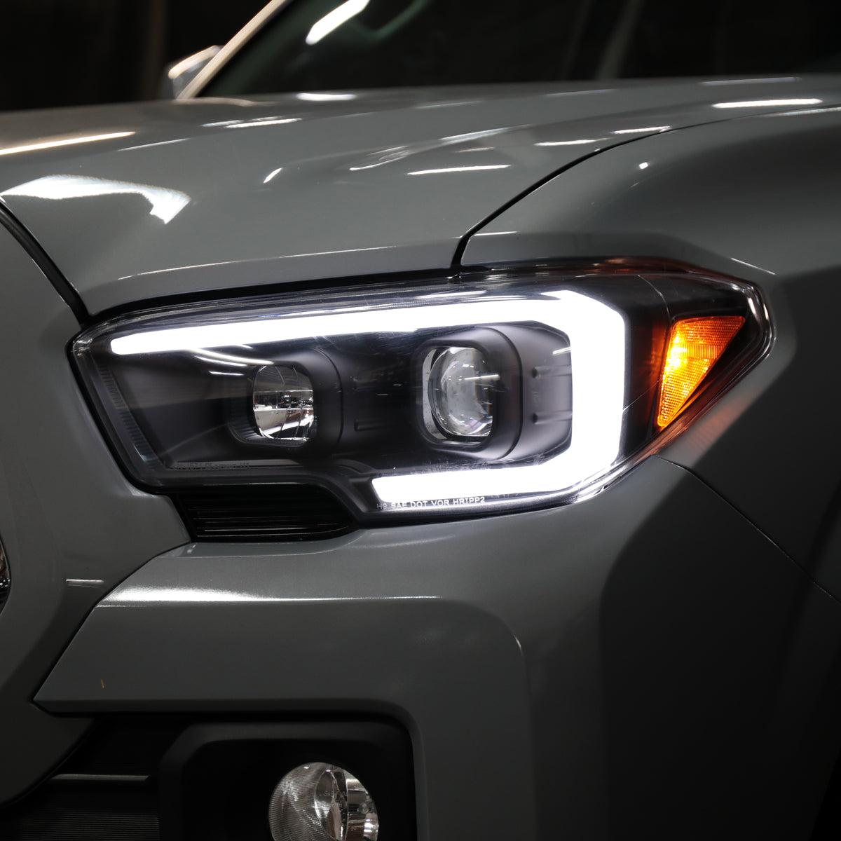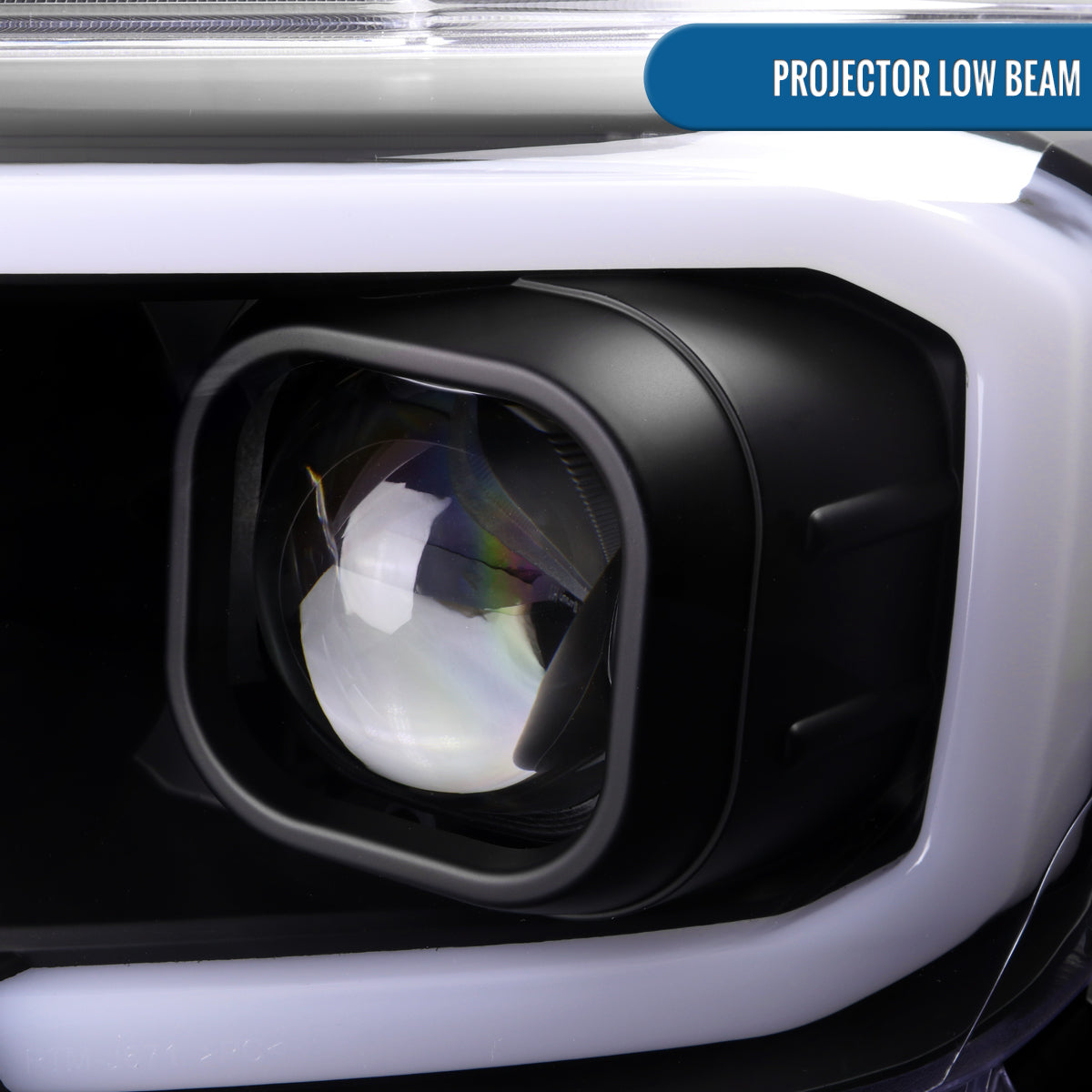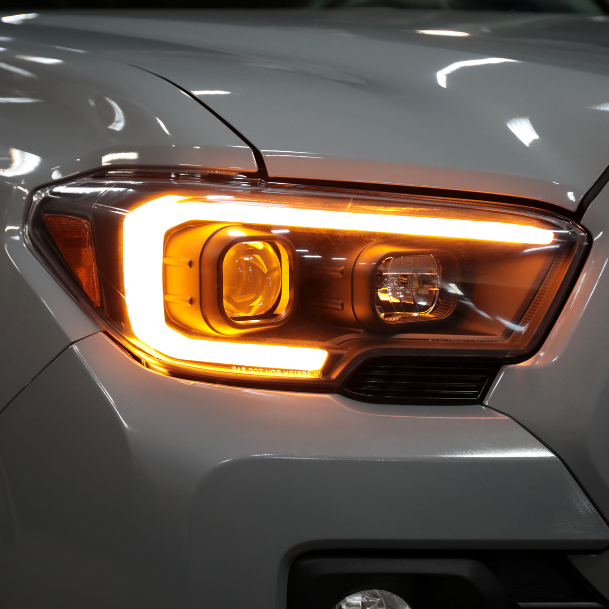 Ronnin - Fits 2016-2023 Toyota Tacoma Upgrade Replacement LED Switchback Turn Signals Tube Projector Halogen Headlights Assembly Pair | Black