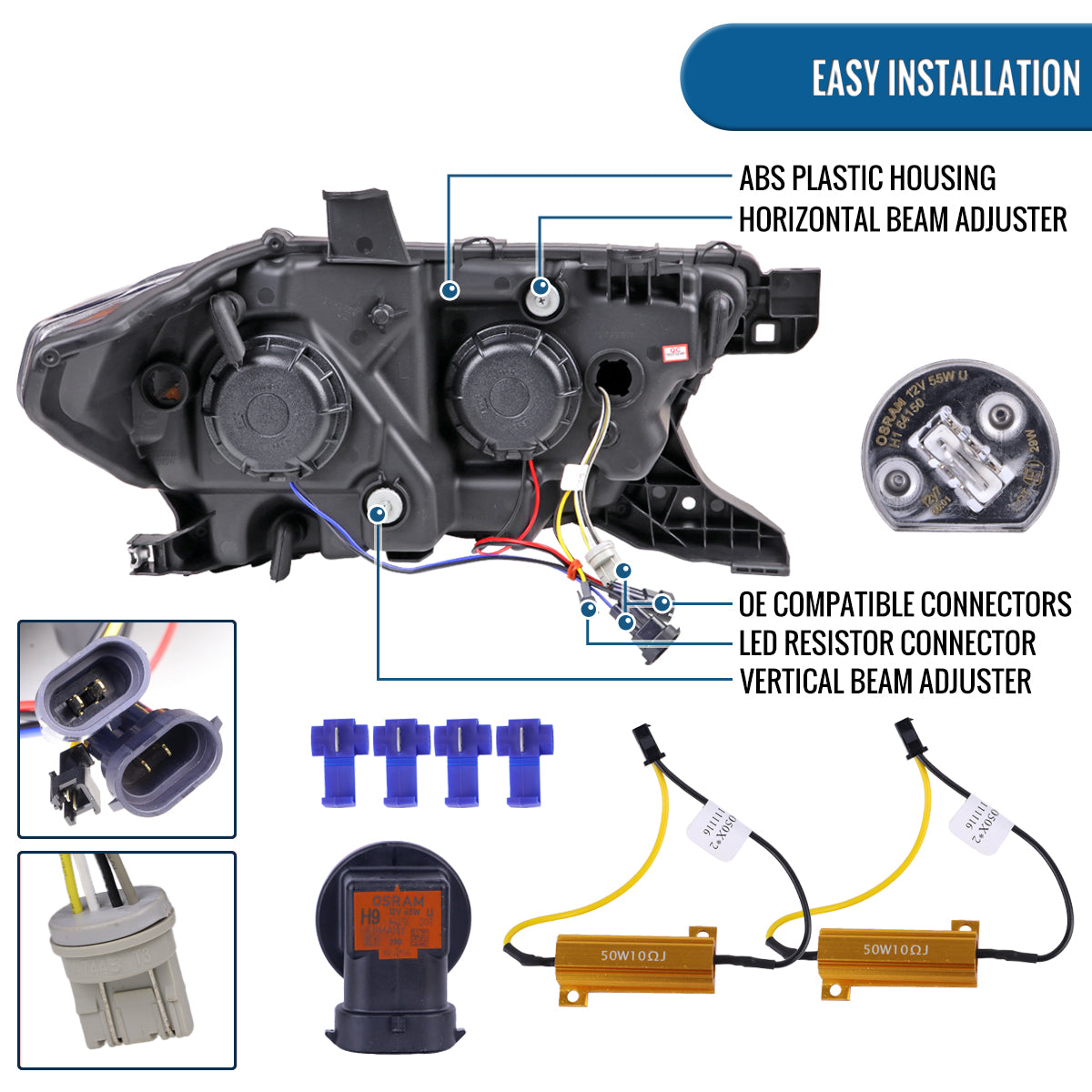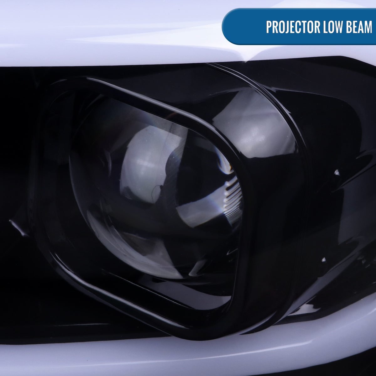 Ronnin - Fits 2016-2023 Toyota Tacoma Upgrade Replacement LED Switchback Turn Signals Tube Projector Halogen Headlights Assembly Pair | Black Smoke