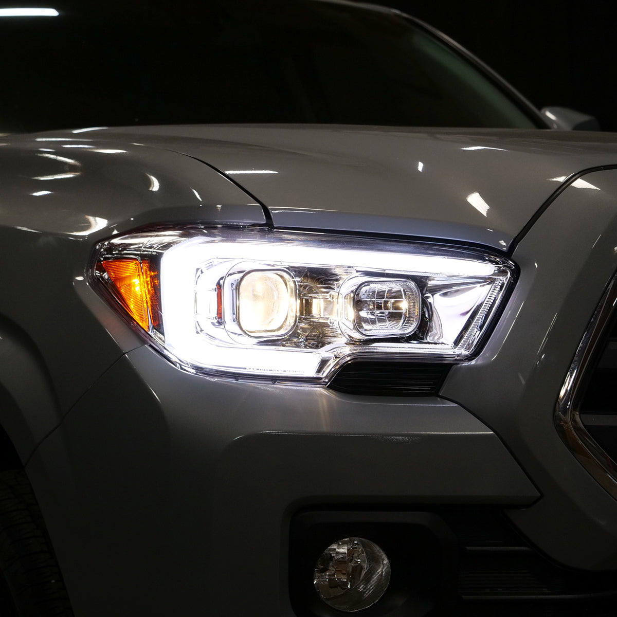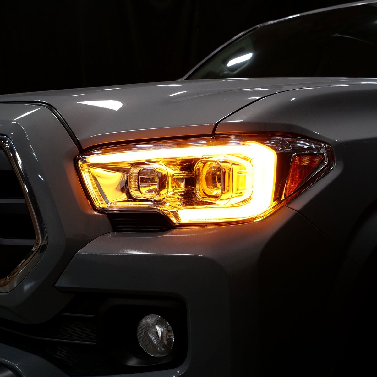 Ronnin - Fits 2016-2023 Toyota Tacoma Upgrade Replacement LED Switchback Turn Signals Tube Projector Halogen Headlights Assembly Pair | Chrome