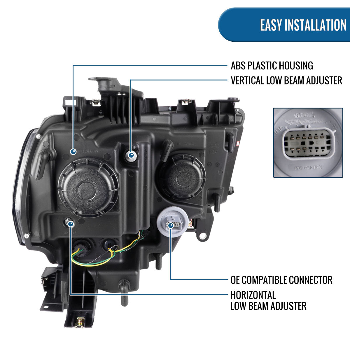 Ronnin - Fits 2019-2024 Dodge Ram 2500 3500 4500 5500 Upgrade LED Tube Projector Headlights Assembly Pair | Chrome