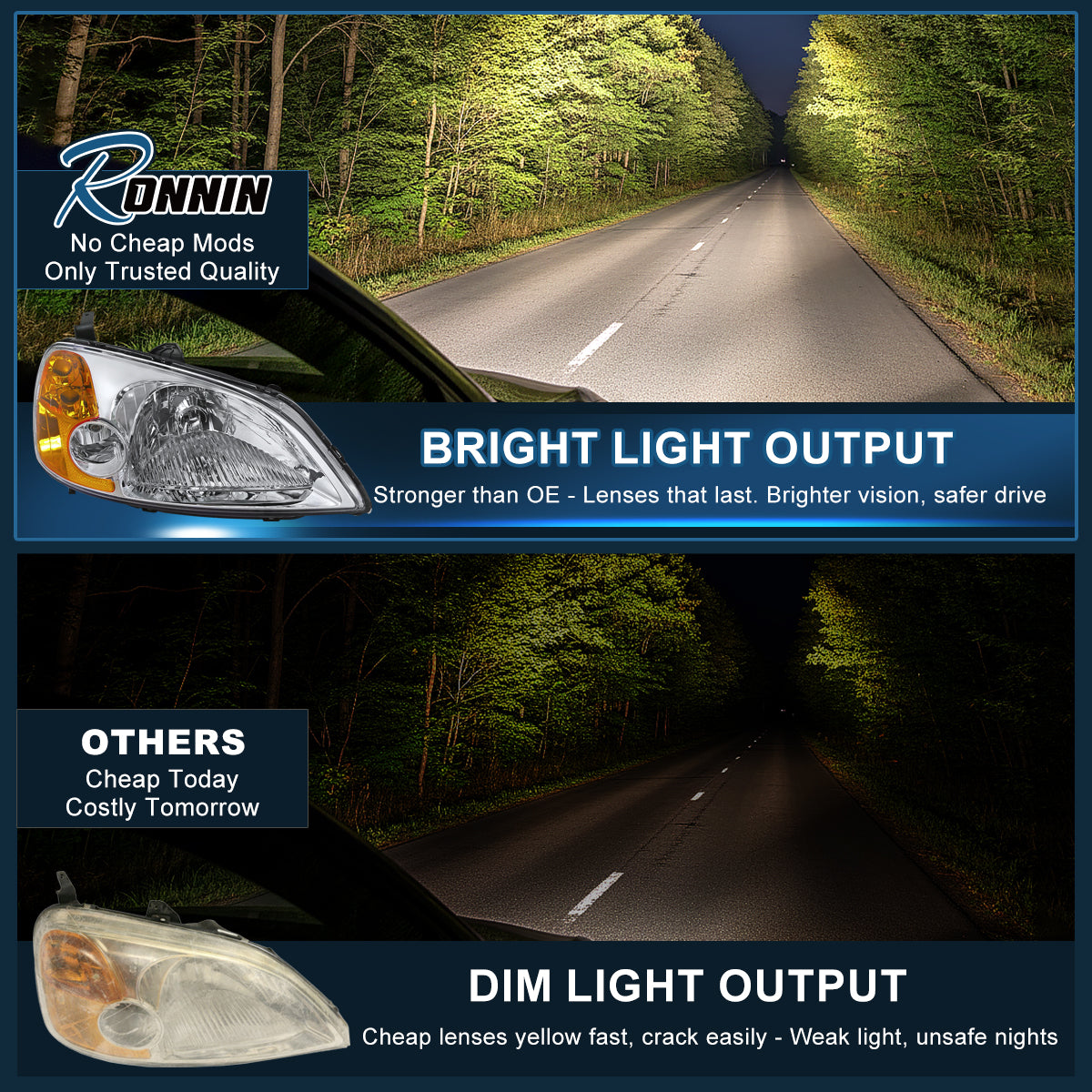 At Ronnin, we specialize in curated, precision-fit aftermarket parts built for performance, durability, and standout style. Our catalog features a wide selection of DOT-compliant lighting and accessories, handpicked for their compatibility and trending aesthetics. Backed by 24/7 customer support and our expert fitment and compliance team, we deliver seamless installation guidance, regulatory peace of mind, and a fully optimized customer experience