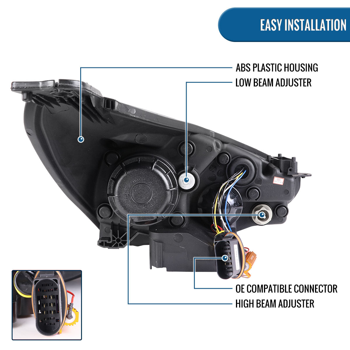 Ronnin - Fits 2015-2018 Ford Focus Upgrade Assembly LED Sequential Turn Signals Projector Headlights Pair | Black