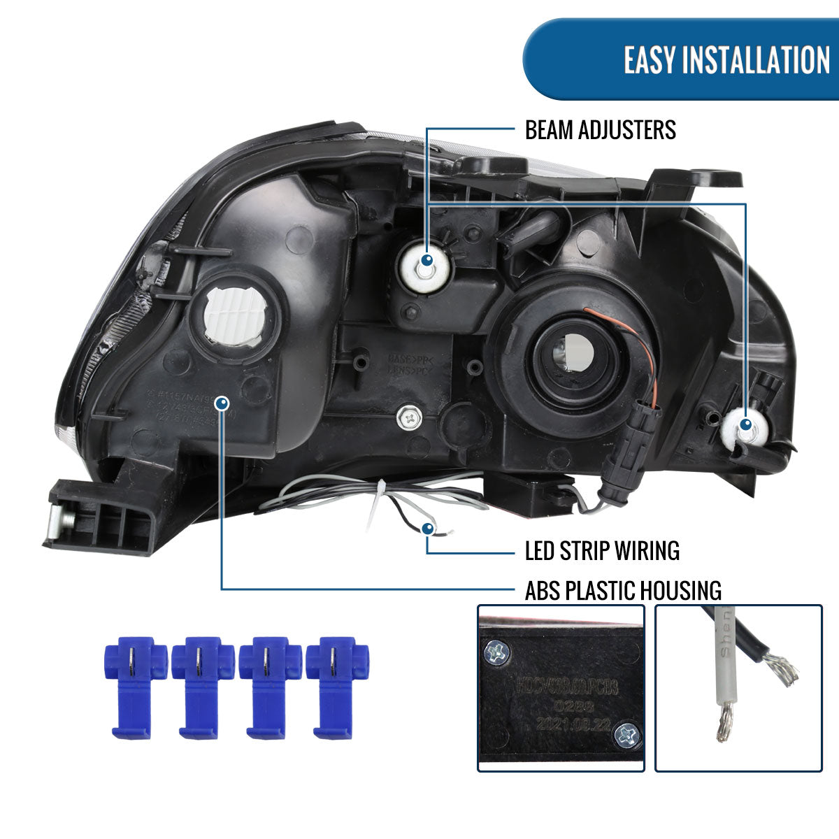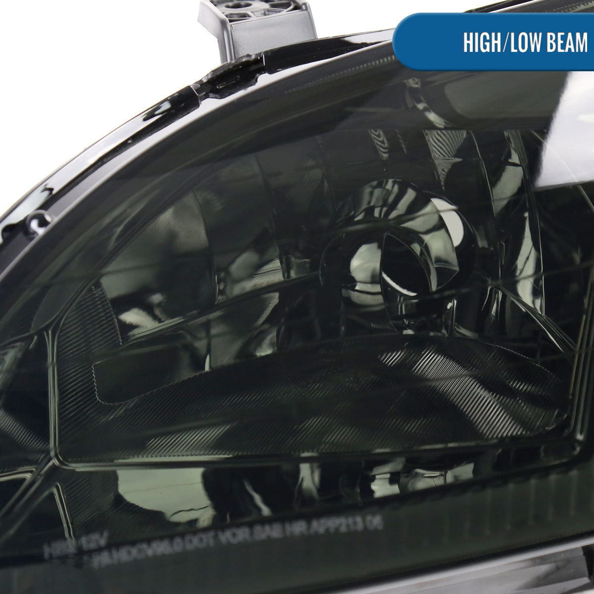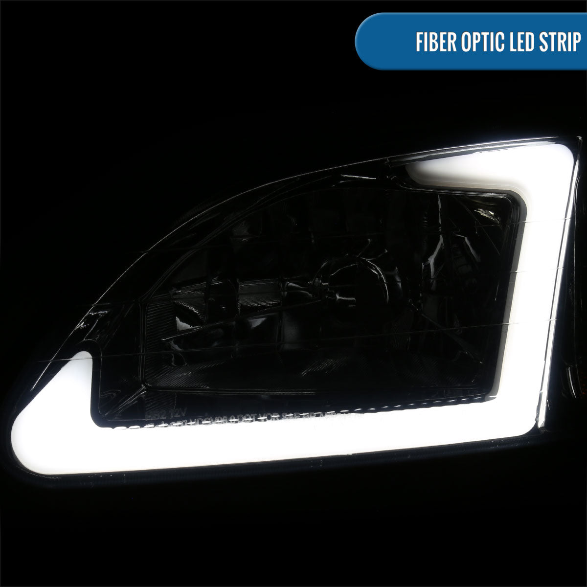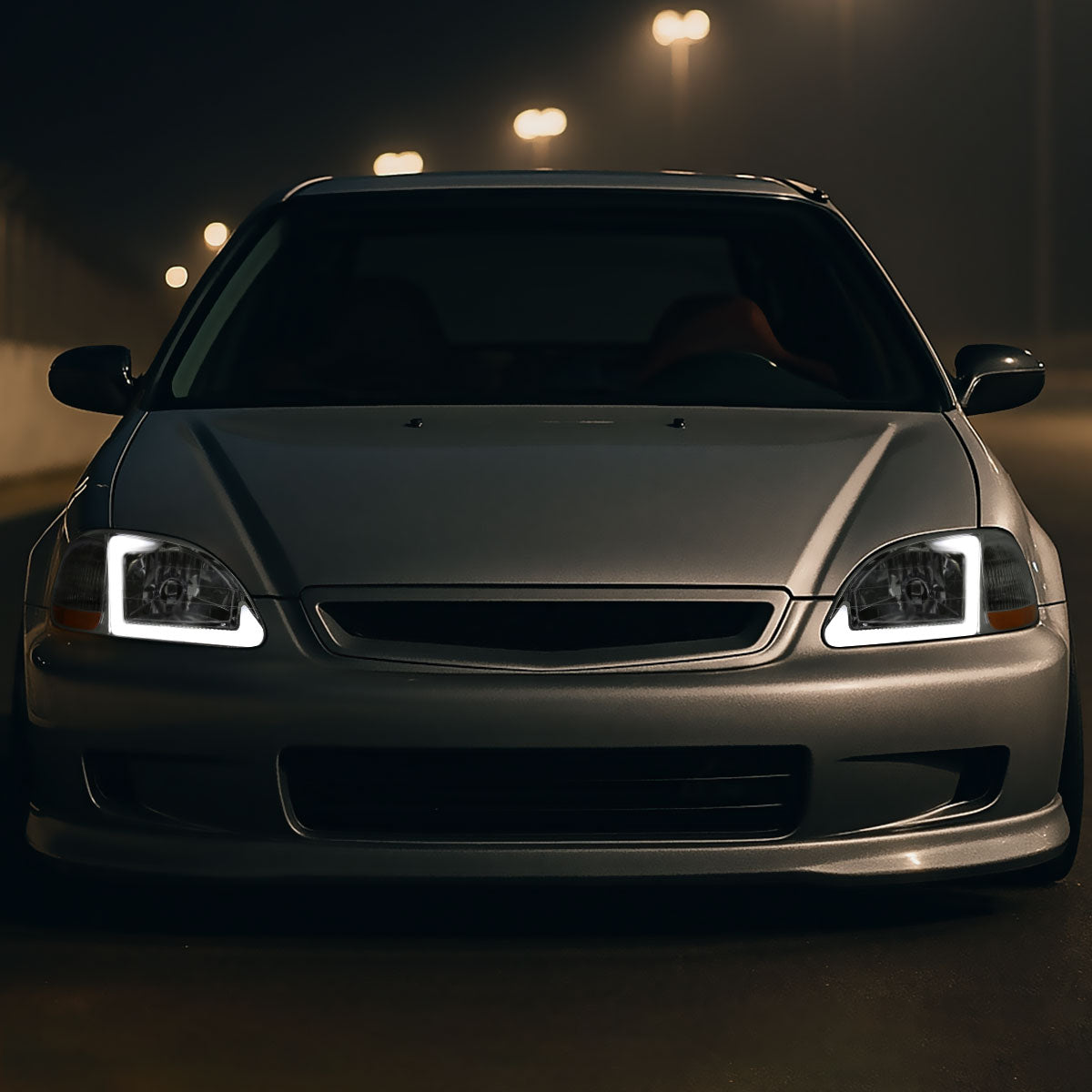Ronnin - Fits 1996-1998 Honda Civic Upgraded LED Tube Running Lights Headlights Replacement Assembly Pair | Smoke