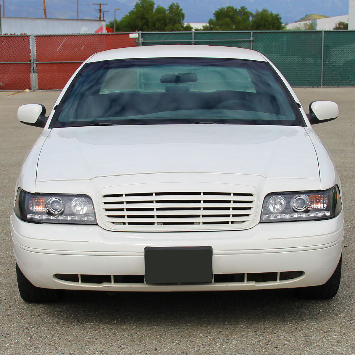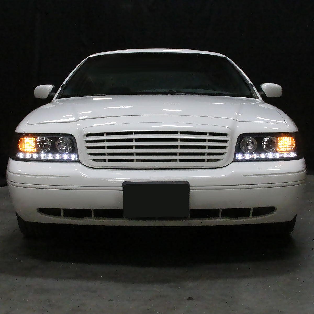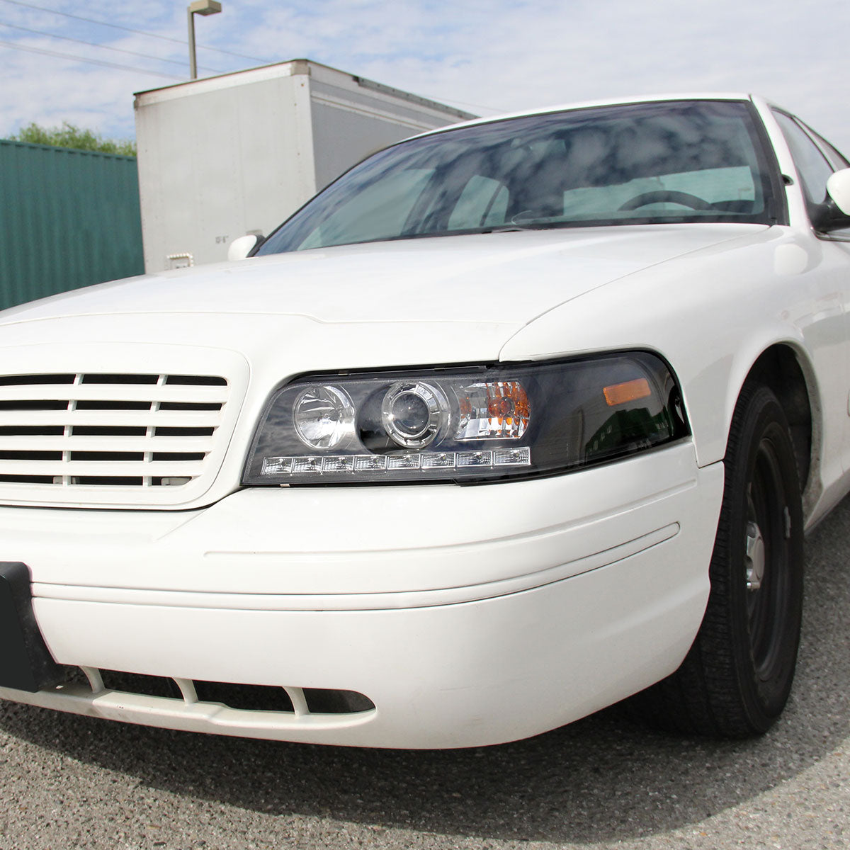 Ronnin - Fits 1998-2011 Ford Crown Victoria Sleek Upgrade LED Strip Running Lights Projector Headlights Assembly Pair | Black