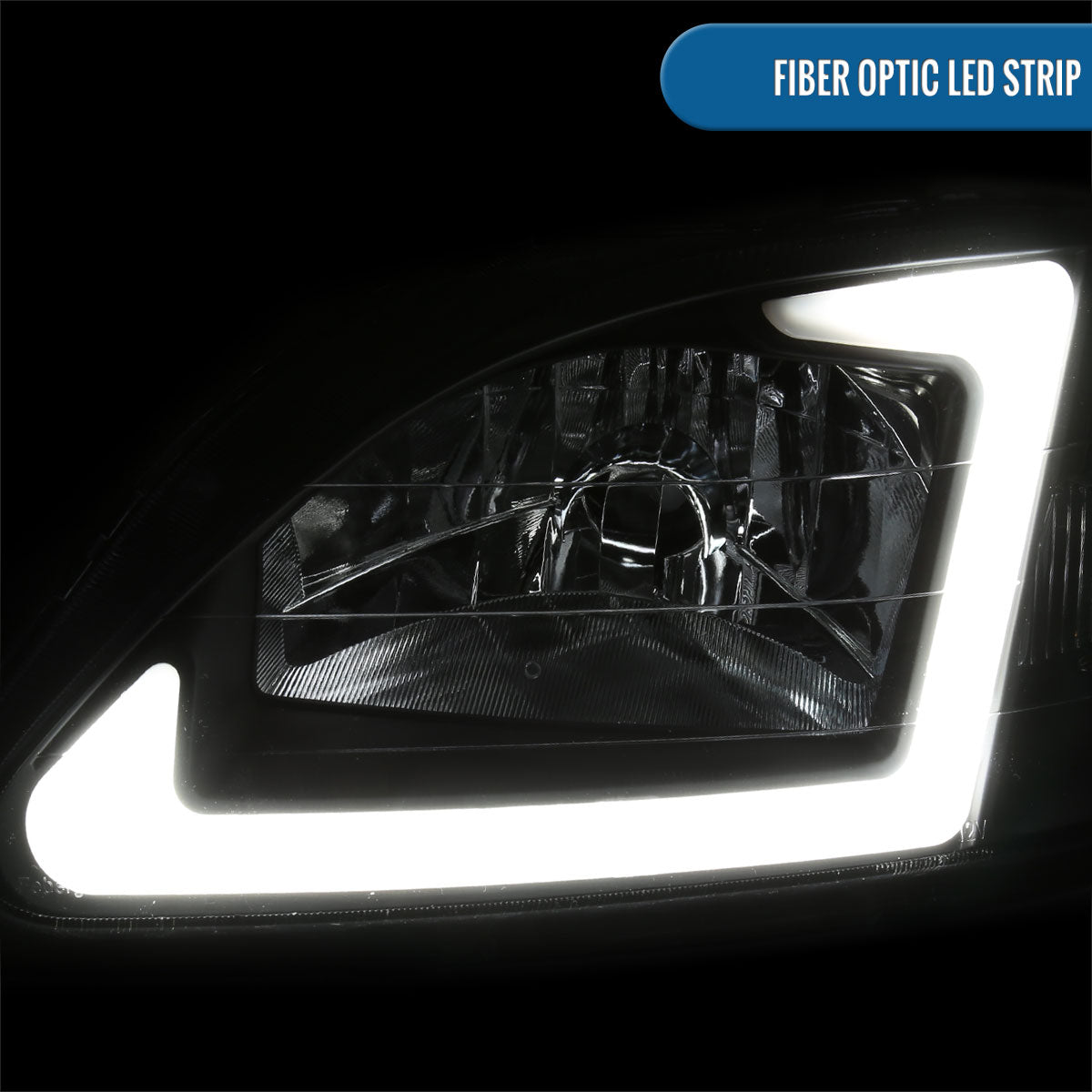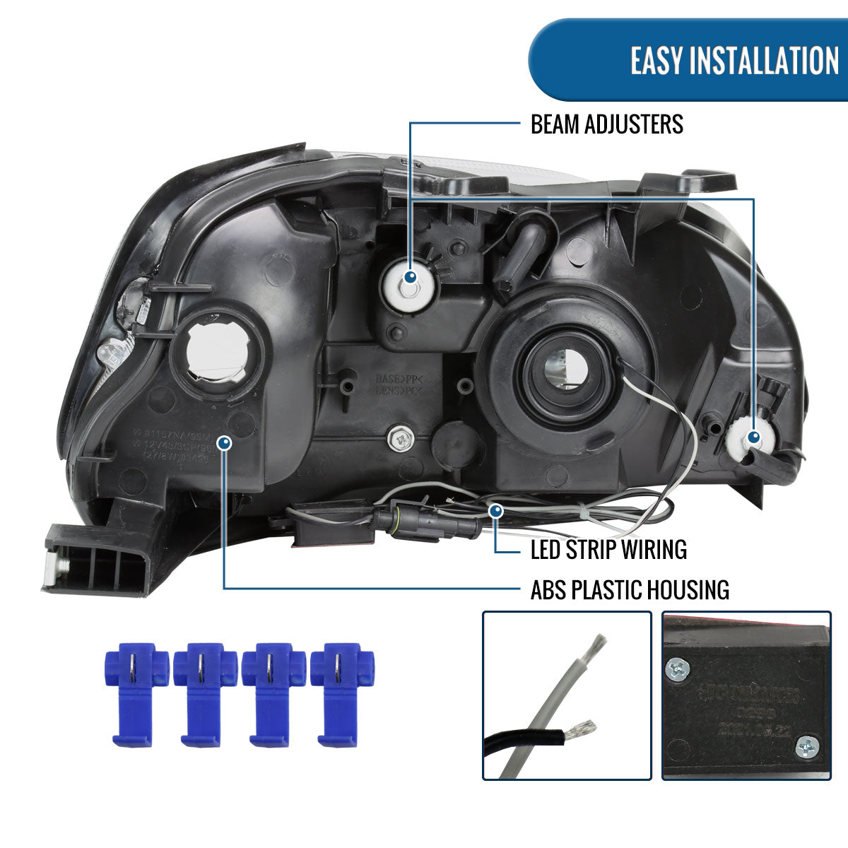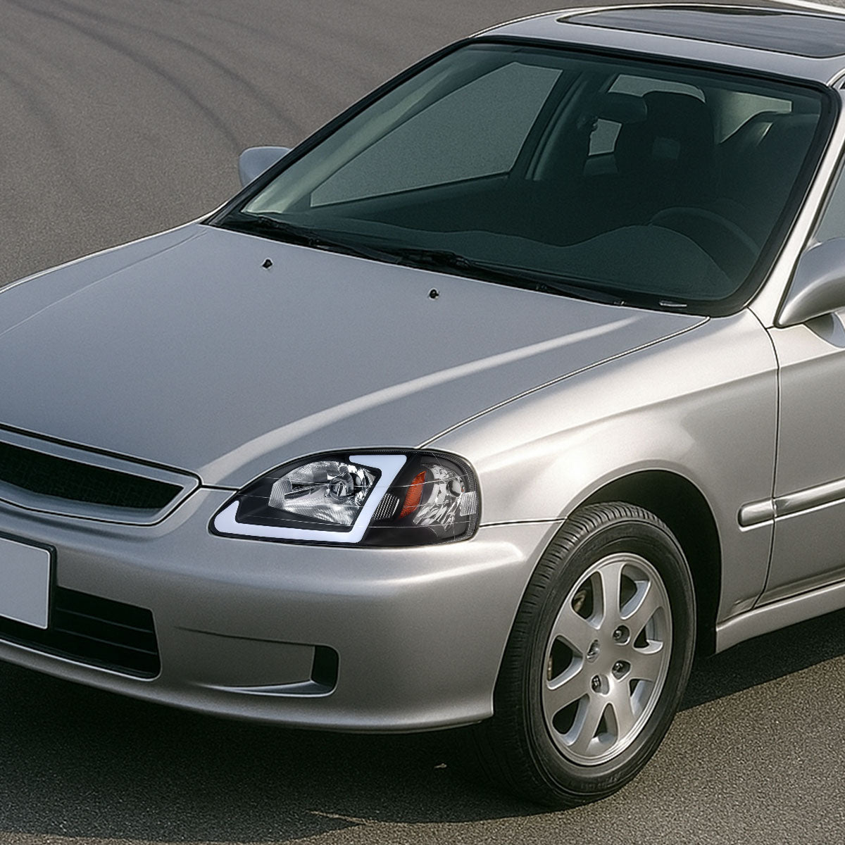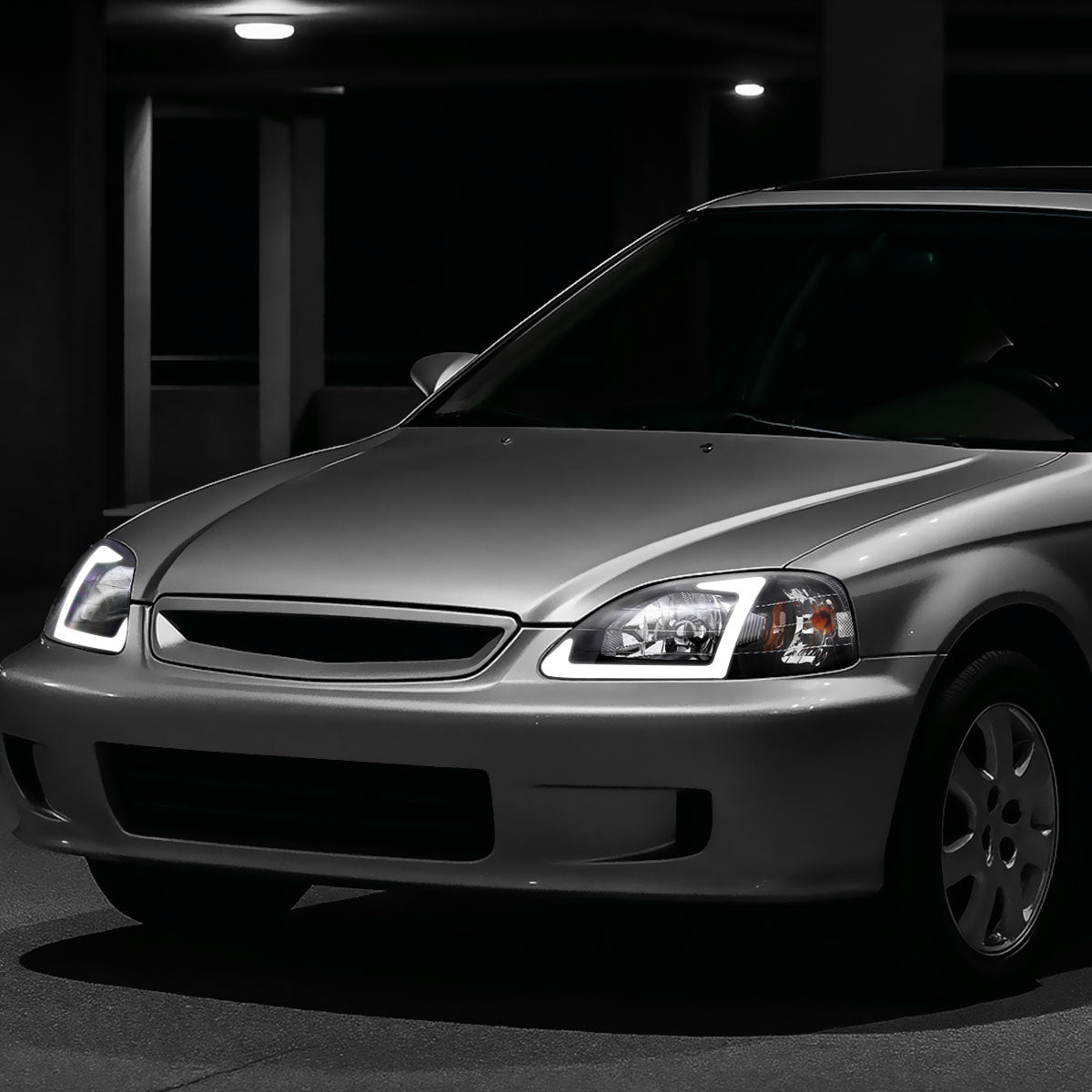 Ronnin - Fits 1999-2000 Honda Civic Upgraded LED Tube Running Lights Headlights Replacement Assembly Pair | Black