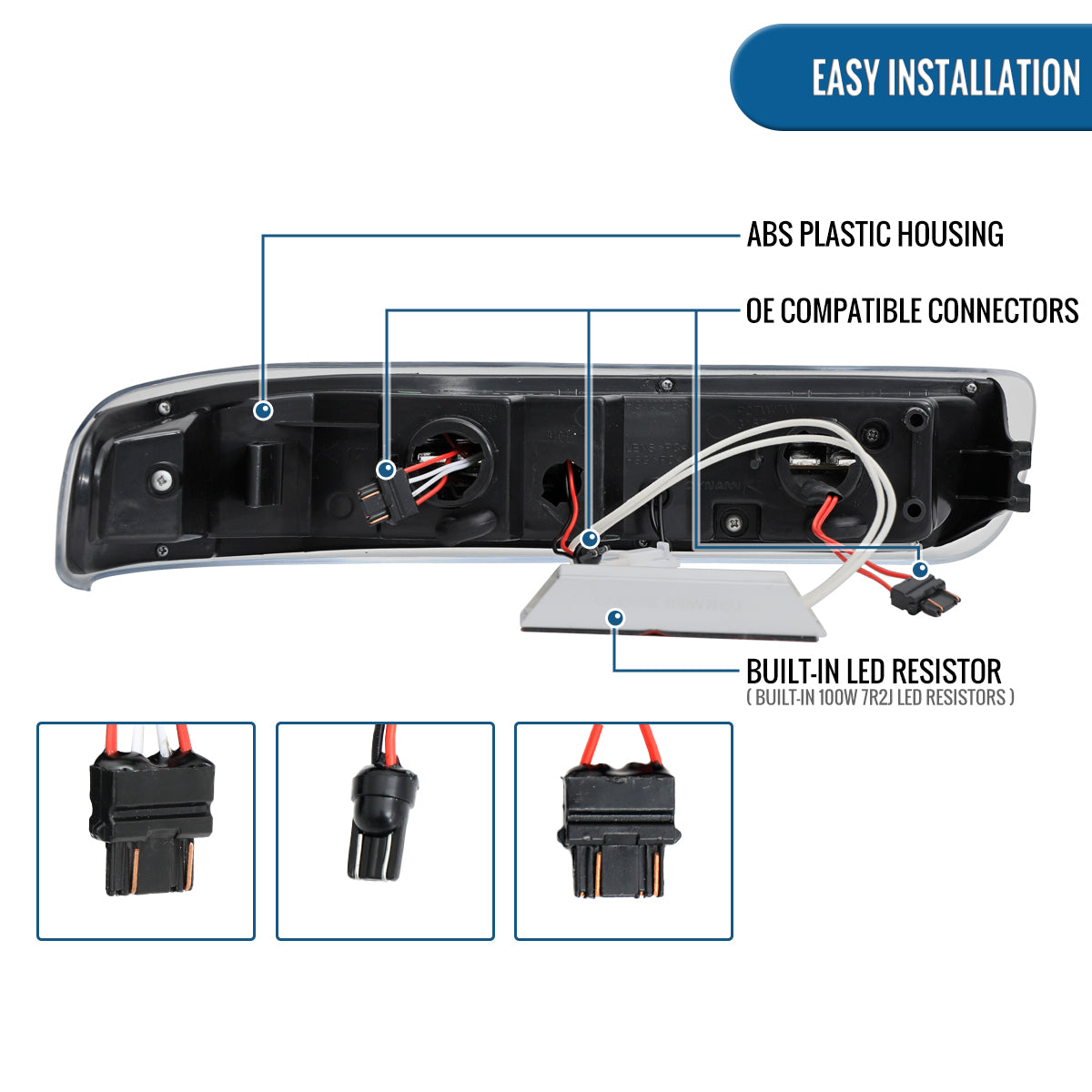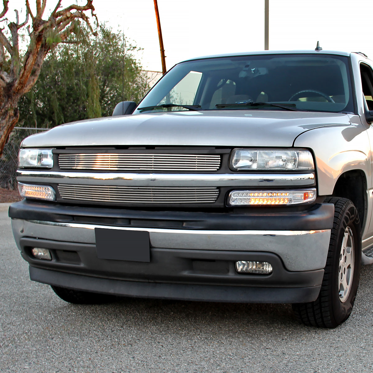 Ronnin - Fits 1999-2002 Chevy Silverado 1500 2500 3500 2000-2006 Tahoe Suburban 1500 2500 Full LED Bumper Turn Signal Lights Assembly Pair | Chrome