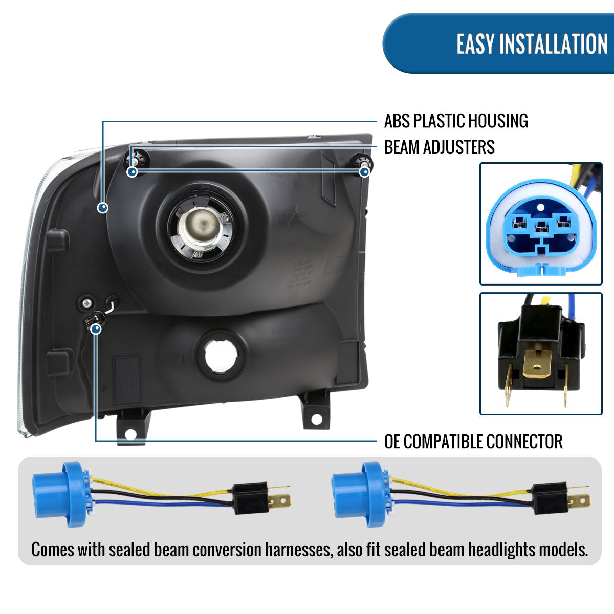 Ronnin - Fits 1999-2004 Ford F250 F350 F450 F550 Super Duty 2000-2004 Ford Excursion LED Tube Headlights Assembly Pair | Black Smoke