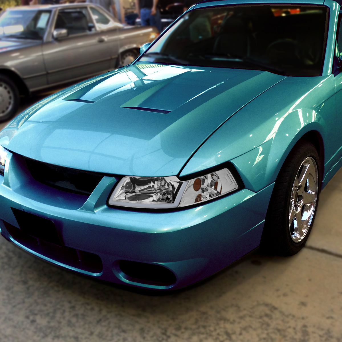 Ronnin - Fits 1999-2004 Ford Mustang Upgraded LED Running Tube Lights Headlights Replacement Assembly | Chrome
