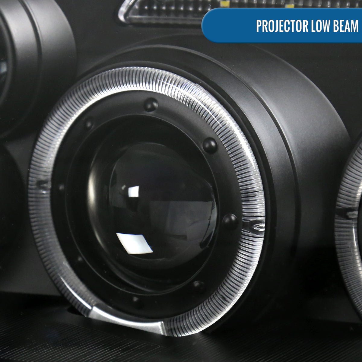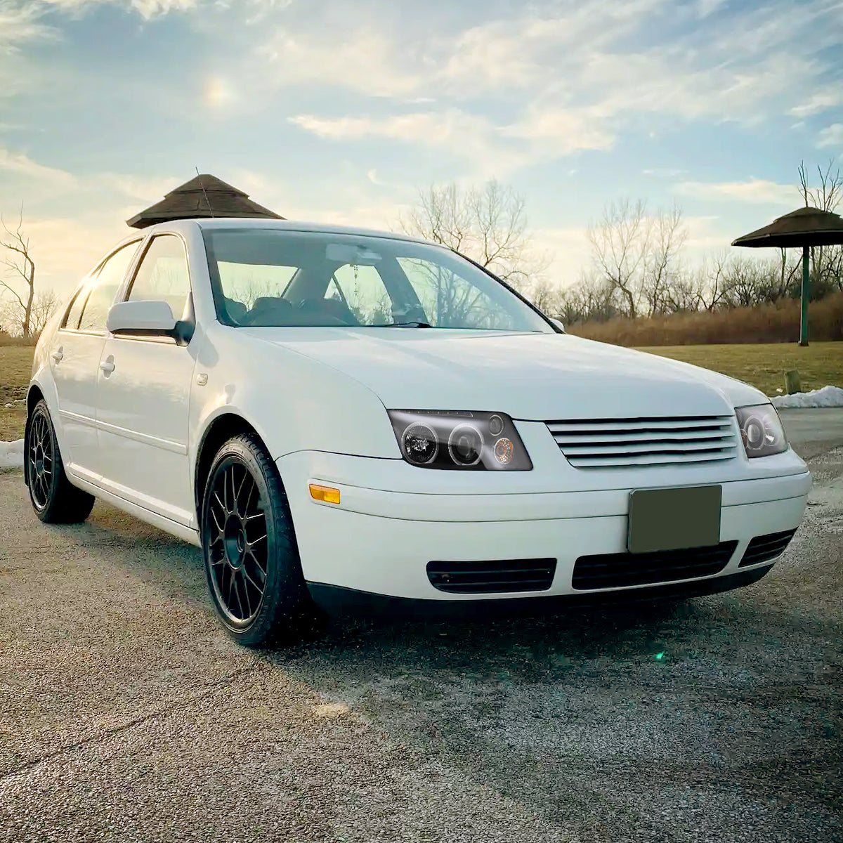 Ronnin - Fits 1999-2005 VW Jetta Bora Mk4 Upgraded Replacement Projector Headlights + Fog Lamps LED Dual Halo Rims Running Lights Assembly Pair | Black