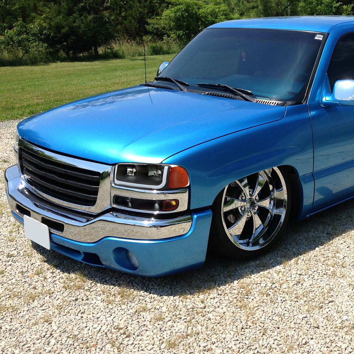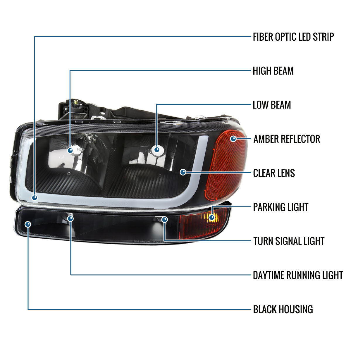 Ronnin - Fits 1999-2007 GMC Sierra 1500 2500 3500 Upgraded Replacement LED Tube Running Lights Headlights + Bumper Turn Signals Assembly Pair | Black